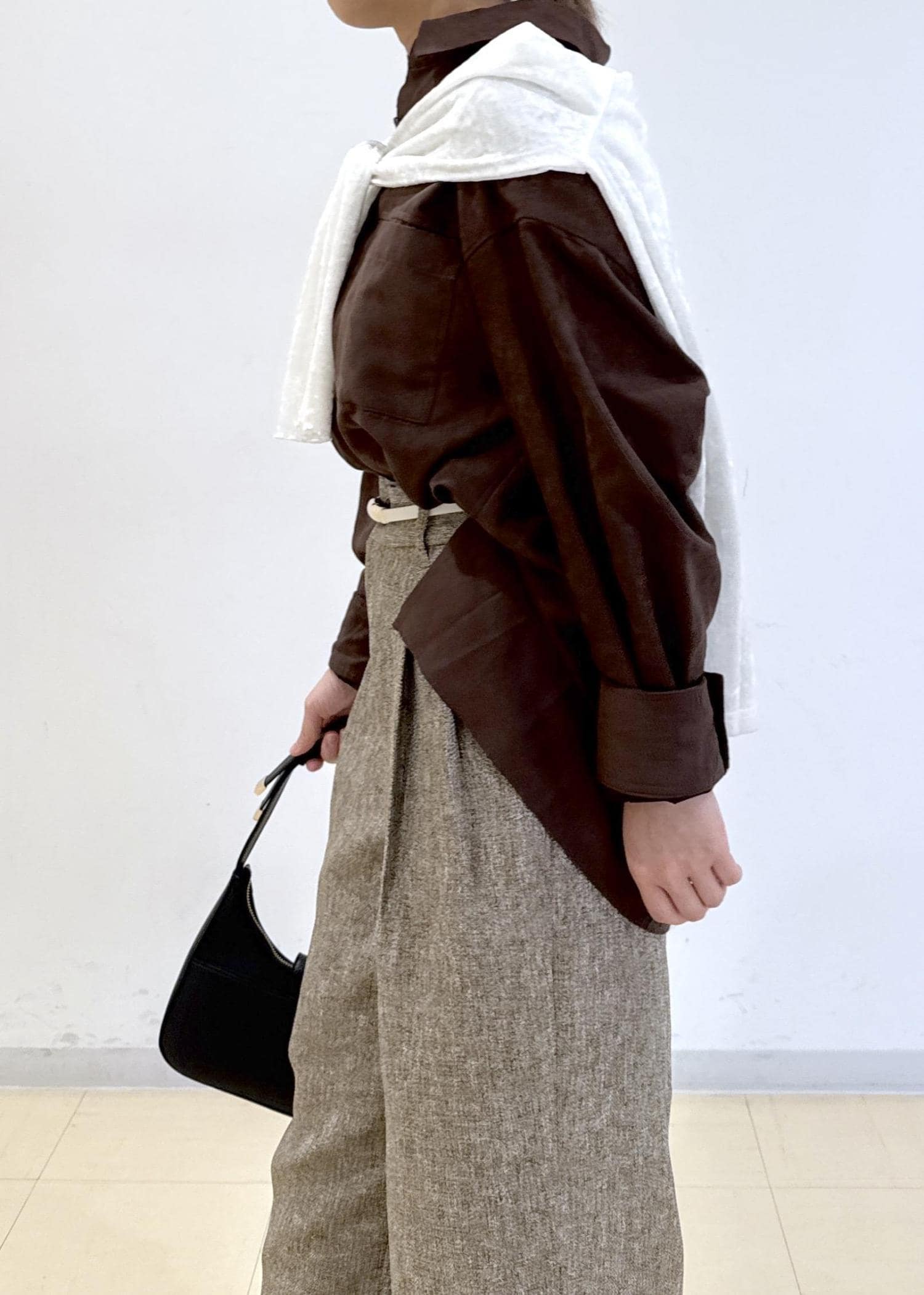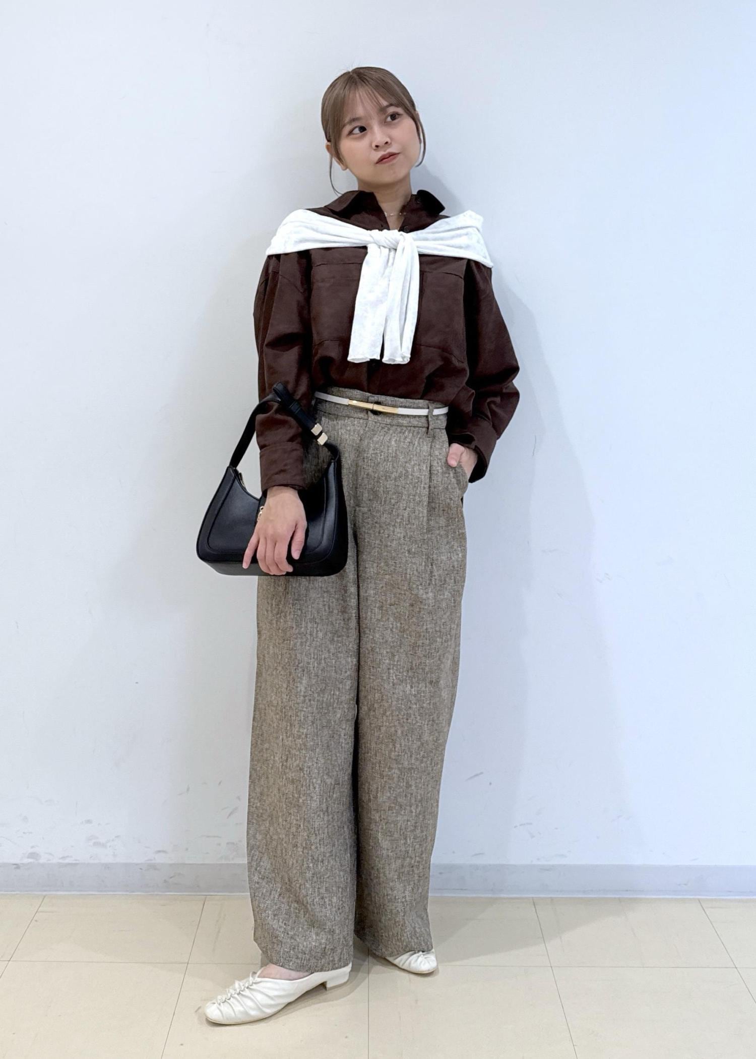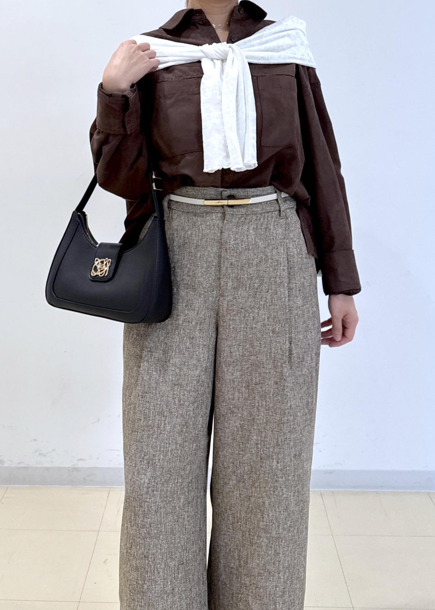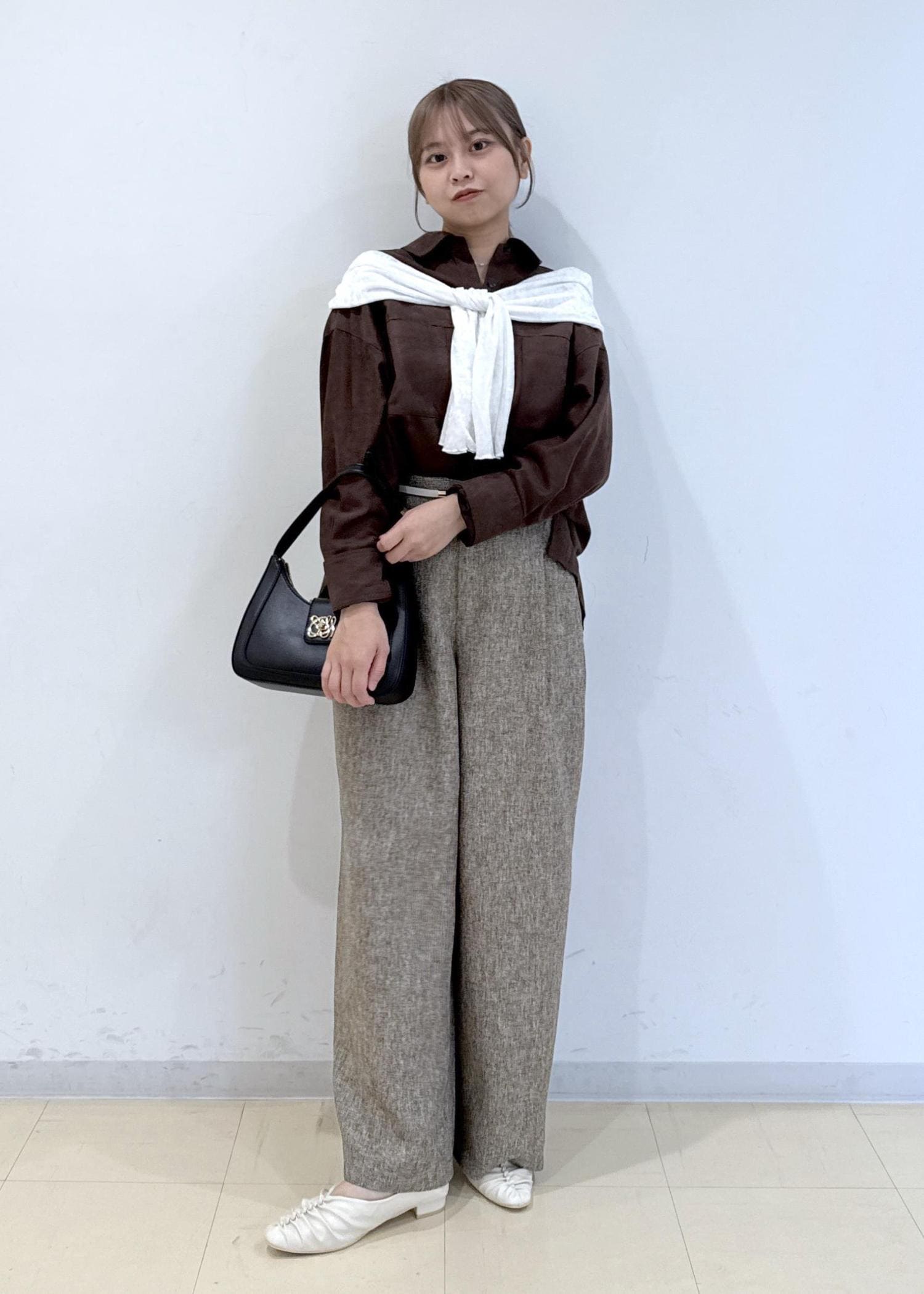 ブラウンのシャツにベージュのパンツを合わせたブラウンコーデにしました♩
