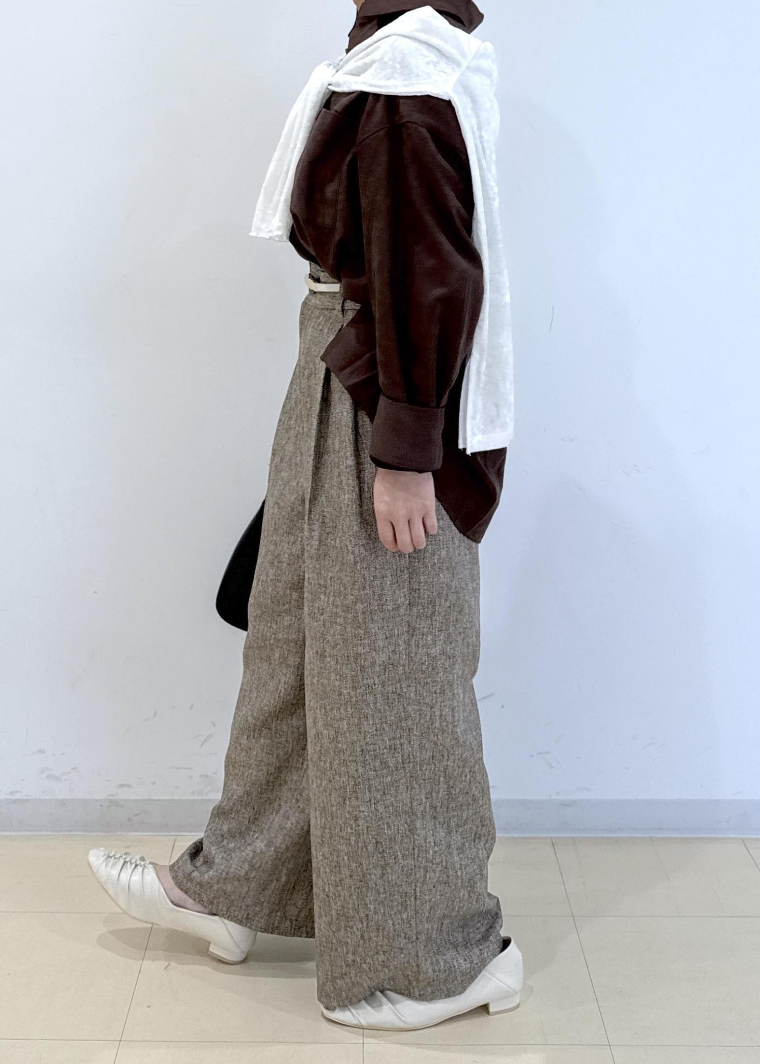 VISツイード2タックワイドパンツブラウン系 / S¥4,612レビューツイード素材ですが、サラッとしていて柔らかい生地なので楽に履けました◎