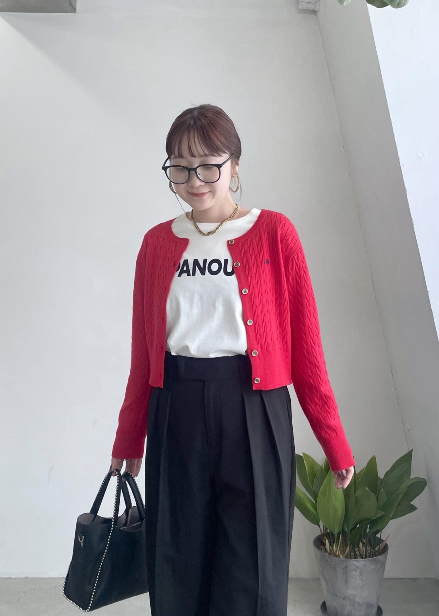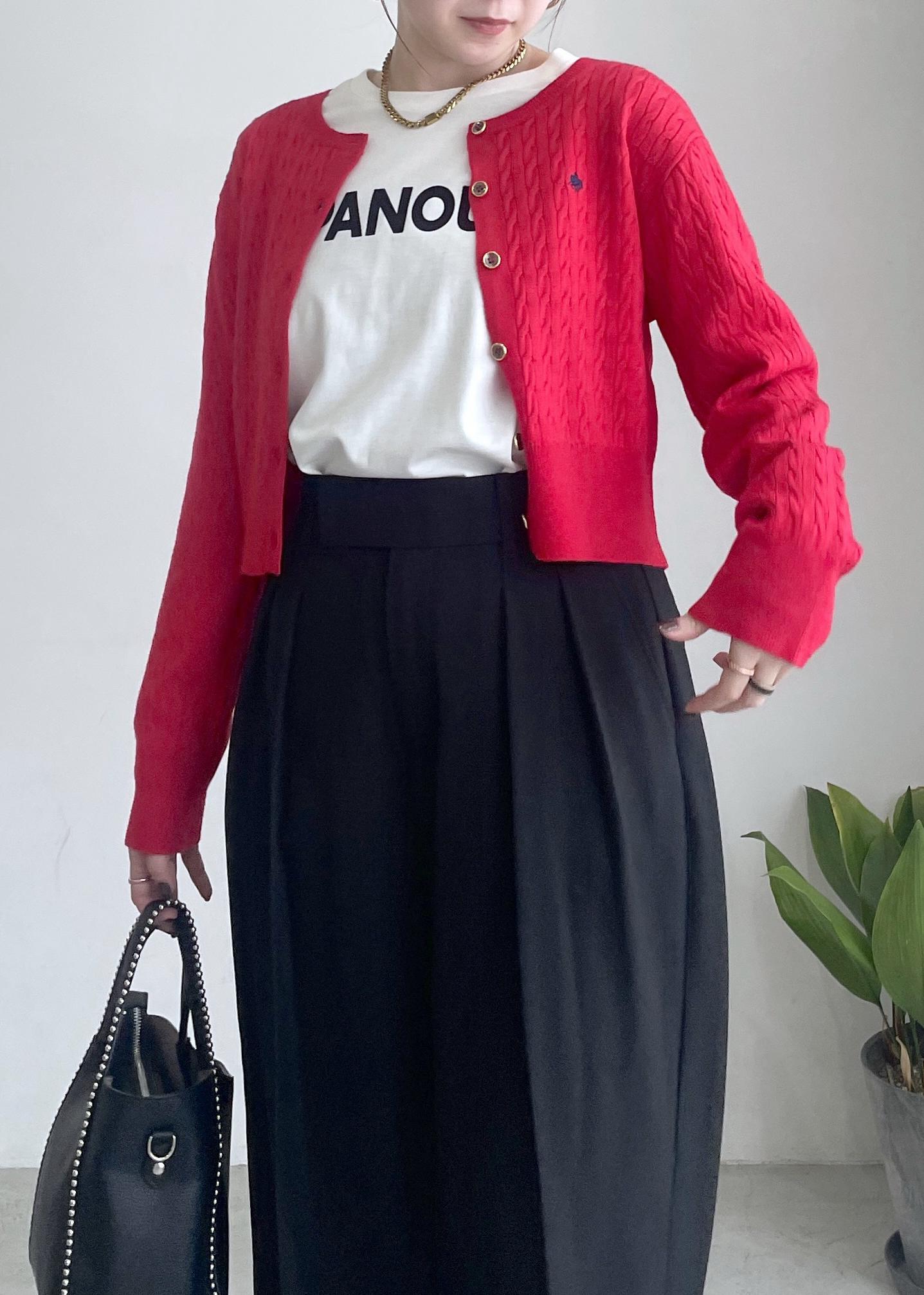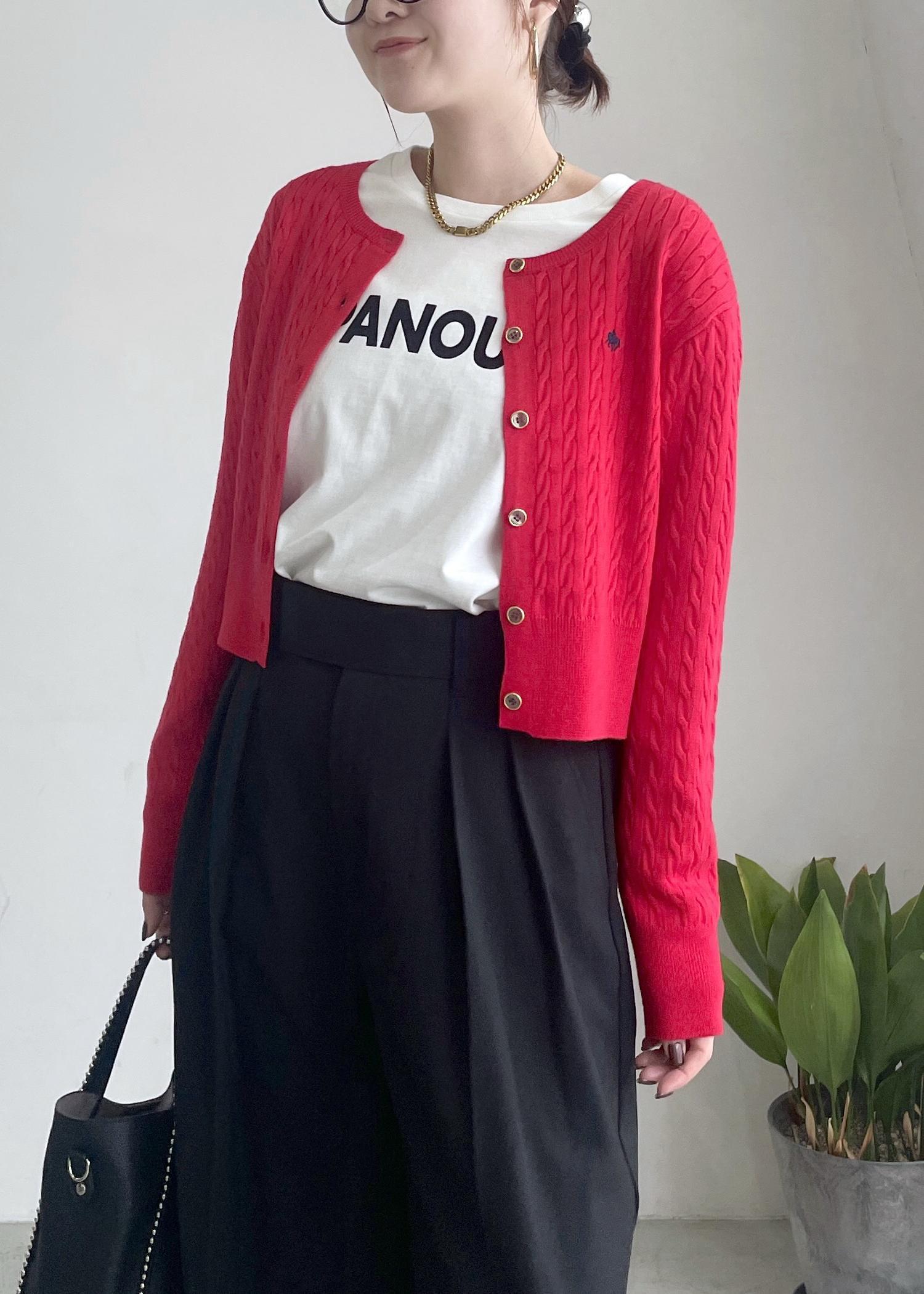 VIS【POLO BCS】VIS別注ミニケーブルノーカラーニットカーディガンレッド / F¥6,930レビュー万能に使えるニットカーディガン♡身頃部分はややフィットするサイズ感、ボディラインを綺麗に見せてくれます◎コンパクトな着丈なのでボトムは選ばず合わせやすいです。胸元のロゴ刺繍がポイント、配色も可愛いです!