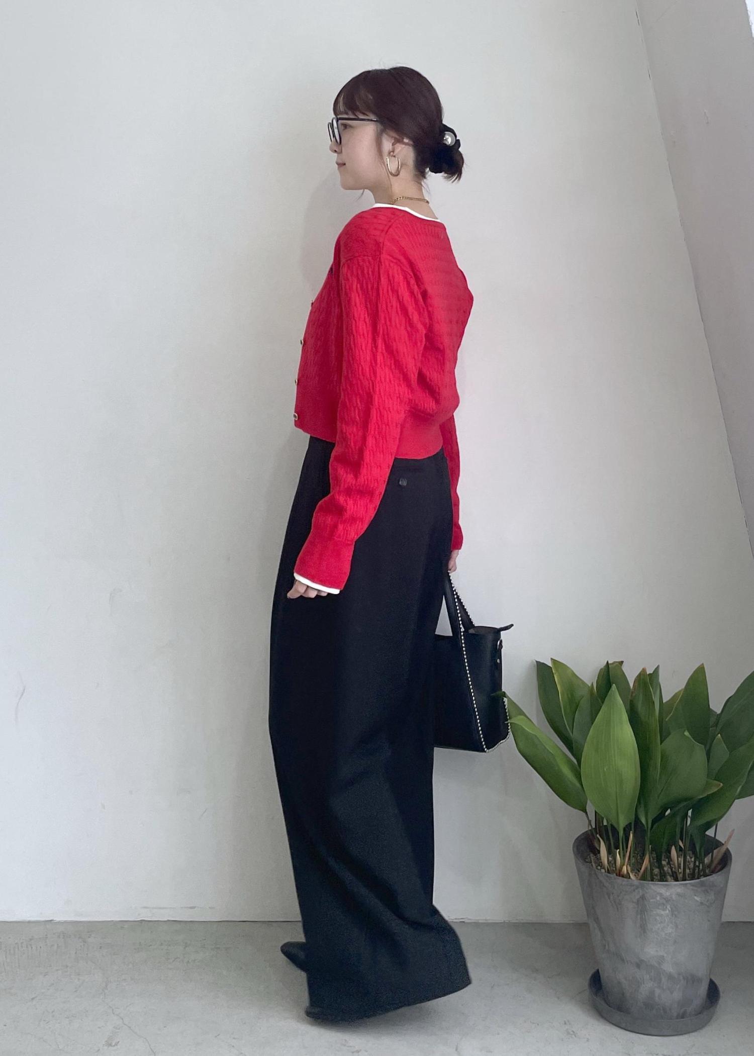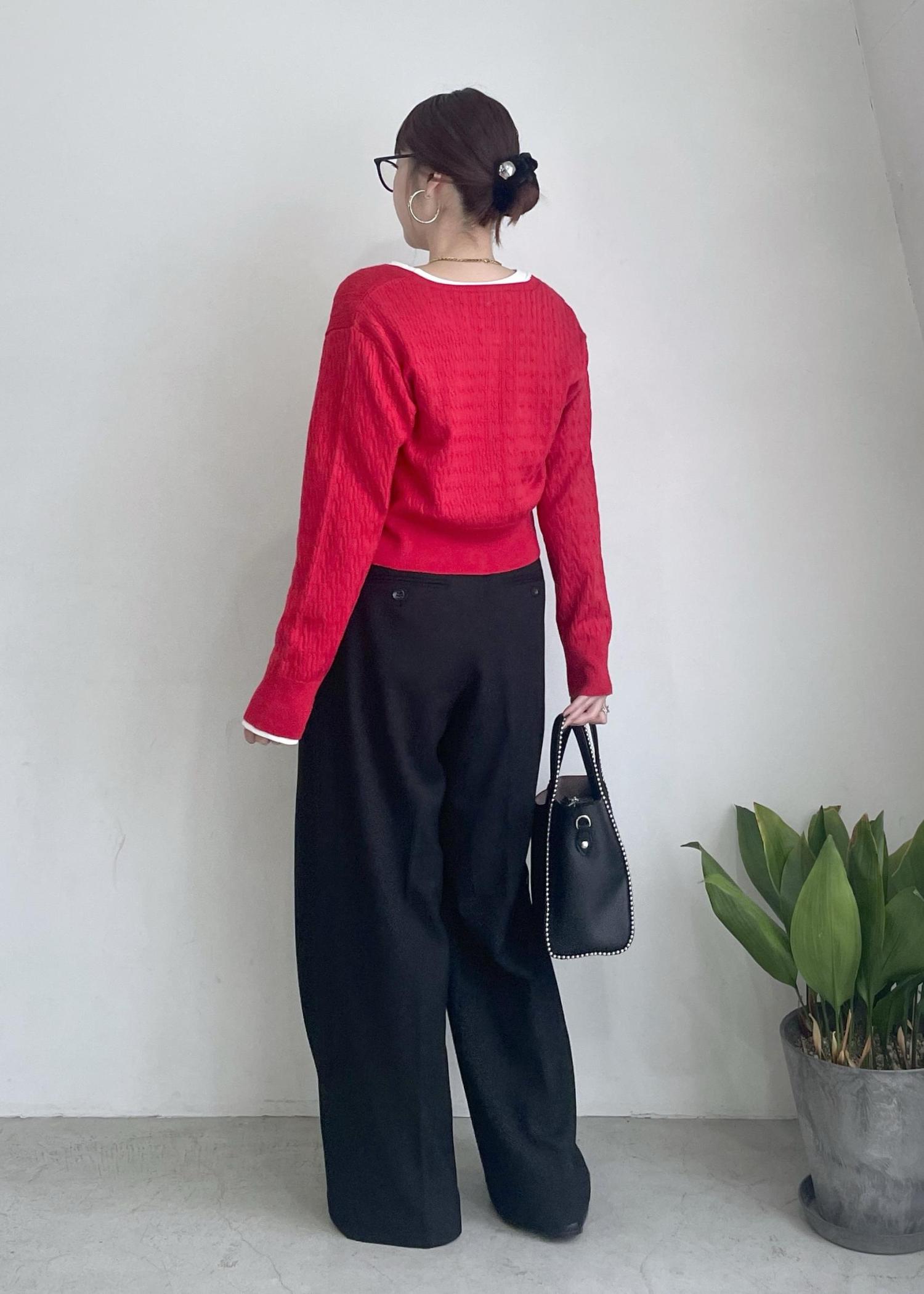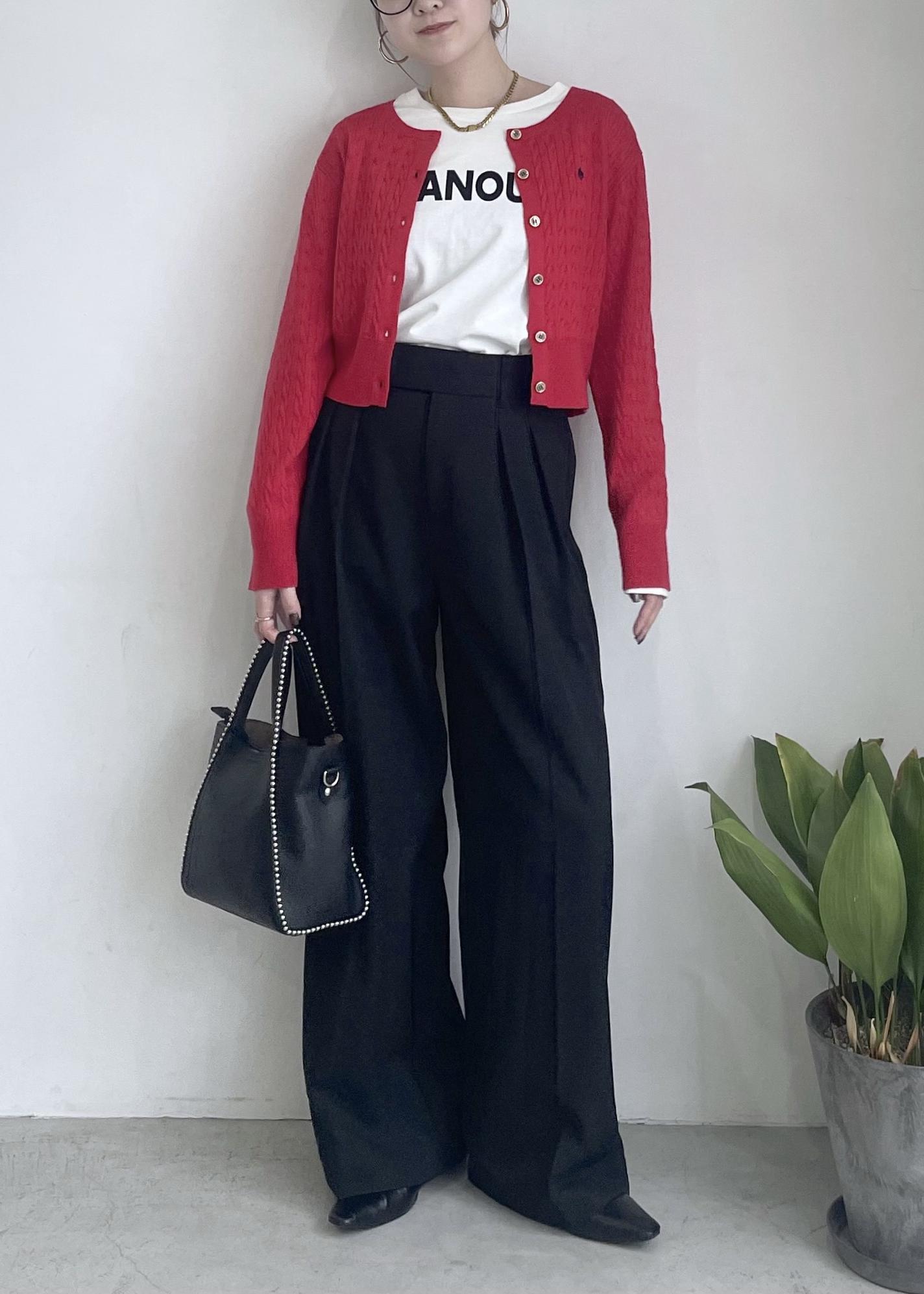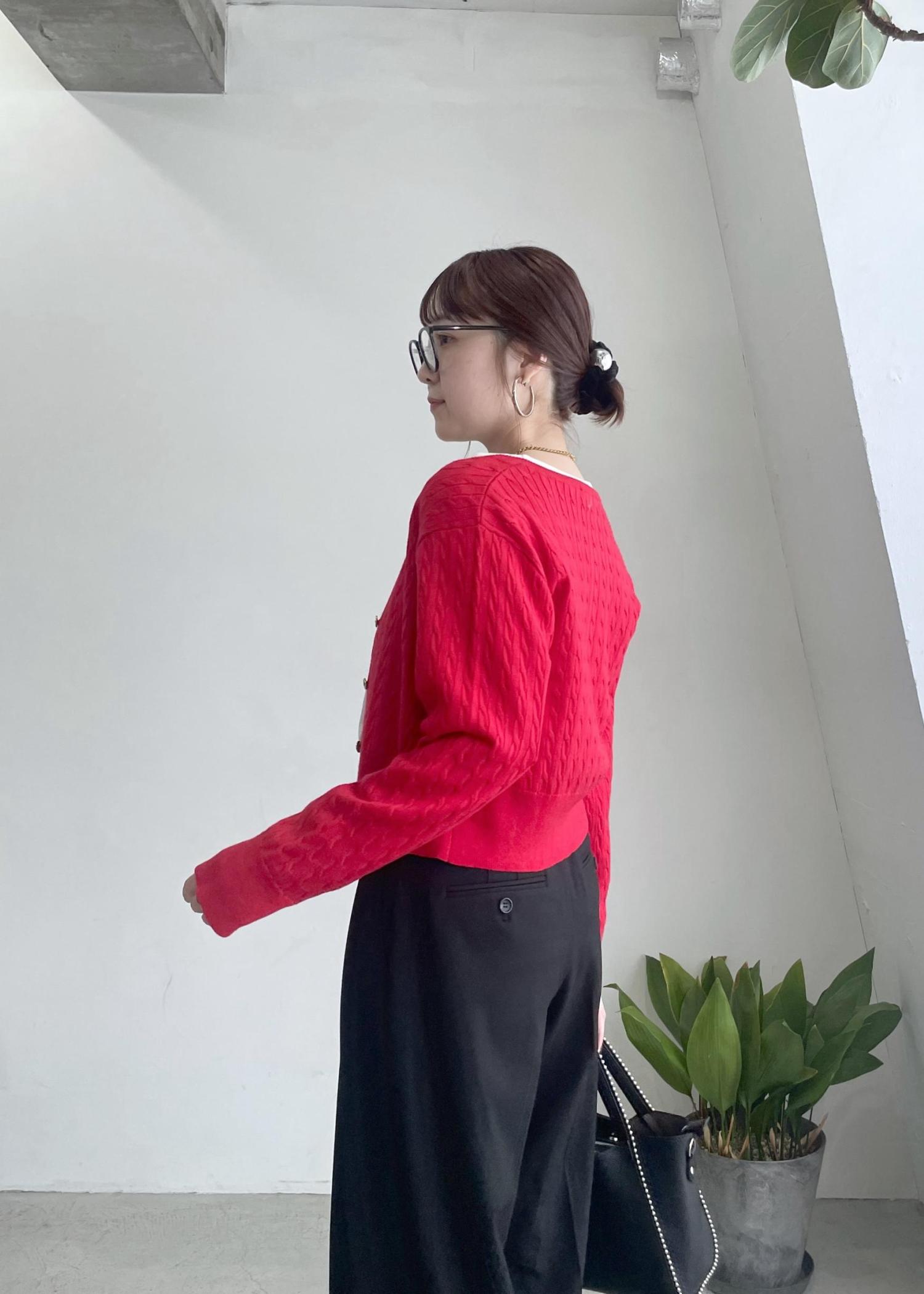 VIS【POLO BCS】VIS別注ミニケーブルノーカラーニットカーディガンレッド / F¥6,930レビュー万能に使えるニットカーディガン♡身頃部分はややフィットするサイズ感、ボディラインを綺麗に見せてくれます◎コンパクトな着丈なのでボトムは選ばず合わせやすいです。胸元のロゴ刺繍がポイント、配色も可愛いです!