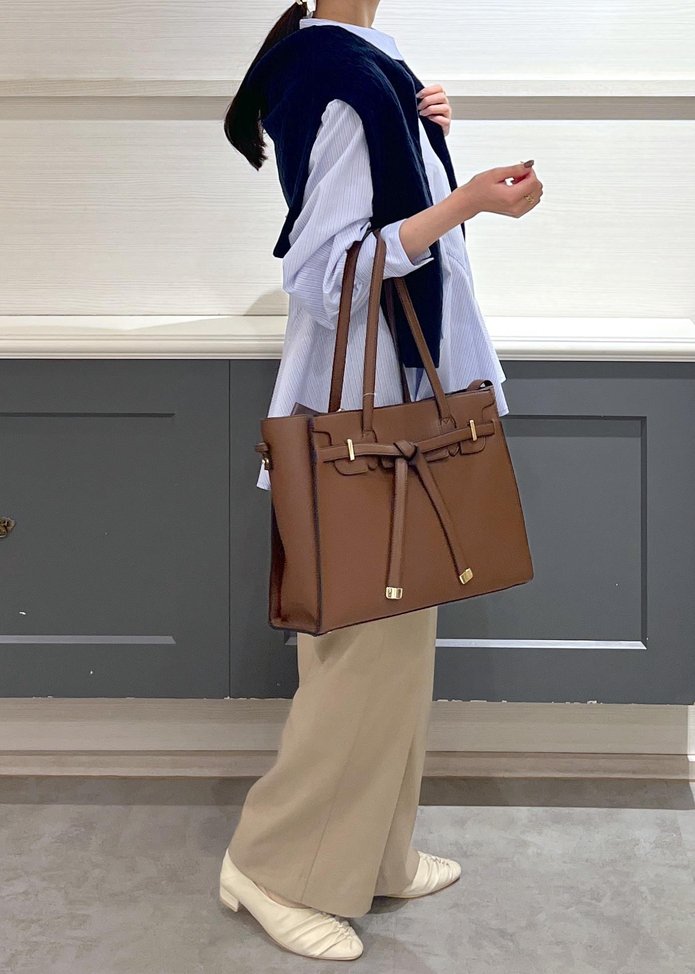VIS【新色追加】【A4収納】フラップタイトートバッグダークブラウン / F¥7,909レビューA4サイズのものや500mlのペットボトルの他にもたくさん荷物が入りました!