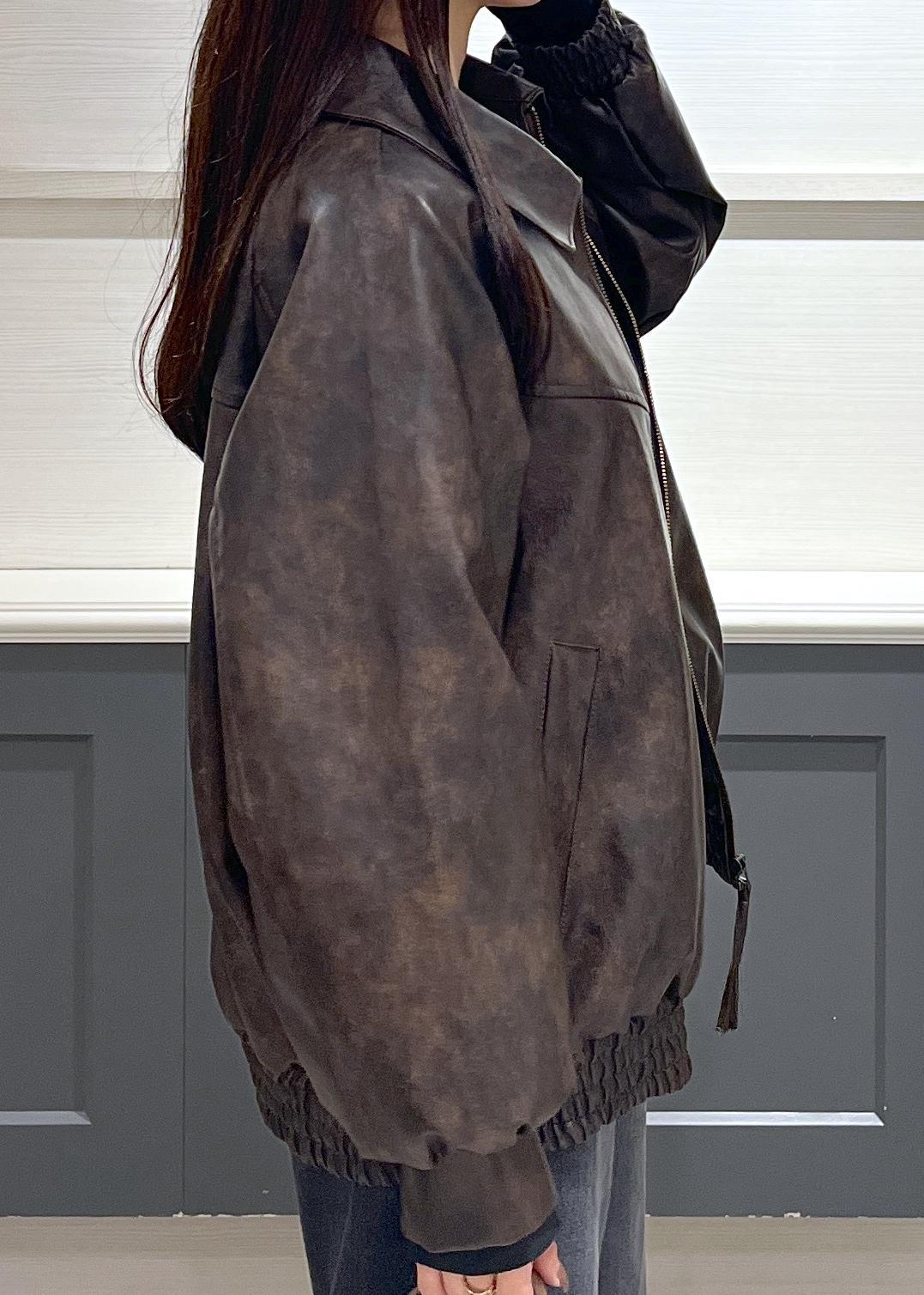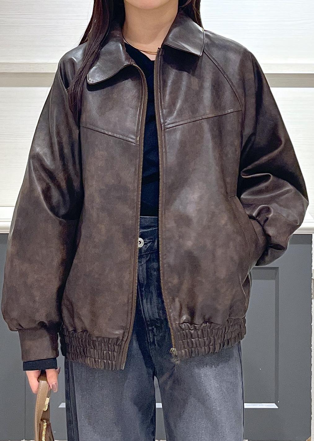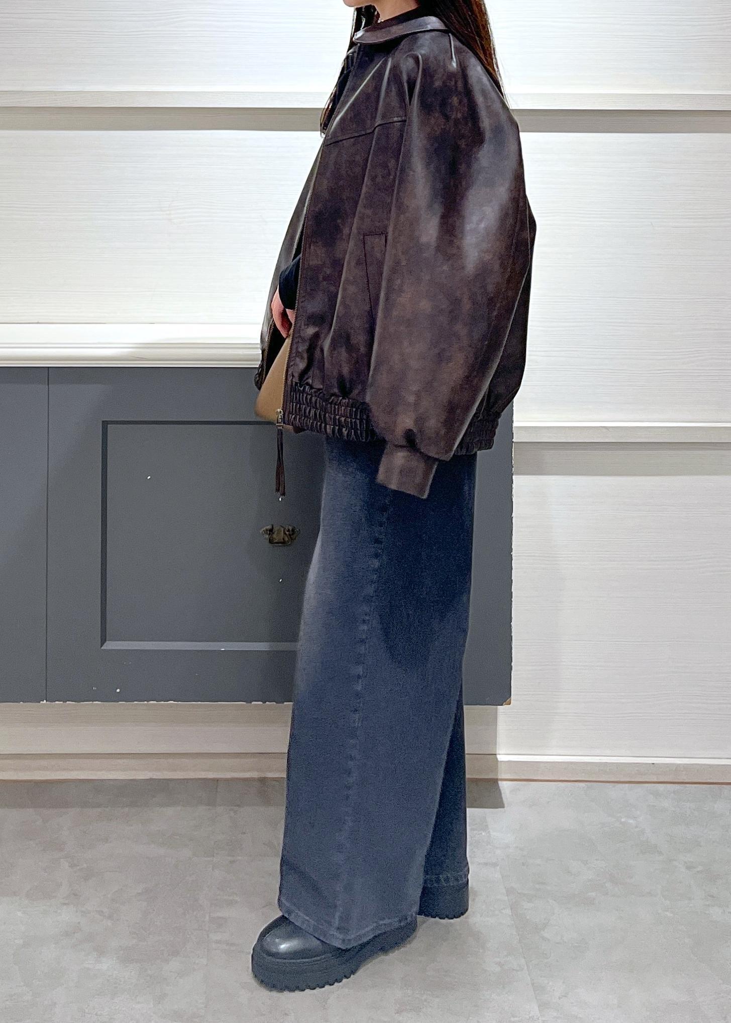 VIS合皮&スエードライクジップアップブルゾンダークブラウン系 / F¥10,989レビュー156cmでヒップにかかる丈感でした。