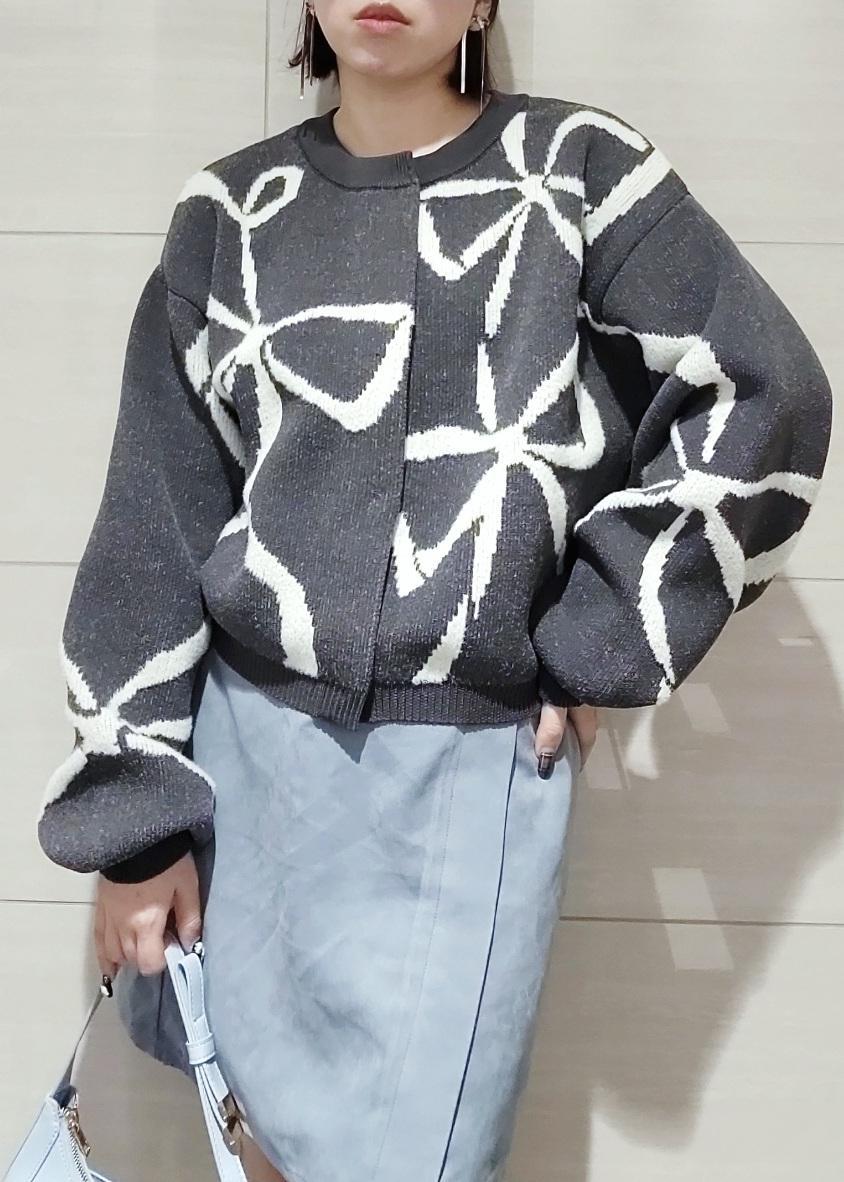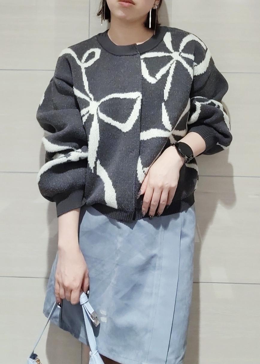VISリボンモチーフジャガードカーディガン/イージーケアグレー / F¥6,919レビューもちもちな肌触りで厚みもしっかりとあるニット素材です!