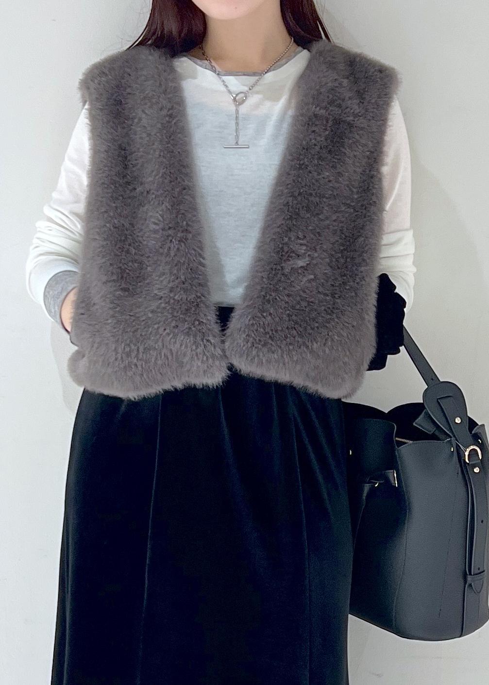 VISアソートファーショートベストグレー系 / F¥8,899レビュー152cmで腰に当たるくらいの長さでした