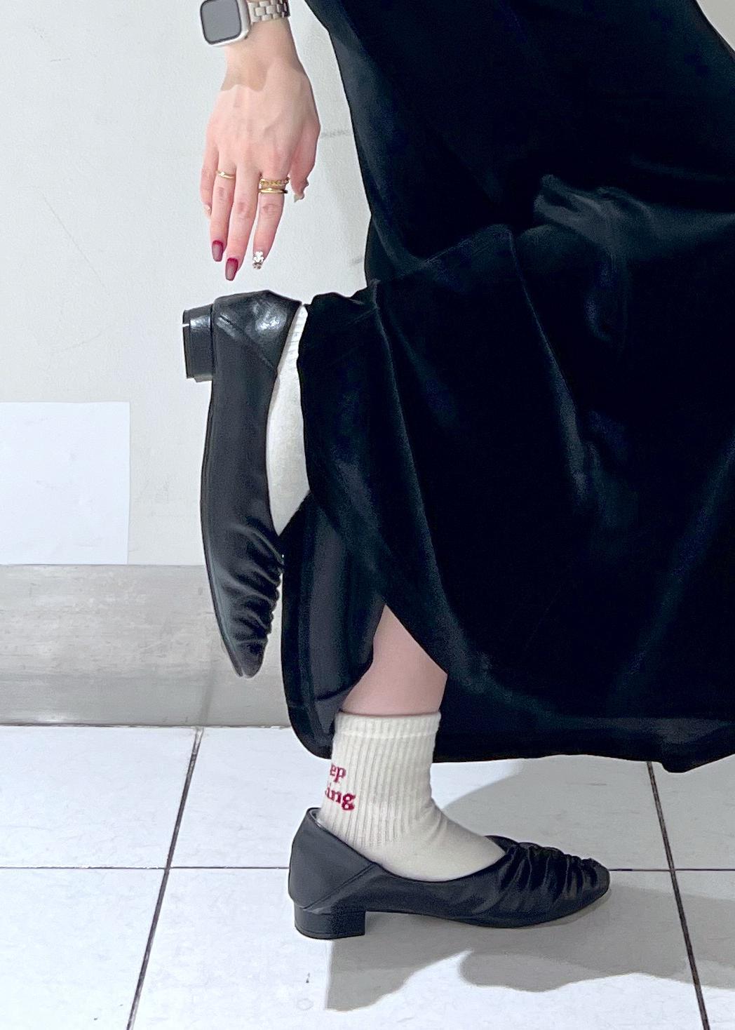 分厚目の靴下を履くと少しは詰めれたのですが、パンプスやヒール用の透明バンドがあると安心感がありました!