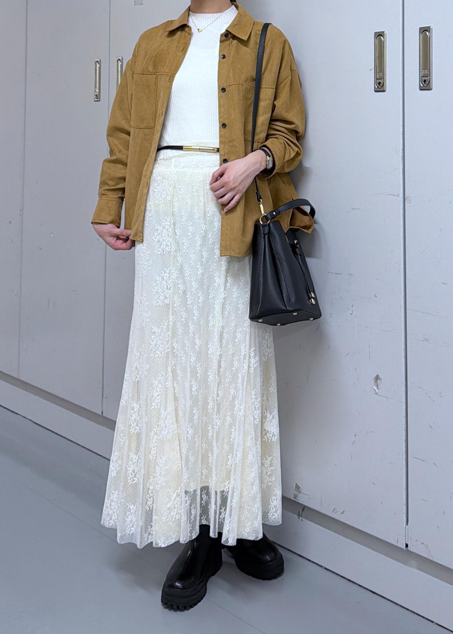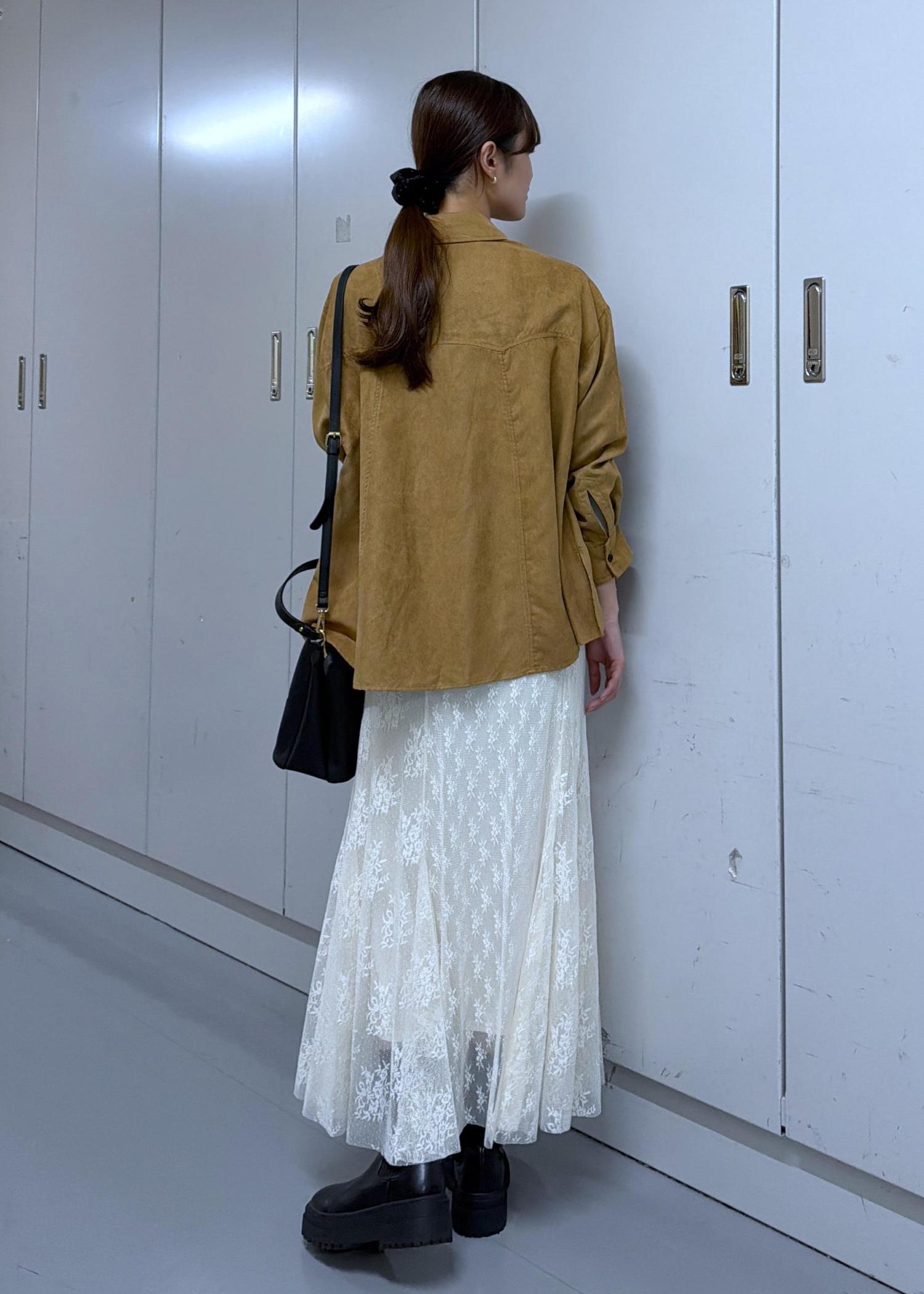 レースだけでデニムなどとレイヤードして着るのもおすすめです◎ -