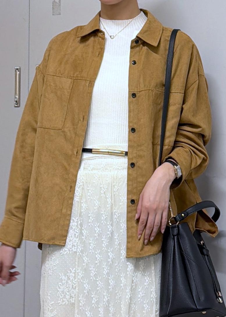 VISスエードライクロングスリーブシャツキャメル系 / F¥4,843レビュー167cmの身長でお尻にかかるくらいの長さでちょうど良かったです◎柔らかいスウェードなのでとても着やすかったです。