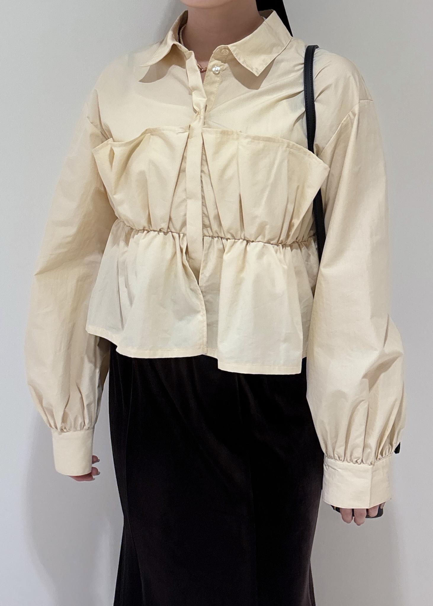 オフホワイトとクリーム色は少し透け感あるため、同系色のインナー等合わせると◎ -
