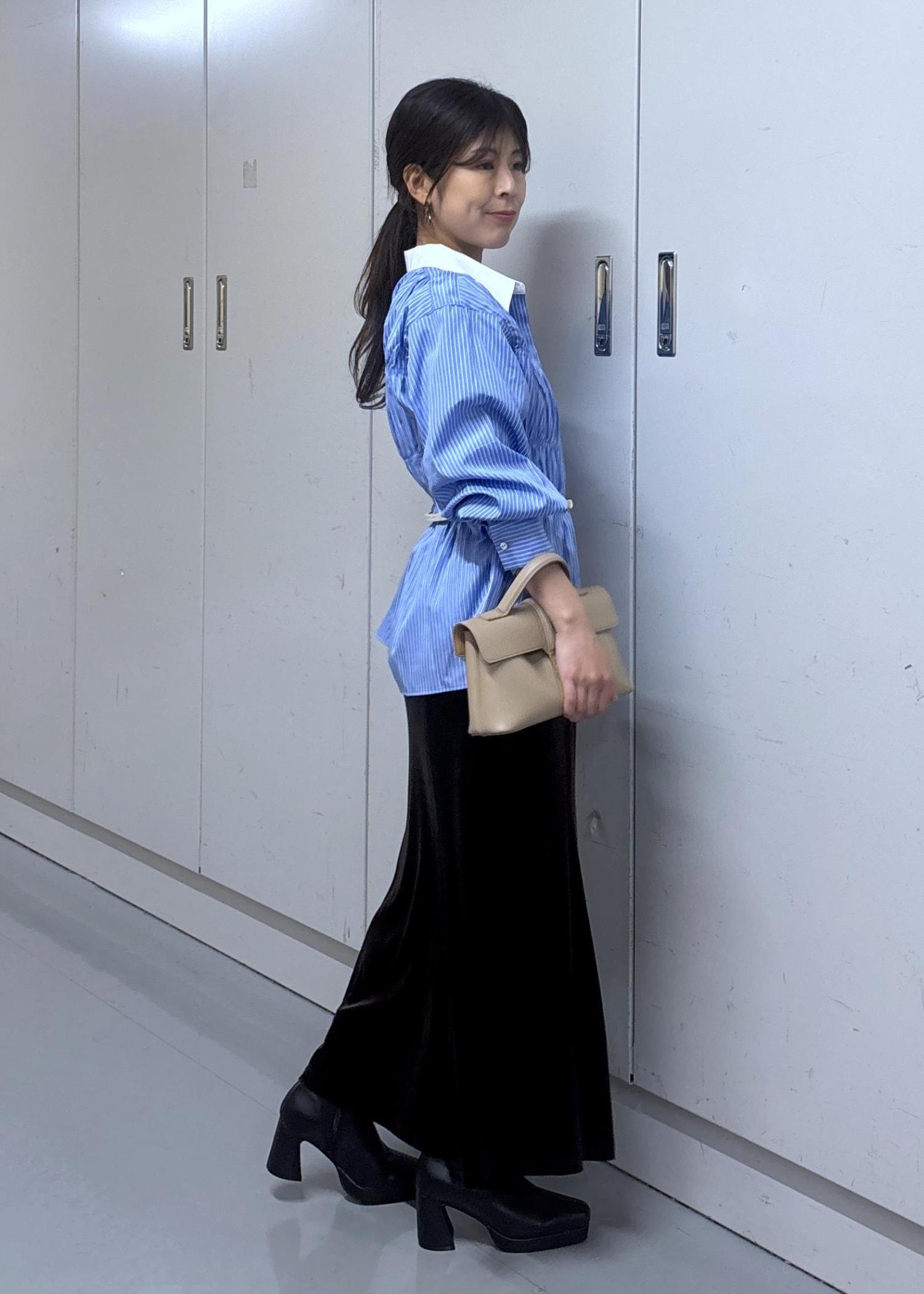 VISベロアナロースカートブラック / S¥6,589レビュー156cm/S着用。着丈は足首が隠れる長さです。ウエストはゴムで少し余裕がありましたがトップスインしてちょうどよい感じです◎ウエストから膝まではスッキリしたデザインなので着丈長めのトップスやオーバーサイズのアイテムとの相性抜群です!!