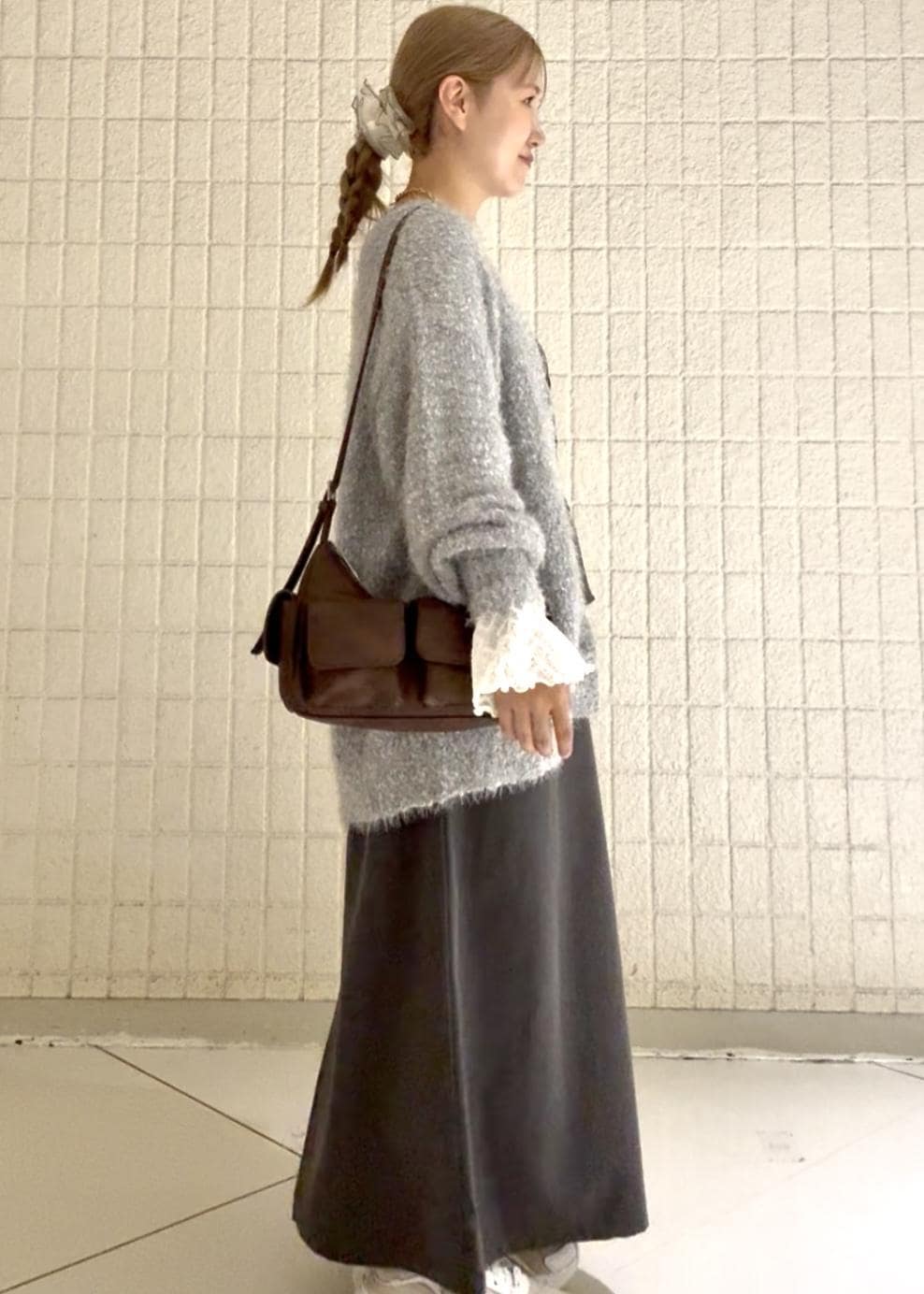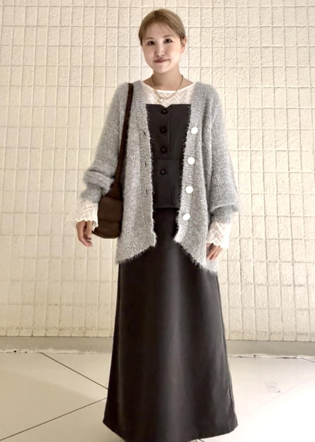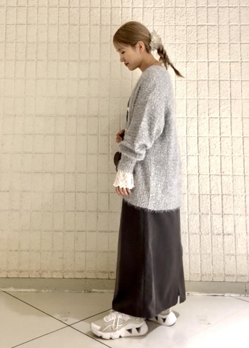 ゆるっと長めなので逆にボリュームを抑えられて縦のラインができるのでバランスとりやすいです。 -