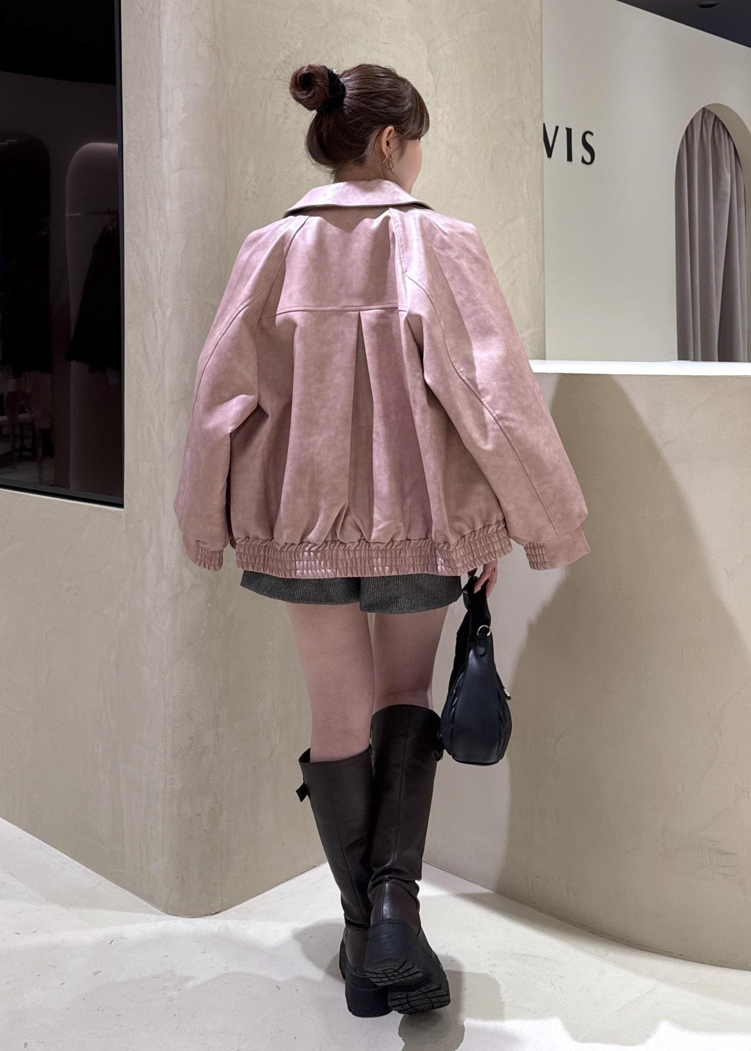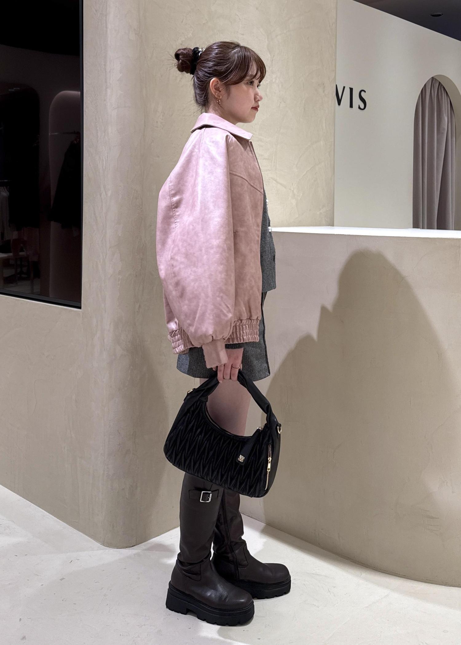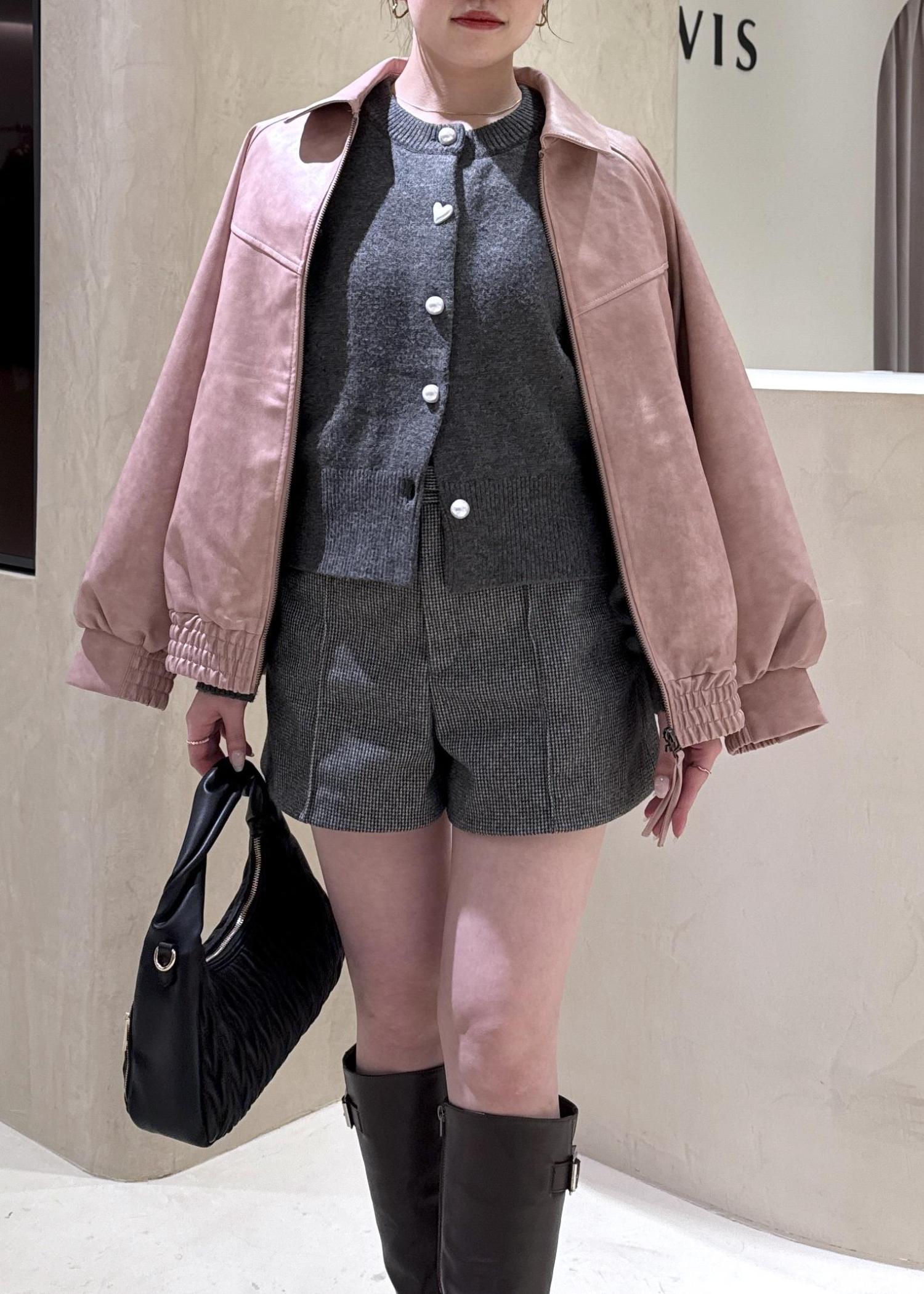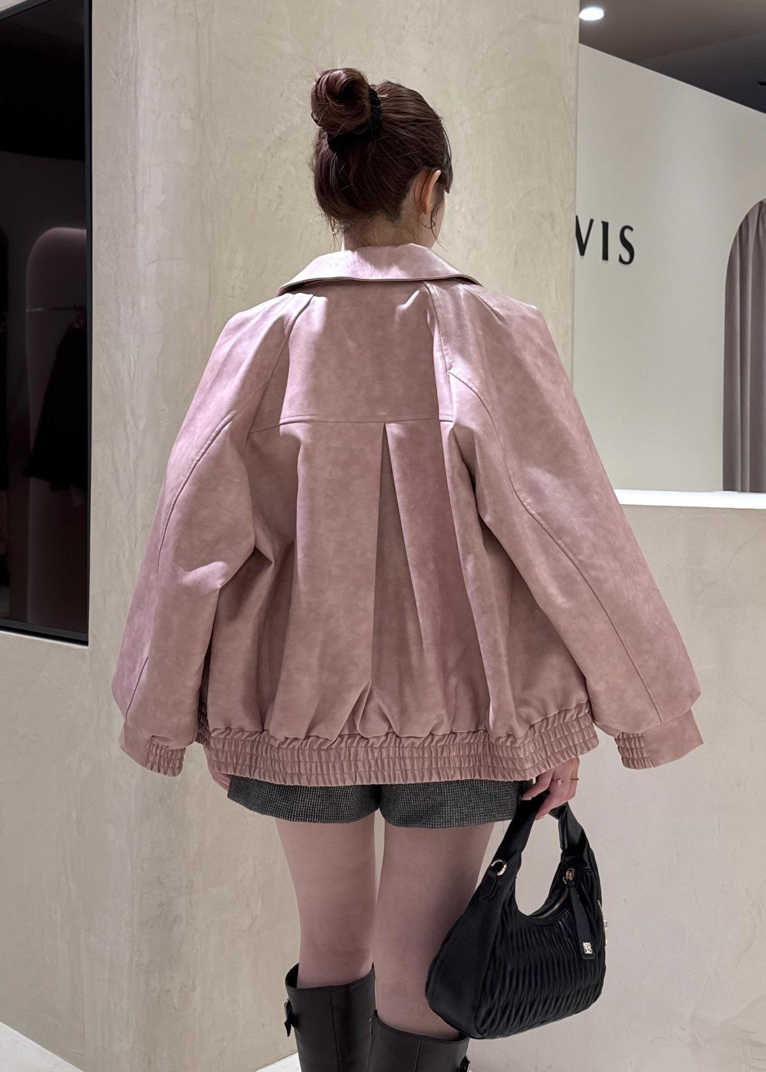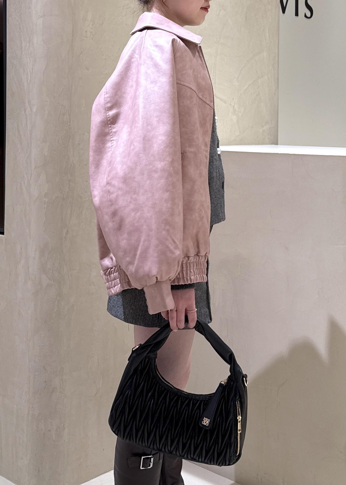 VIS合皮&スエードライクジップアップブルゾンピンク系 / F¥10,989レビューオーバーサイズのシルエットなので、中にニットやカーディガンなどレイヤードスタイルがしやすいブルゾンです!