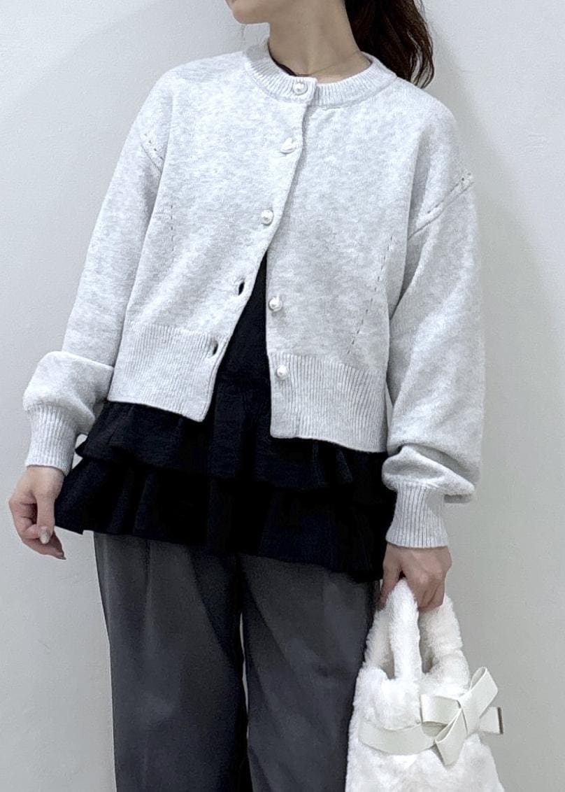 VISハートアソートパール釦ラメミックスカーディガン/イージーケア・一部WEB限定カラーライトグレー / F¥5,489レビューパールボタンとラメ生地が大人可愛いカーデ。毎年大人気です♡