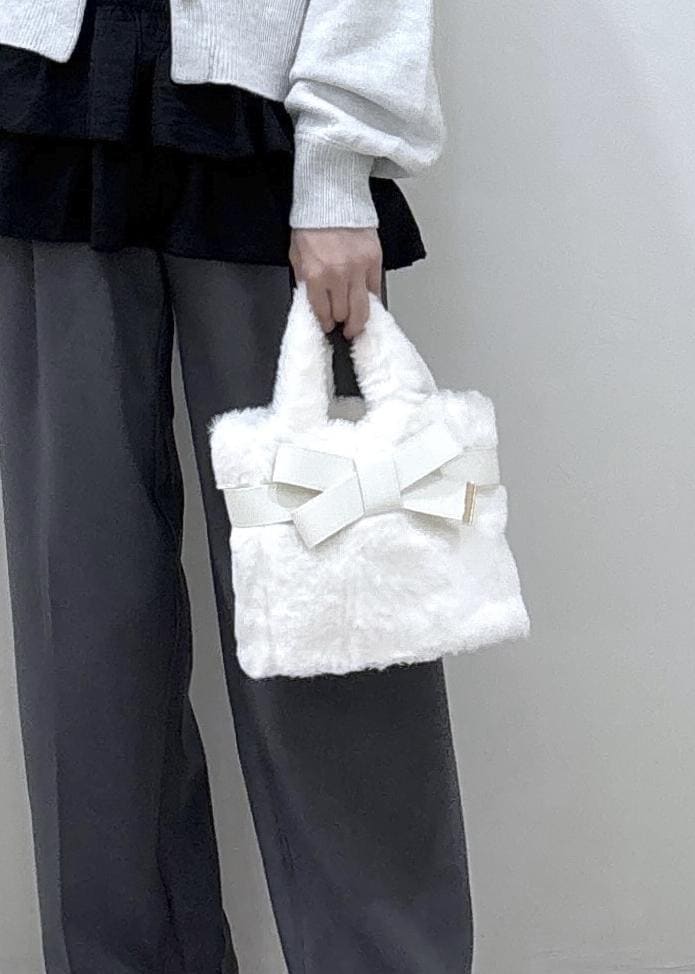 VIS【2WAY】ファーリボントートバッグキナリ / F¥6,919レビューもこもこ感が可愛いバッグ。ショルダーもついているのも嬉しいポイント!