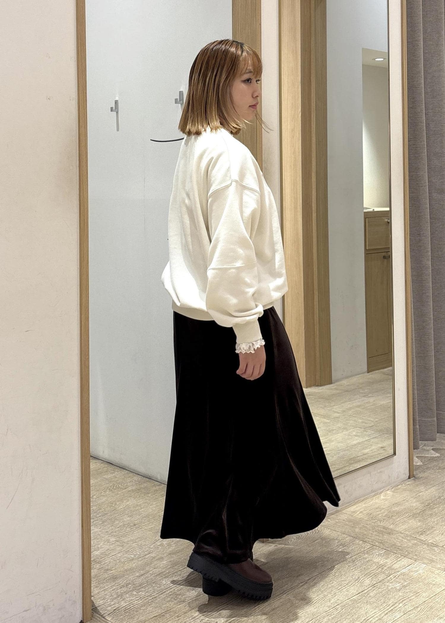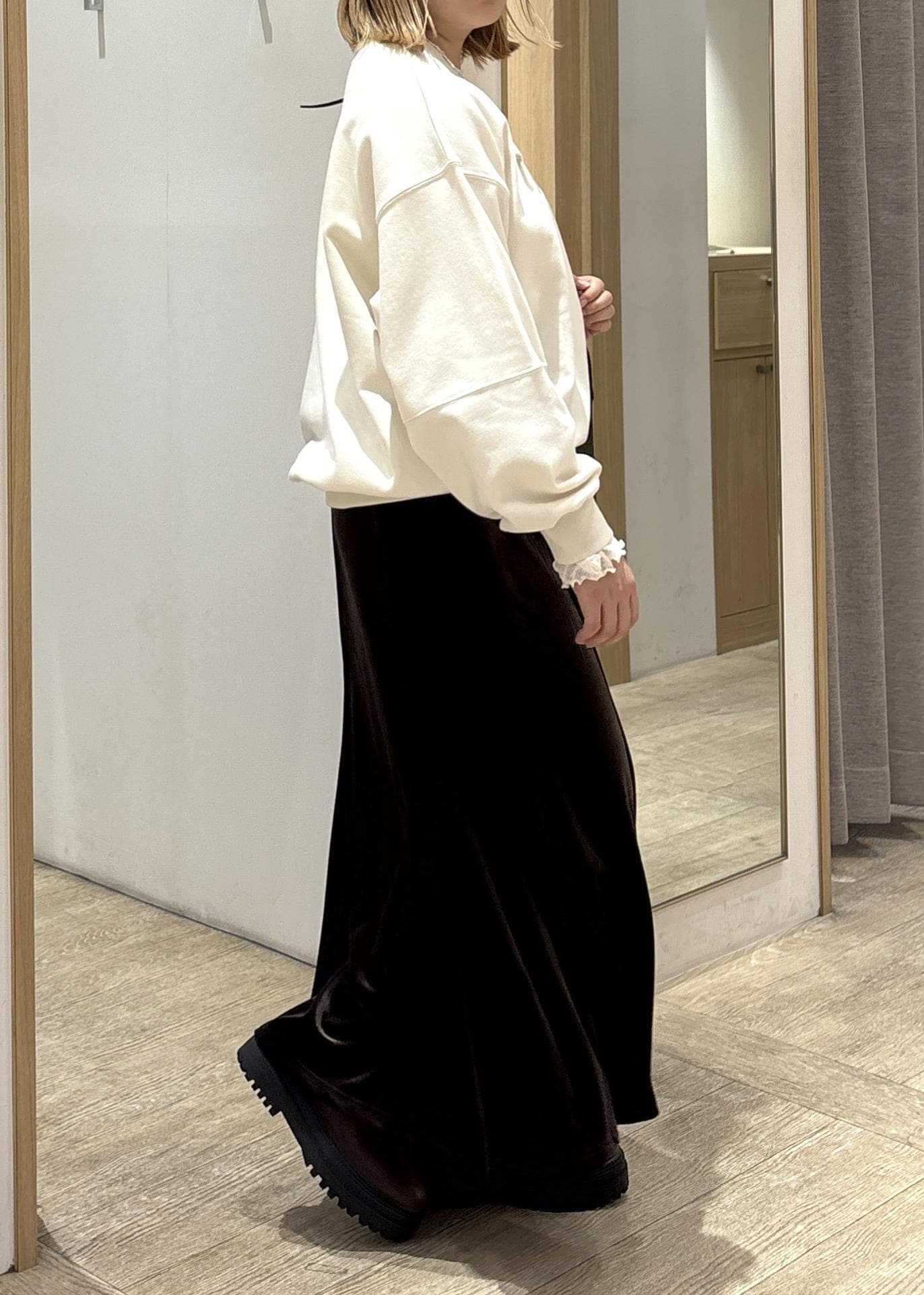 少しゆったりめなので、下にインナーを重ねられるので、幅広い着回しができます! -