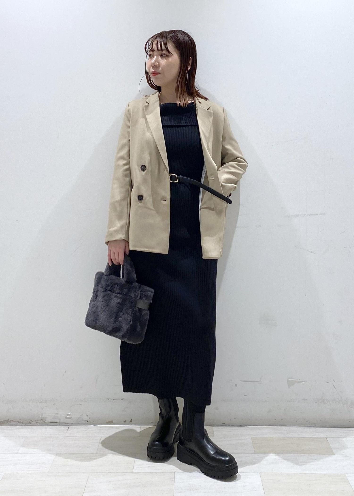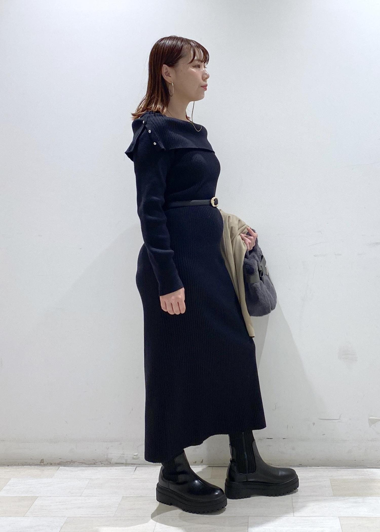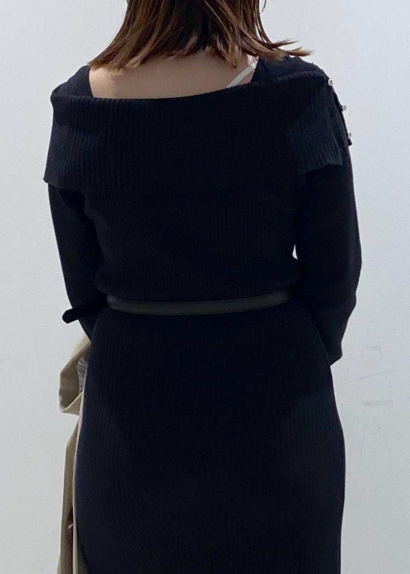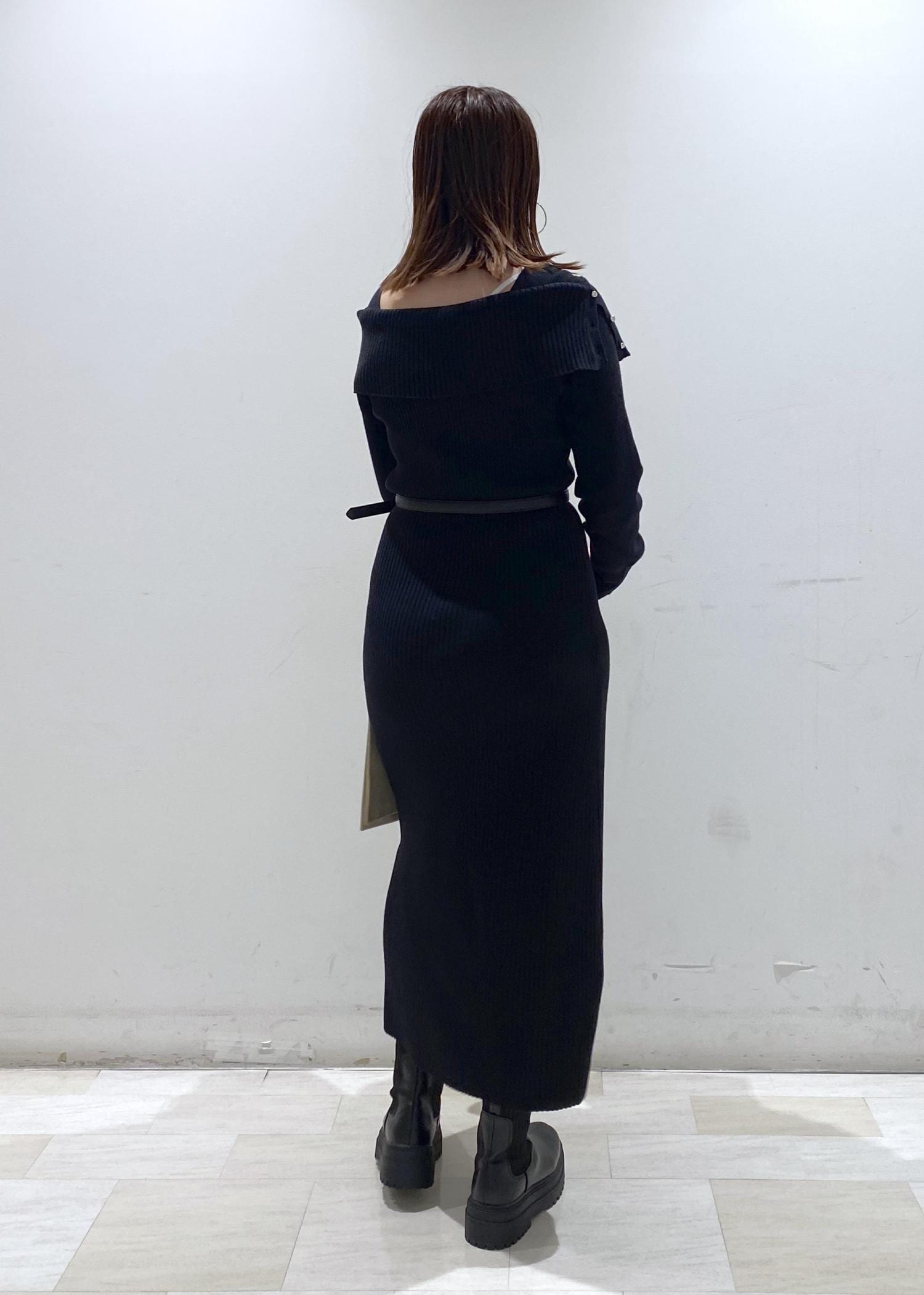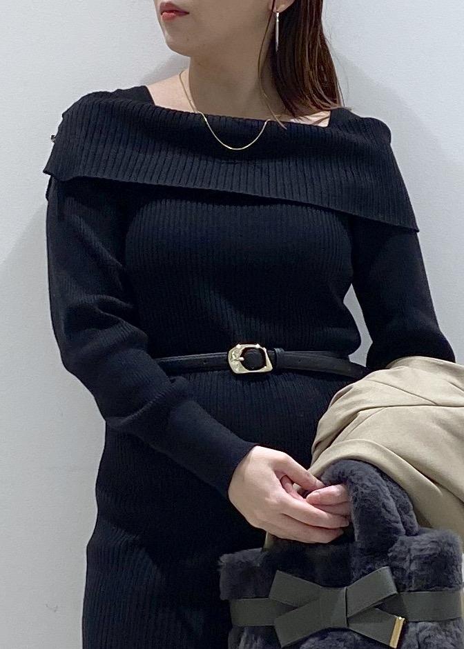 VISアシメオフショルリブニット美シルエットワンピース/着丈が選べるブラック / F¥8,899レビュー丈が選べるシリーズのワンピースは