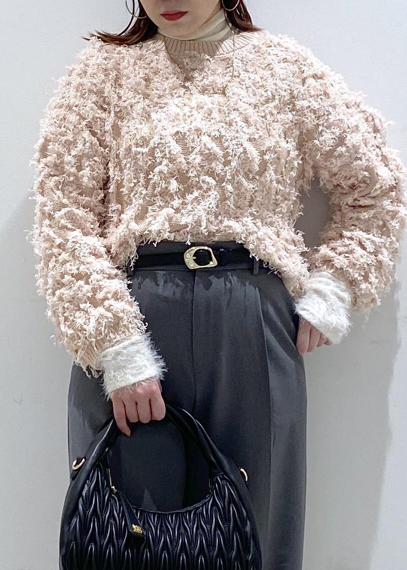 VISフェザー切り替えスリーブシアータートルニットキナリ / F¥5,489レビューお袖がファー素材の切り替えになっている