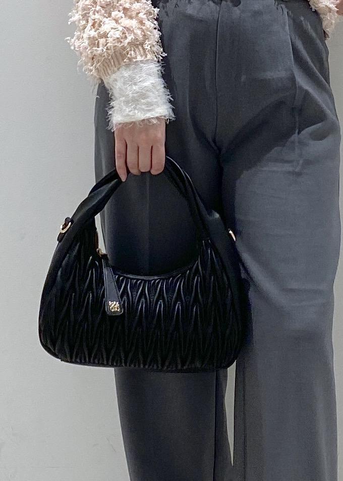 VIS【2WAY】ねじりハンドルキルティングバッグブラック / F¥7,909レビュー二つ折り財布やスマホの入る大きさです。