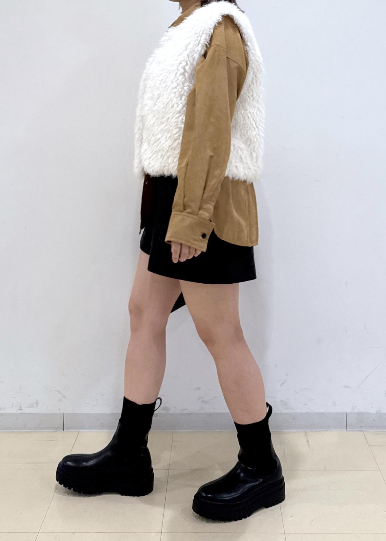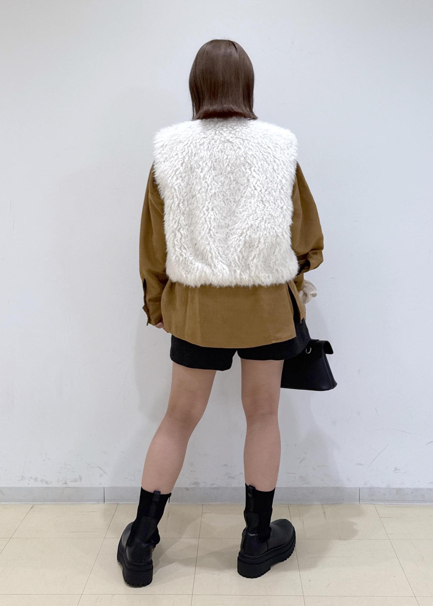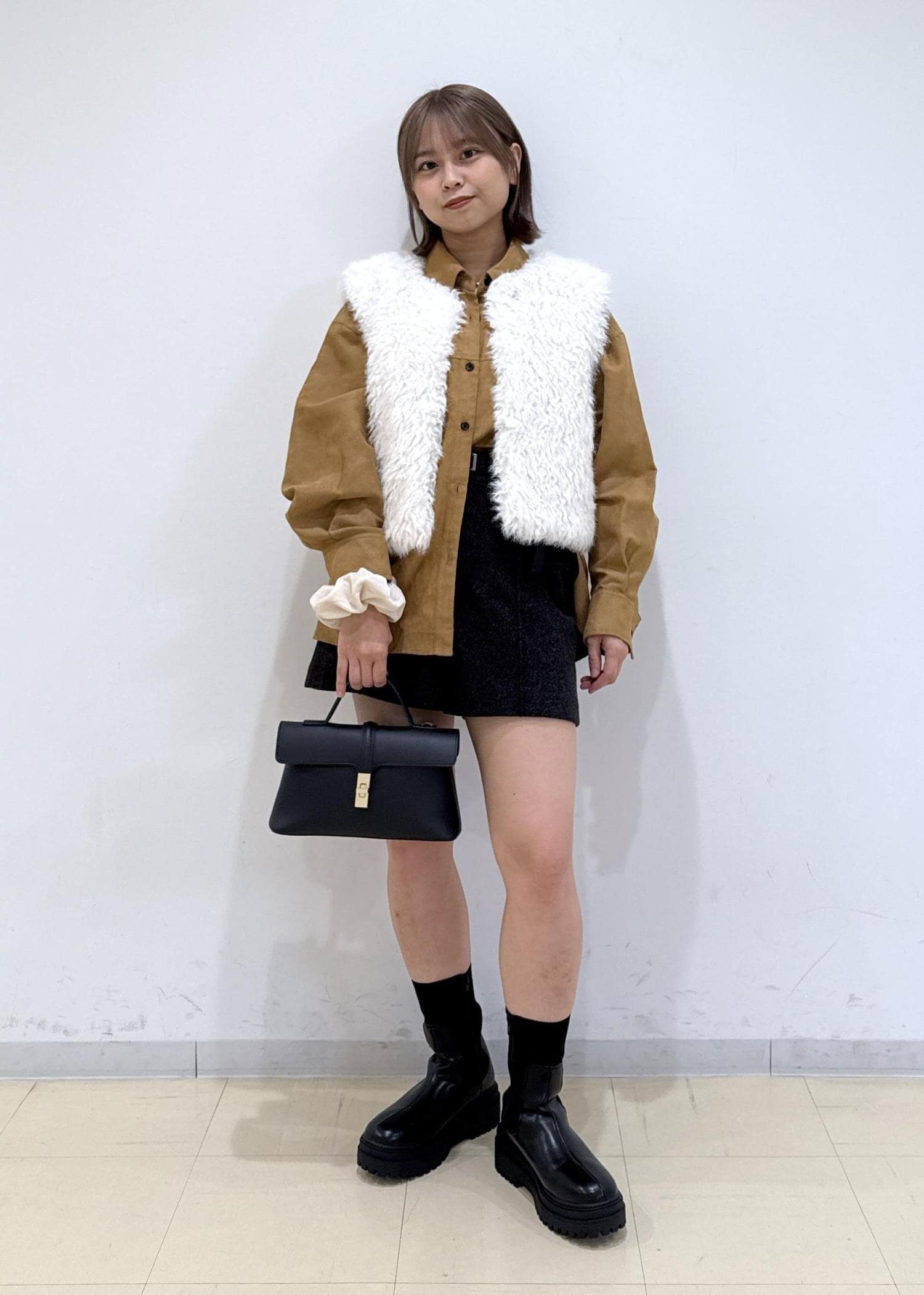 シャツは片方だけインをし、うファーベストを合わせた一癖あるコーディネートにしました♩