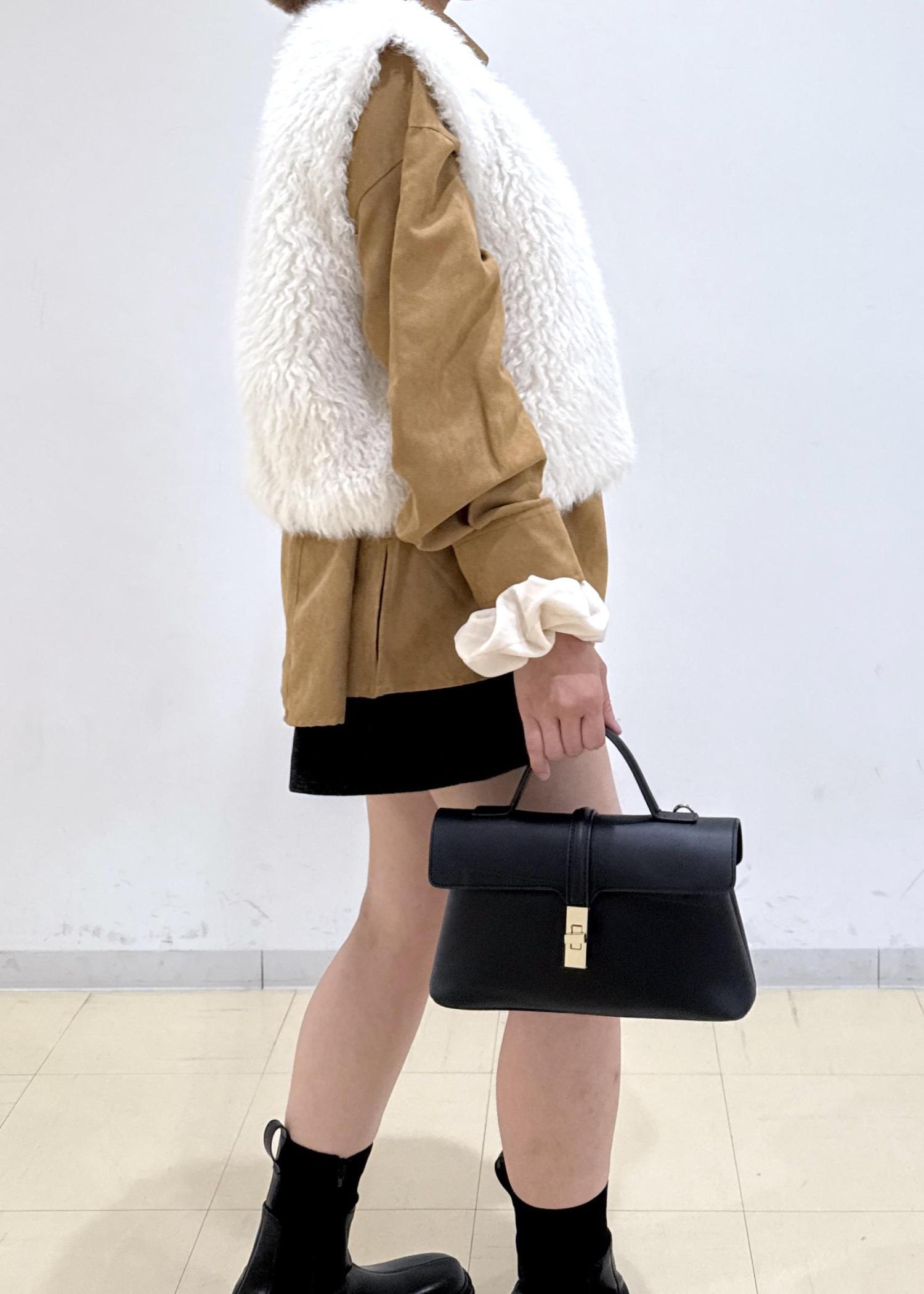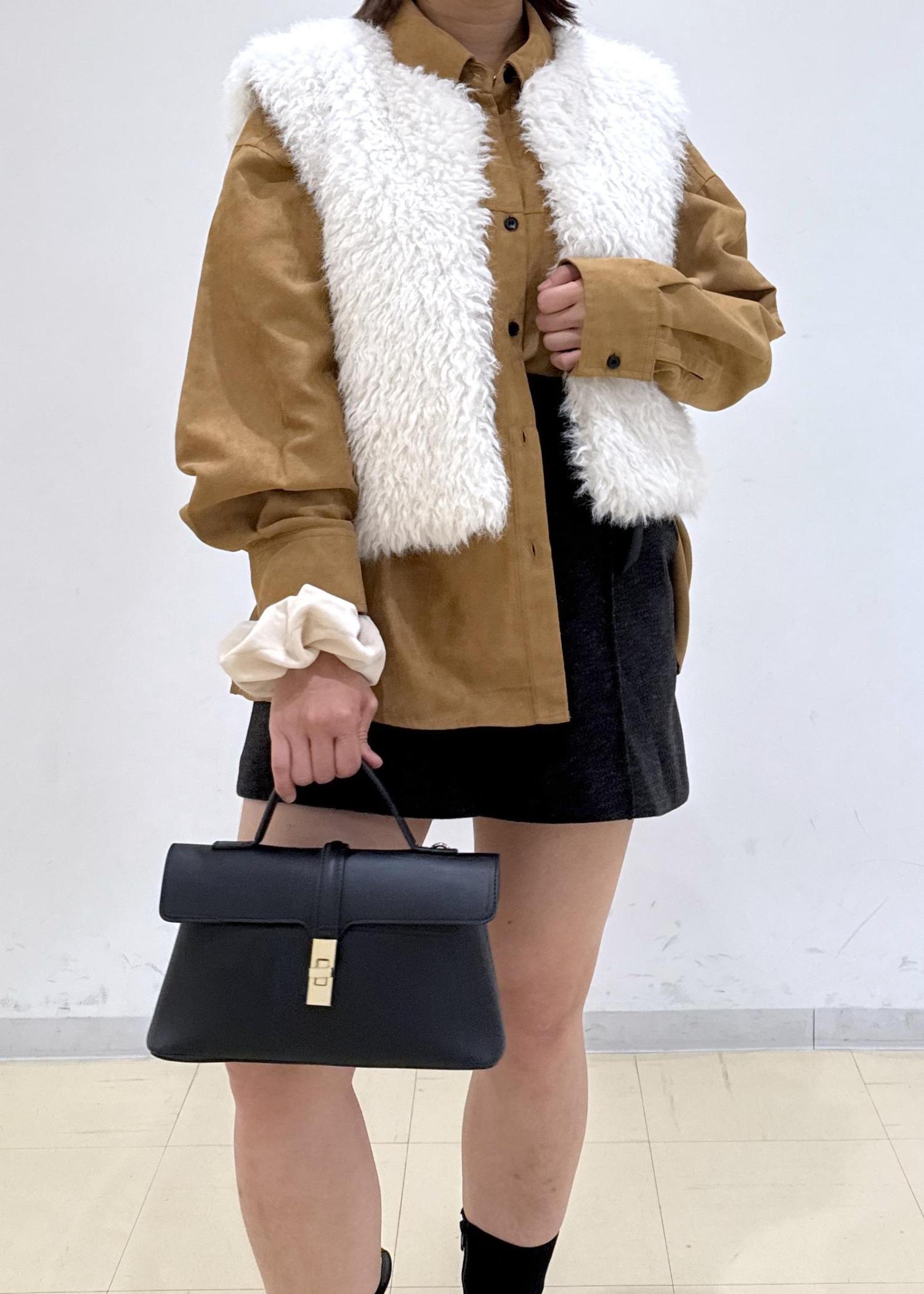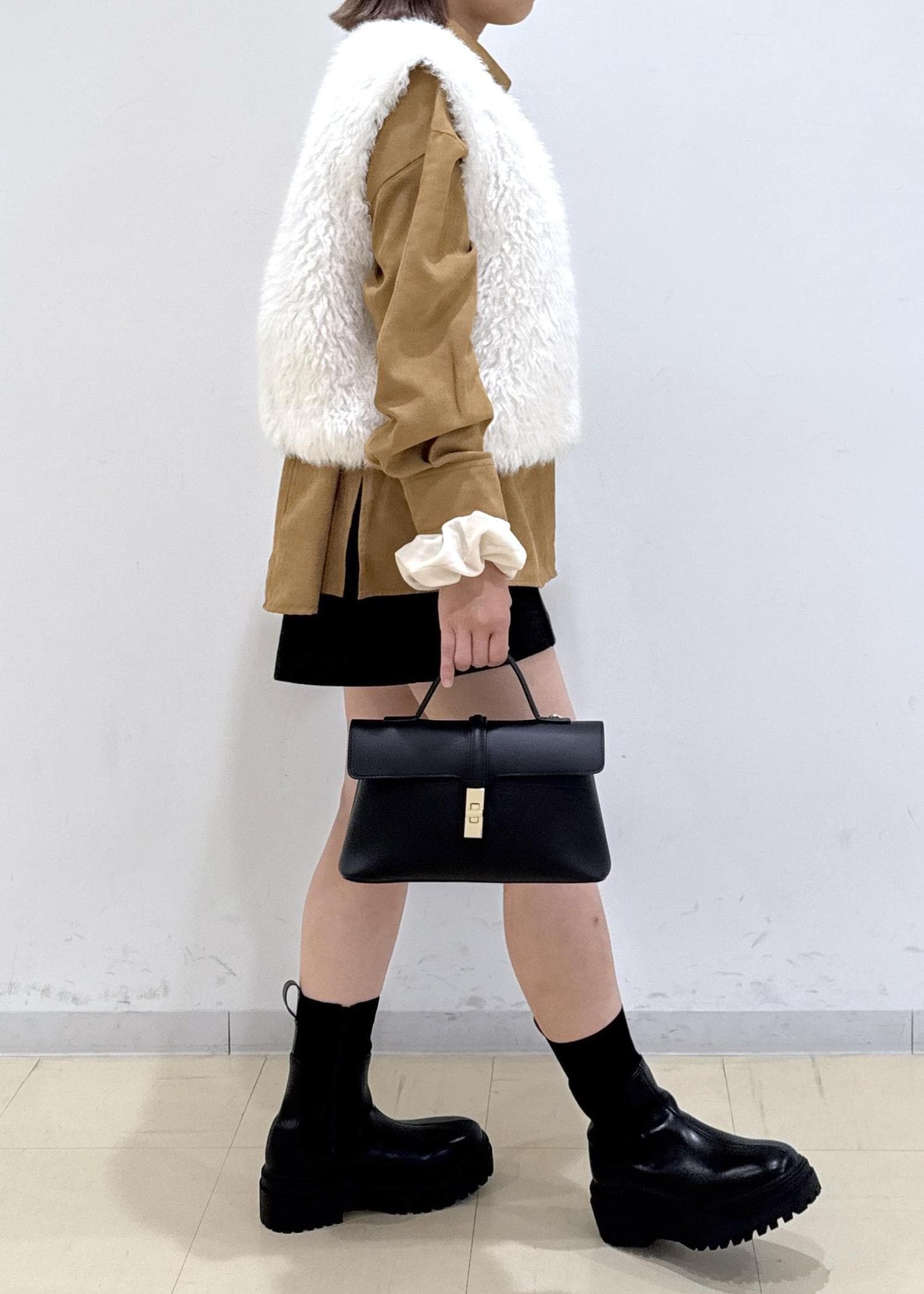 シャツは片方だけインをし、うファーベストを合わせた一癖あるコーディネートにしました♩