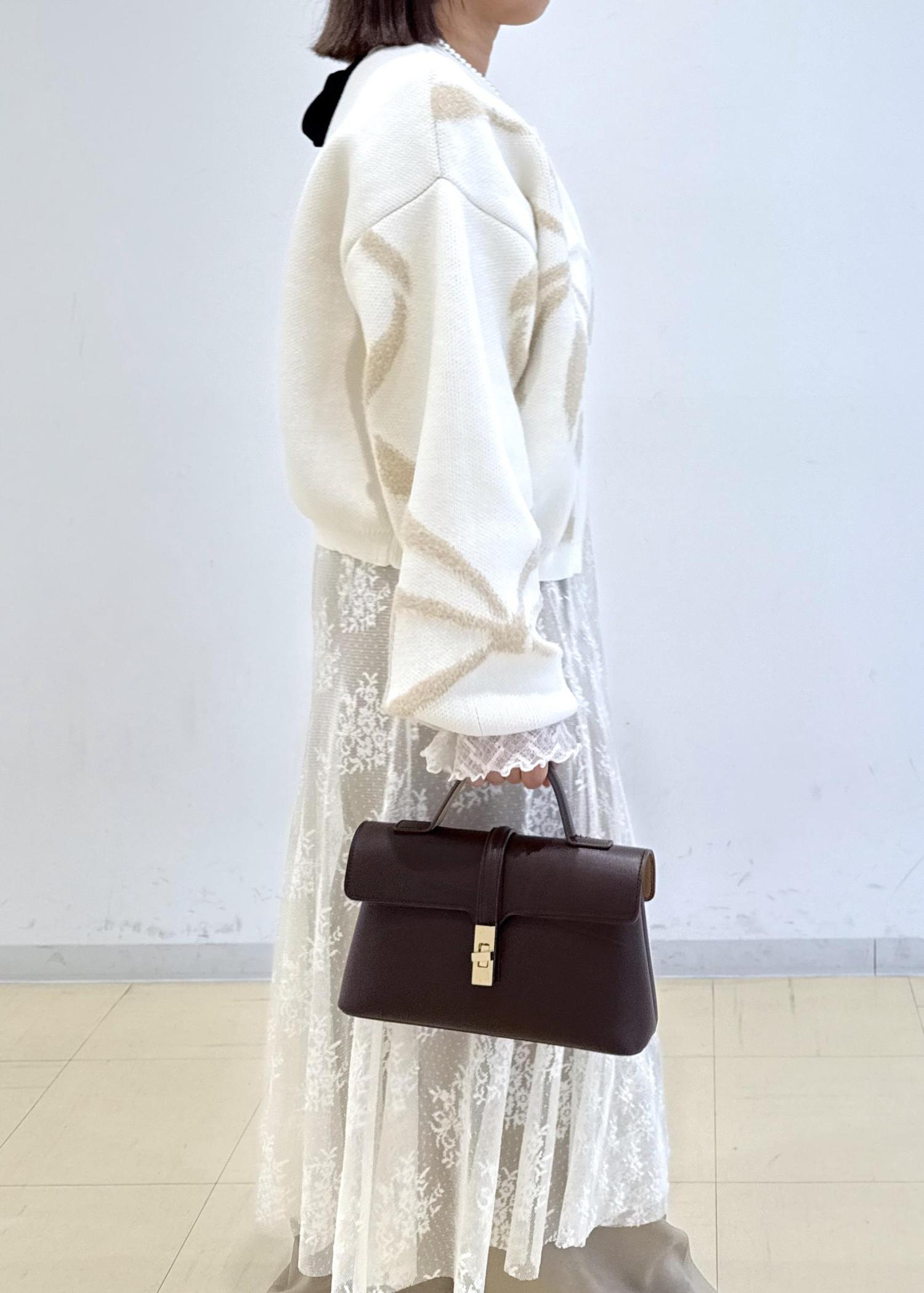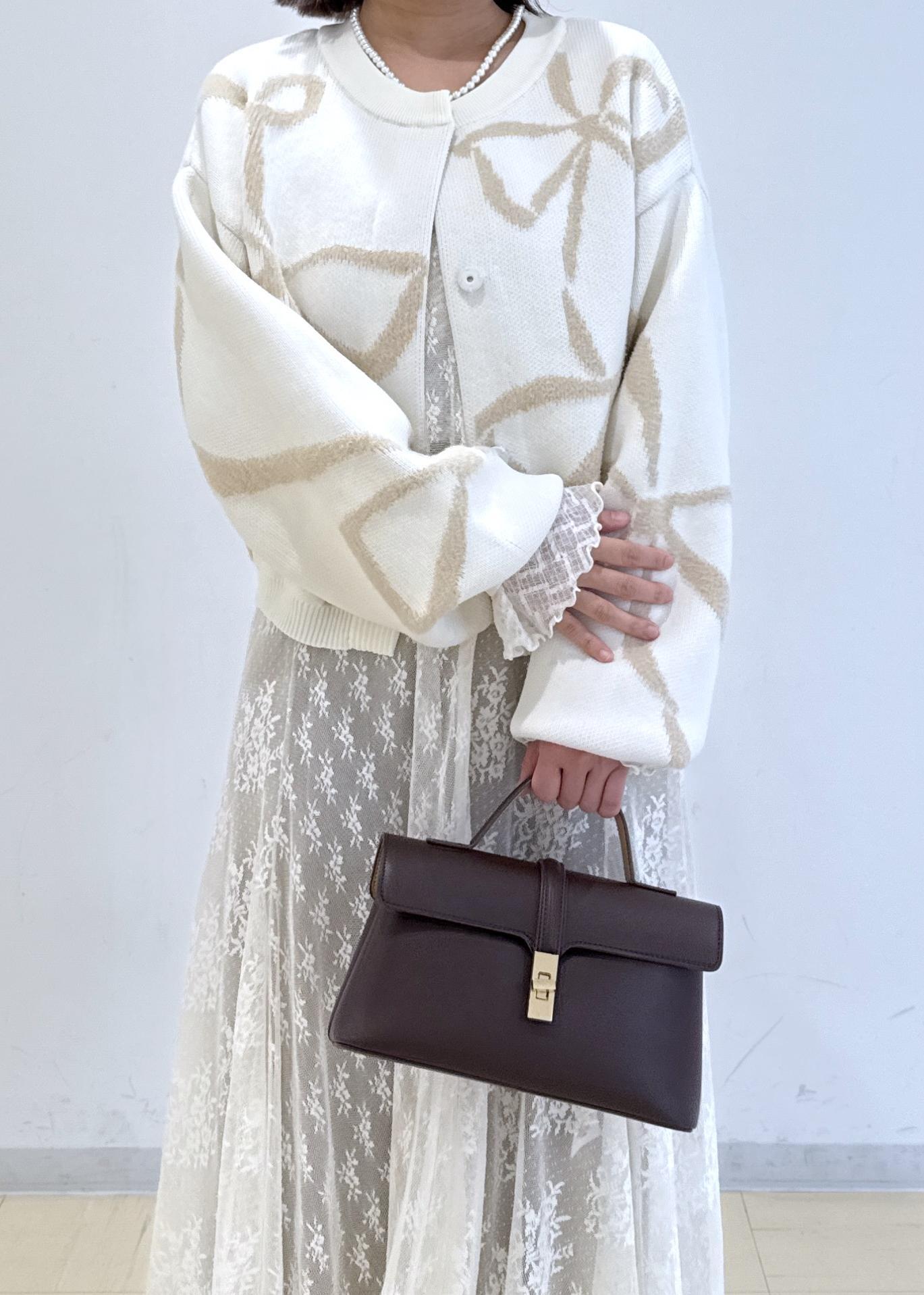 VISリボンモチーフジャガードカーディガン/イージーケアキナリ / F¥6,919レビュータポっとしたシルエットが可愛いカーディガンです!