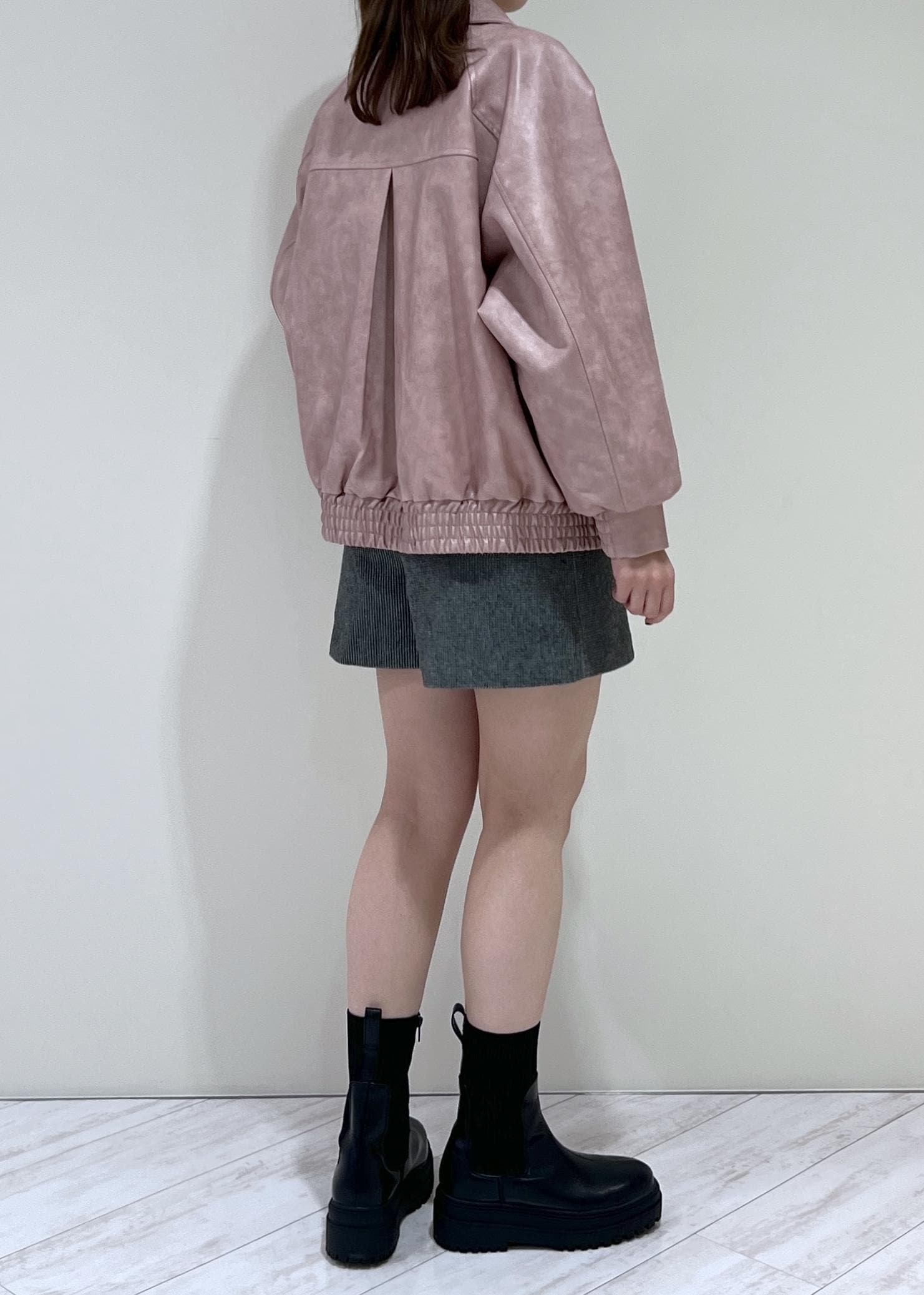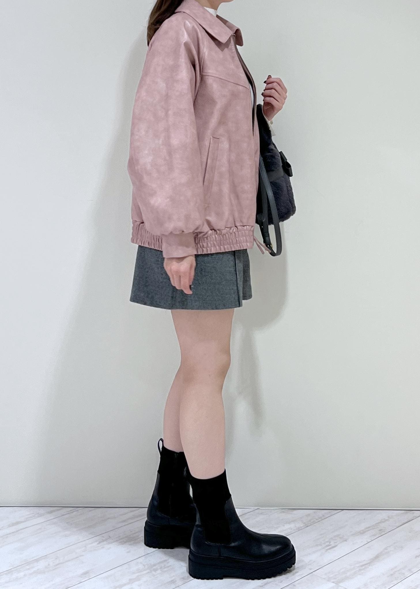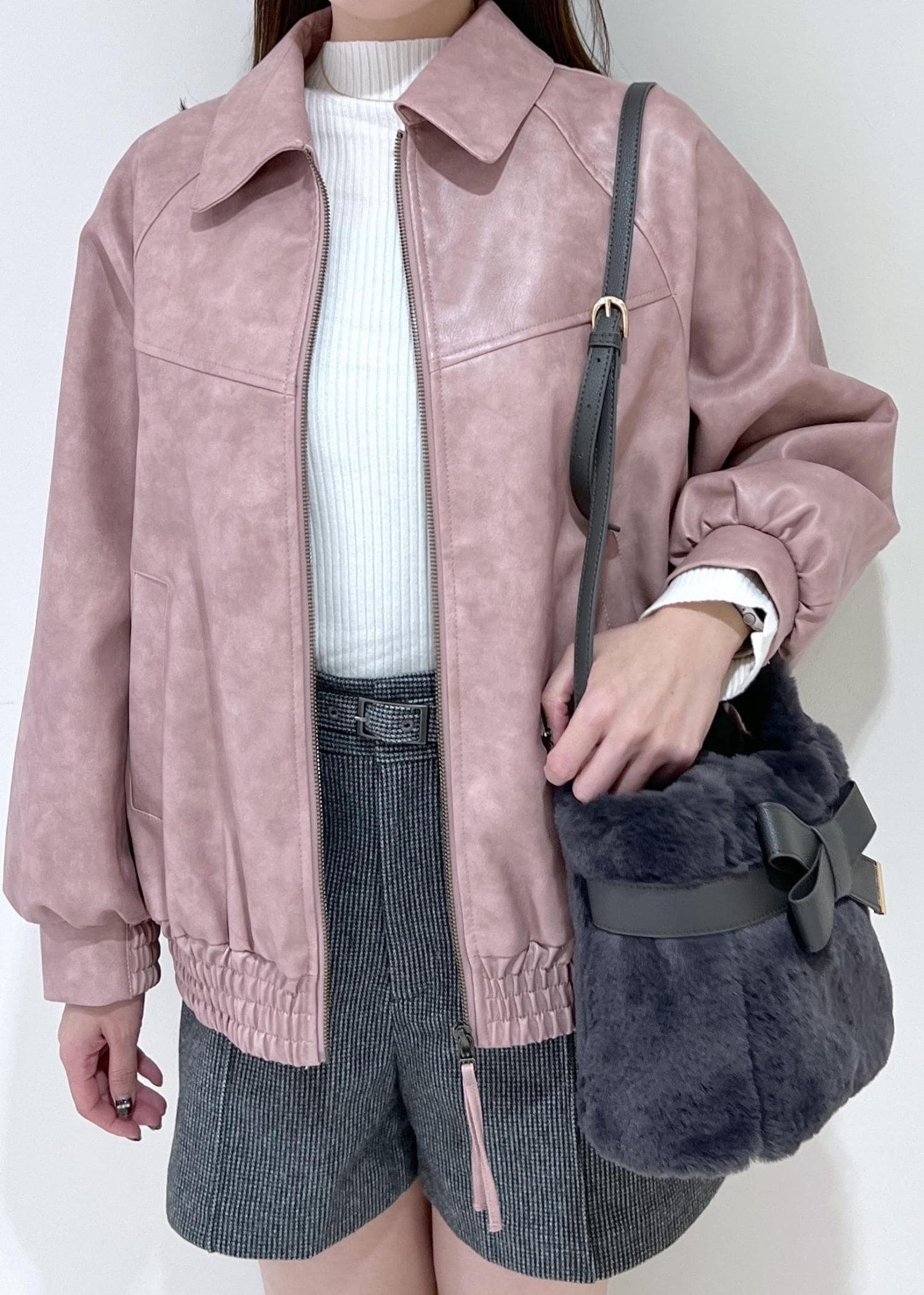 VIS合皮&スエードライクジップアップブルゾンピンク系 / F¥10,989レビュー程よくゆったりめのサイズ感なので厚手のトップスの上からも羽織りやすいです◎おしりが隠れる着丈でした!