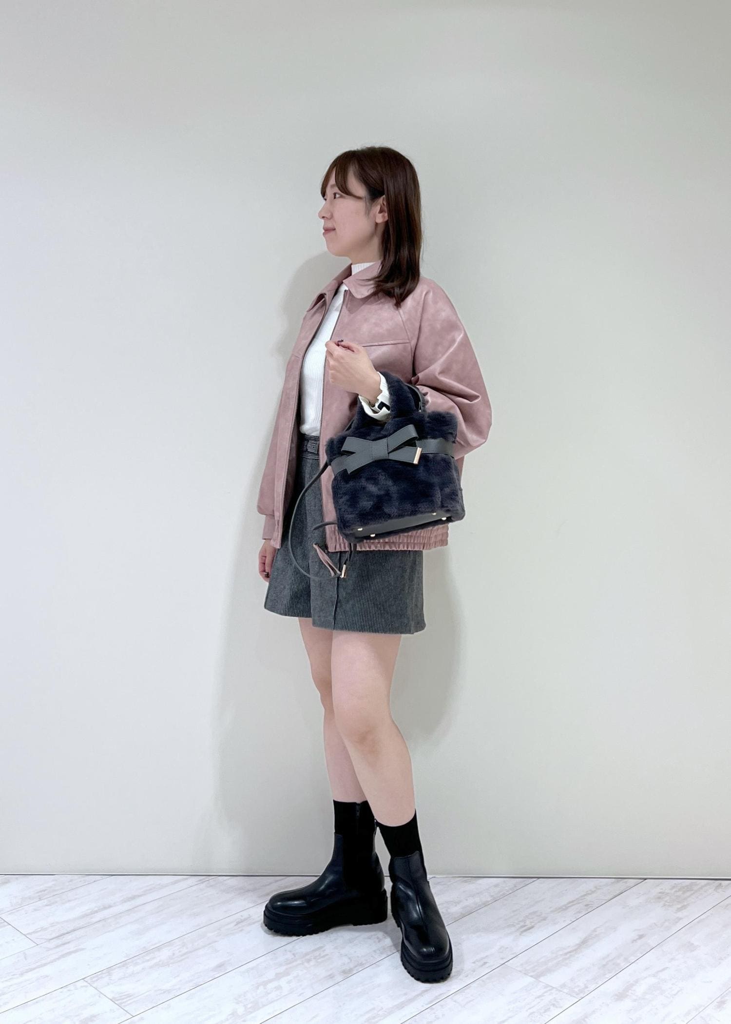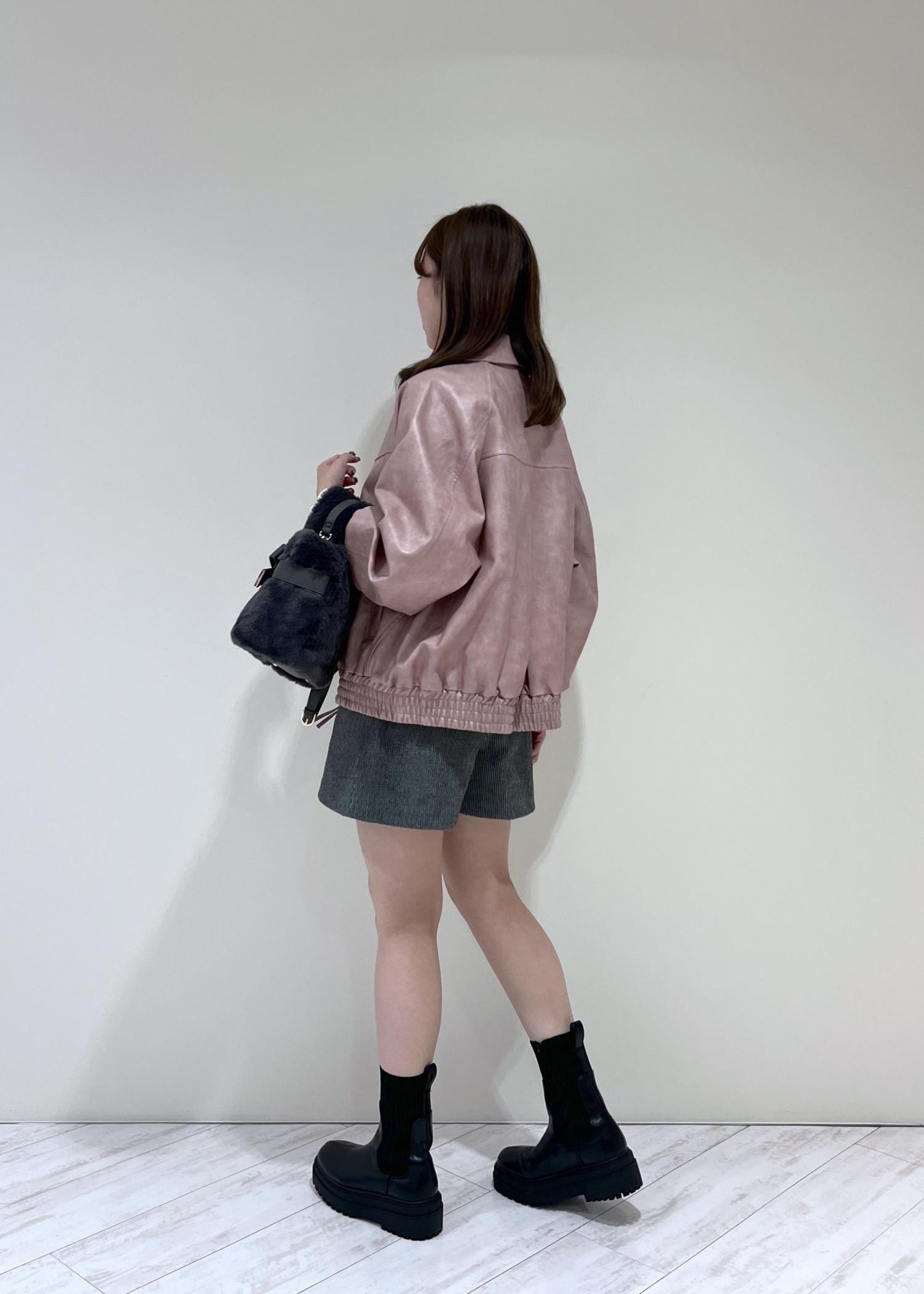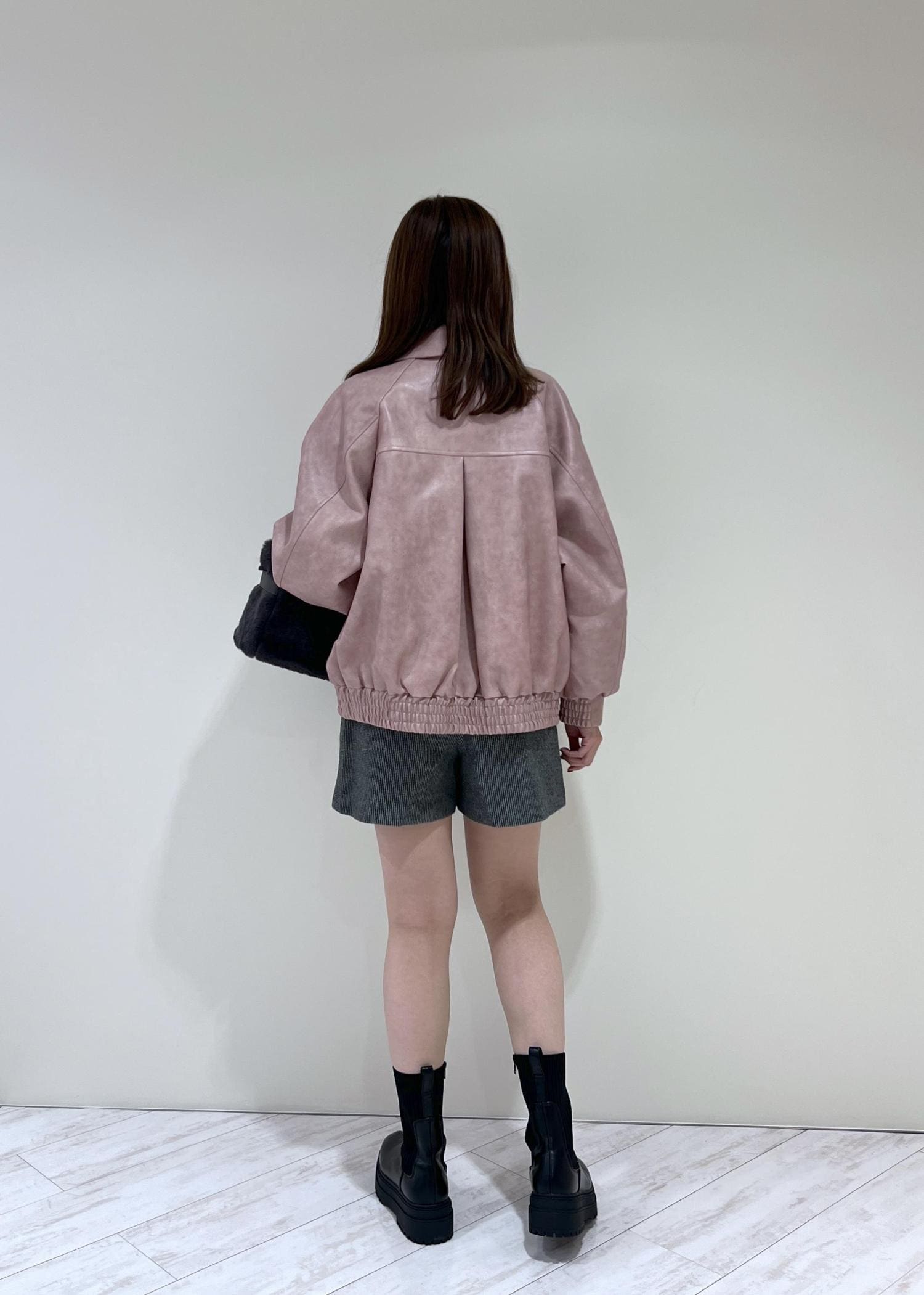 VIS合皮&スエードライクジップアップブルゾンピンク系 / F¥10,989レビュー程よくゆったりめのサイズ感なので厚手のトップスの上からも羽織りやすいです◎おしりが隠れる着丈でした!