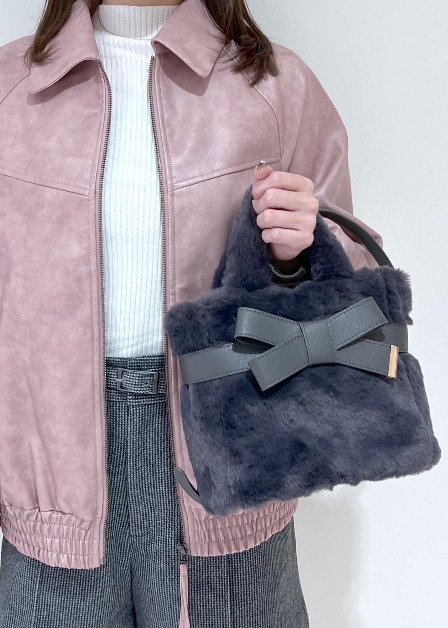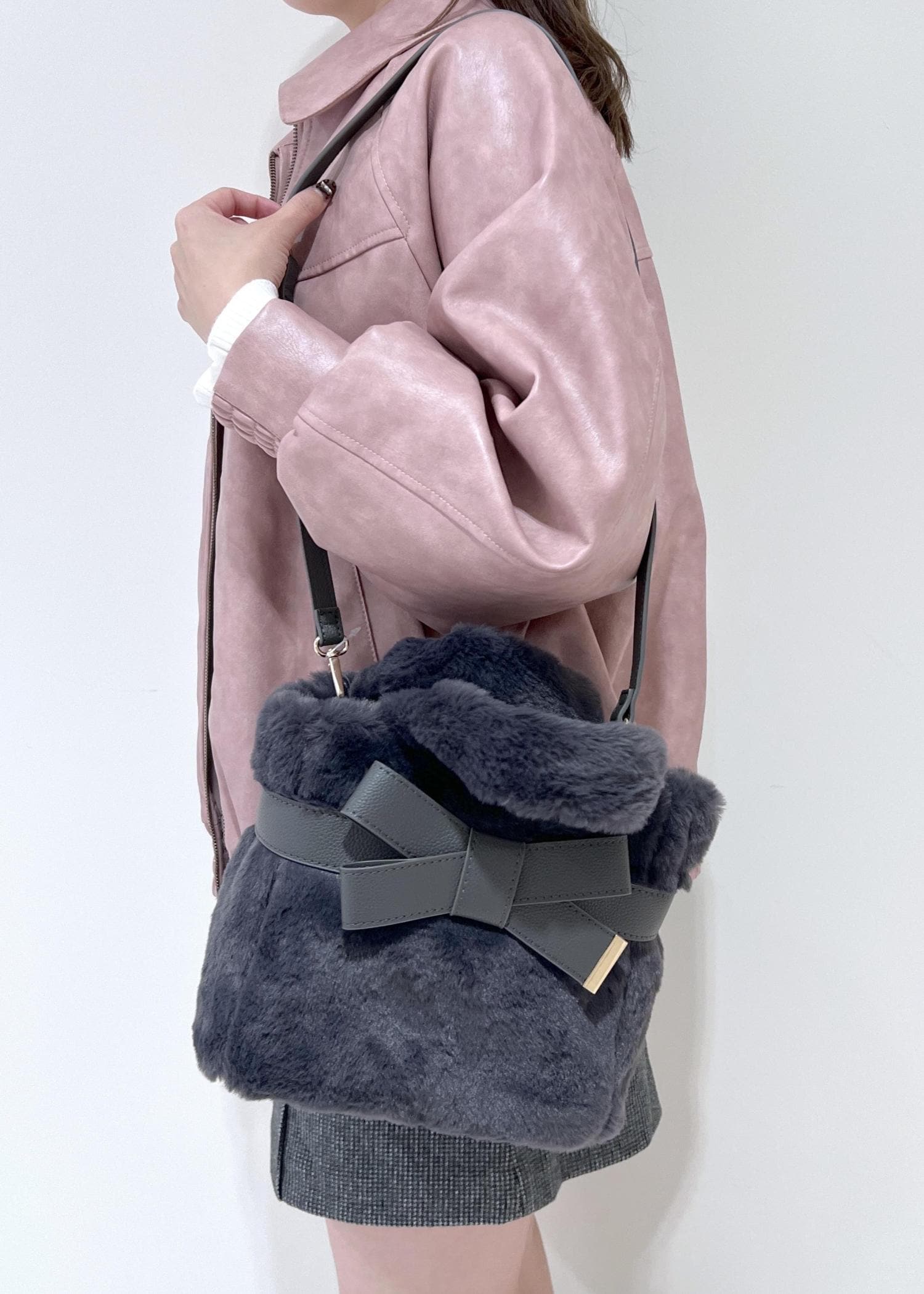 VIS【2WAY】ファーリボントートバッグチャコール / F¥6,919レビュー大きめのリボンがポイントになるバッグです!ショルダーは取り外し可能です◎