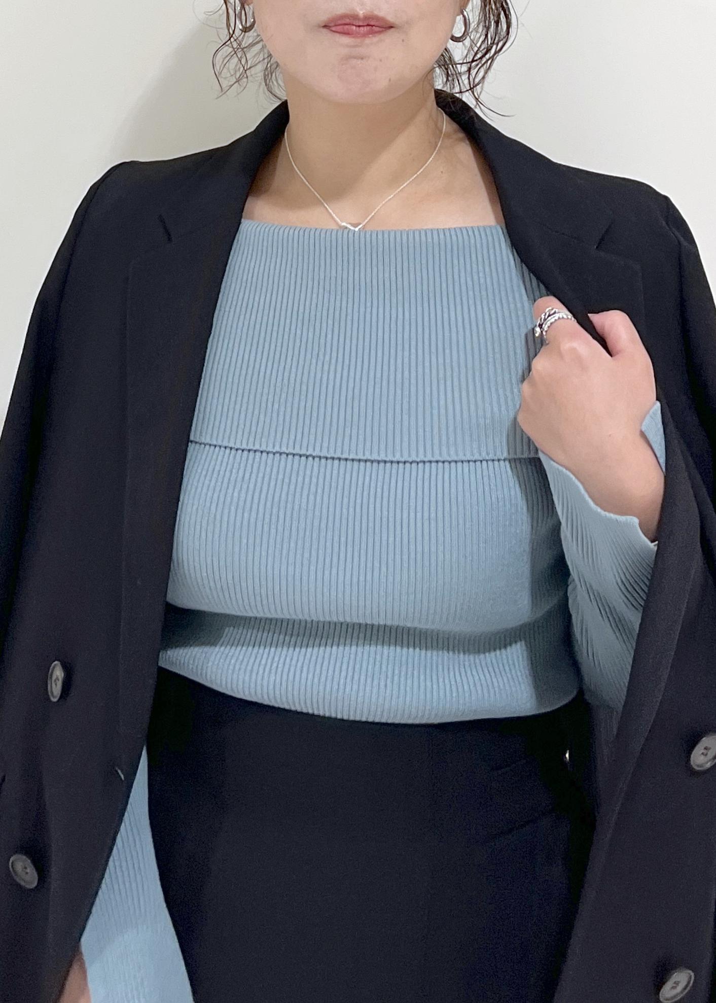 オフショルニットですが、肩のデザインにマチが付いているのでズレ落ちることなく安心して着用てわきます。