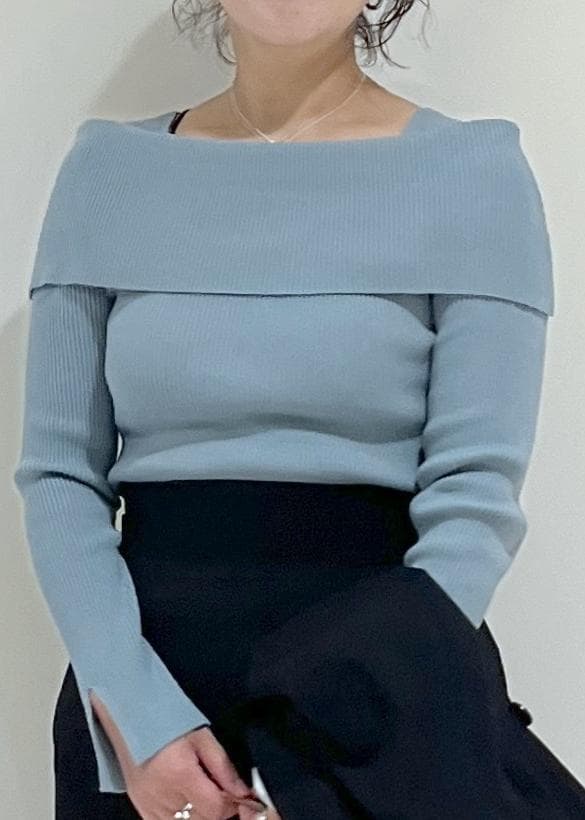 NEW!VIS【美得】オフショルダーモチモチリブニット/好評につき再入荷グリーン系 / F¥5,489レビューシアバター配合でモチモチして着心地の良いニットです。