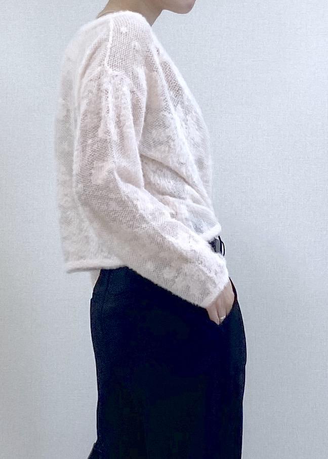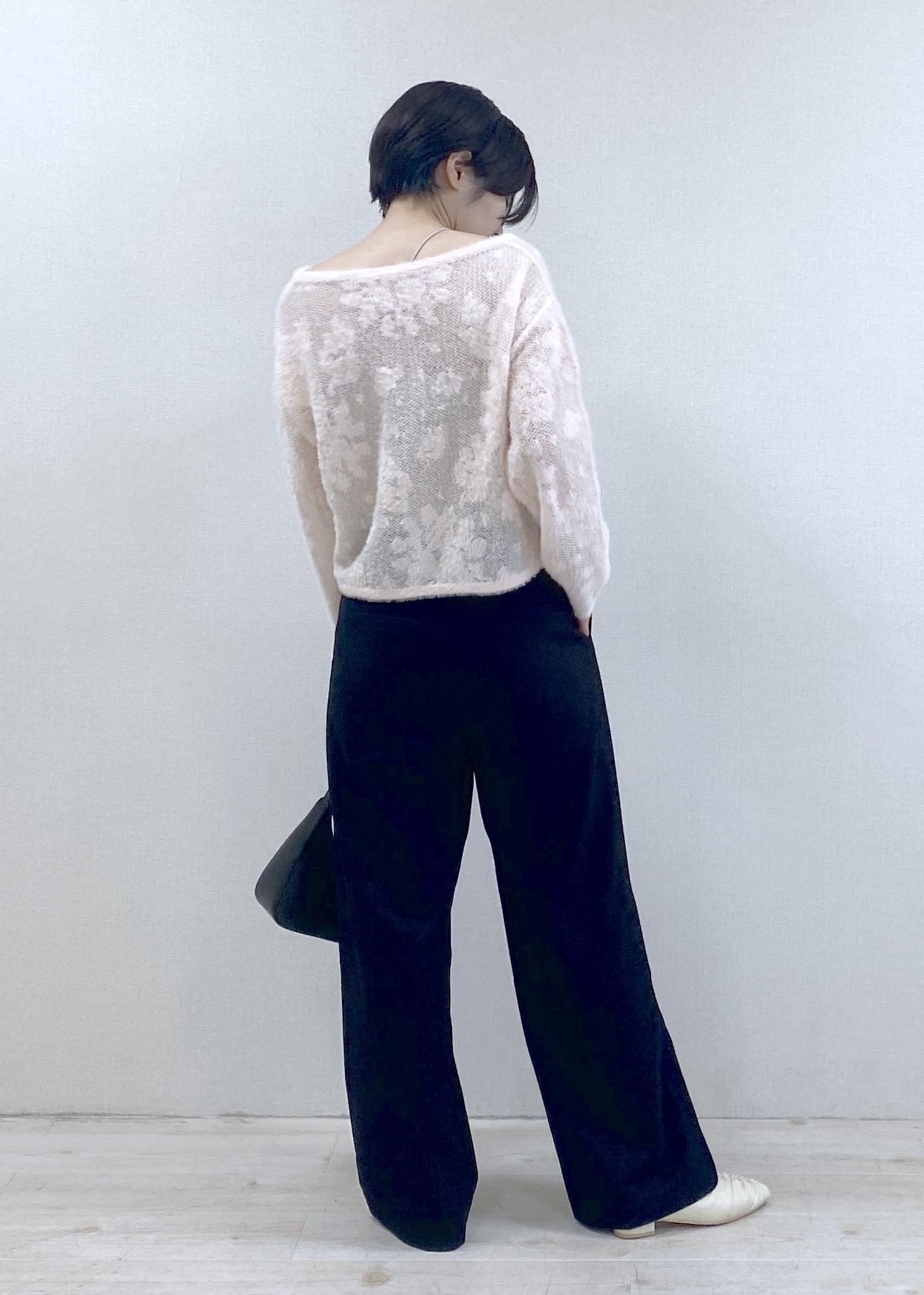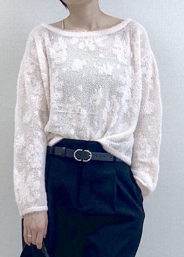 VISフラワーモチーフフェザーシアーニットピンク / F¥3,842レビューふわっと柔らかく肌触りがとてもいいニットです。