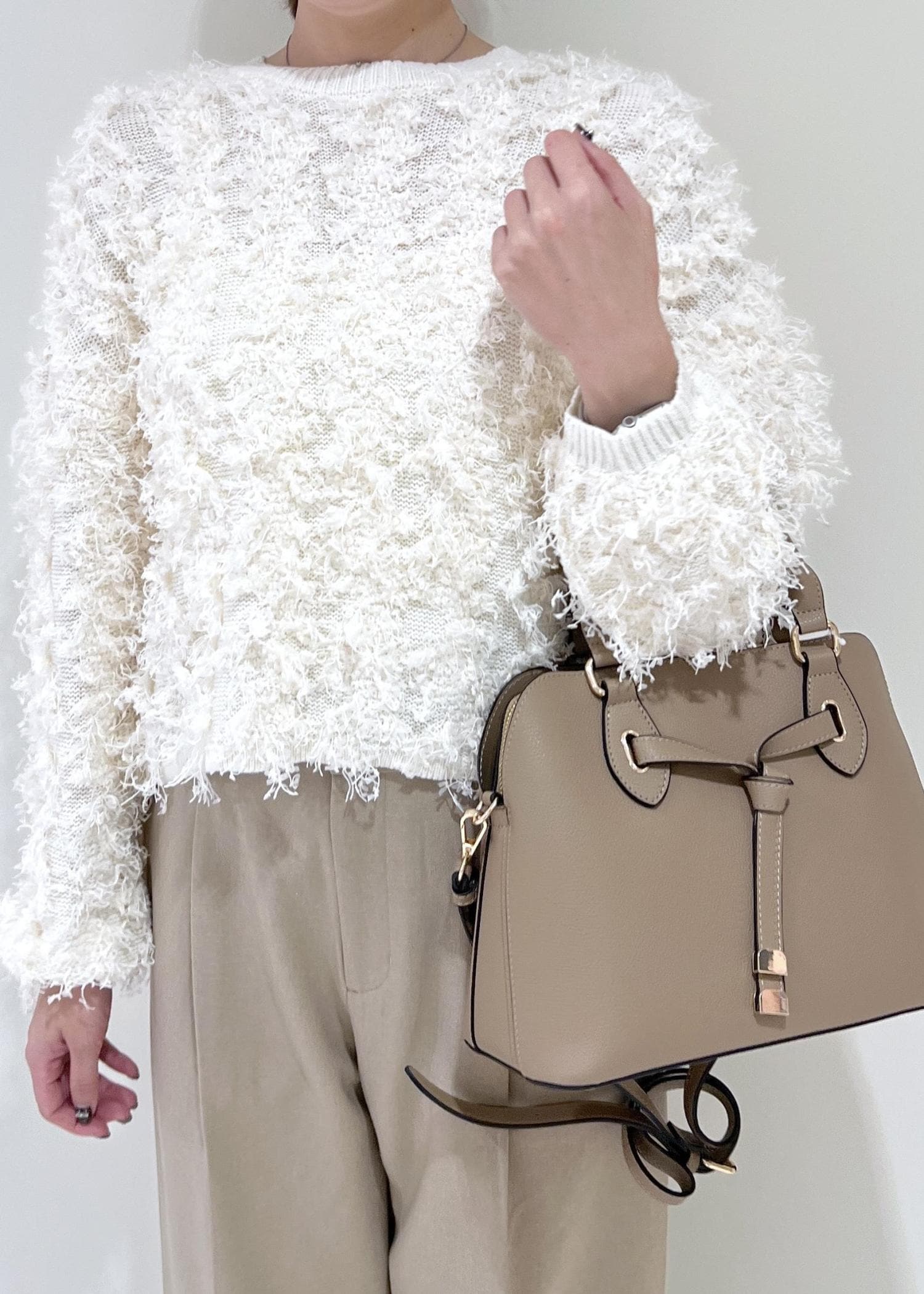 VISリボンヤーンフリンジニットプルオーバーオフホワイト / F¥6,589