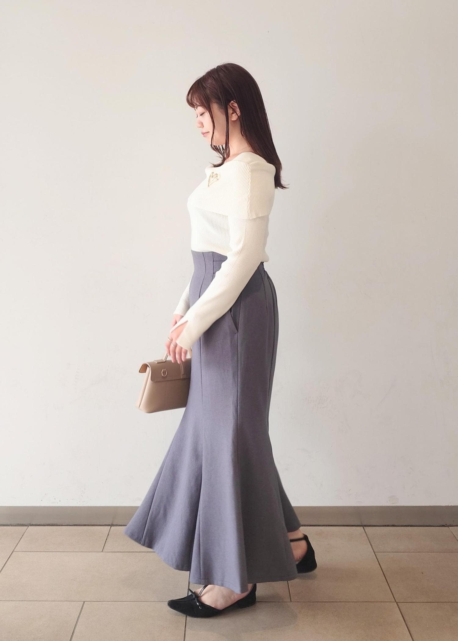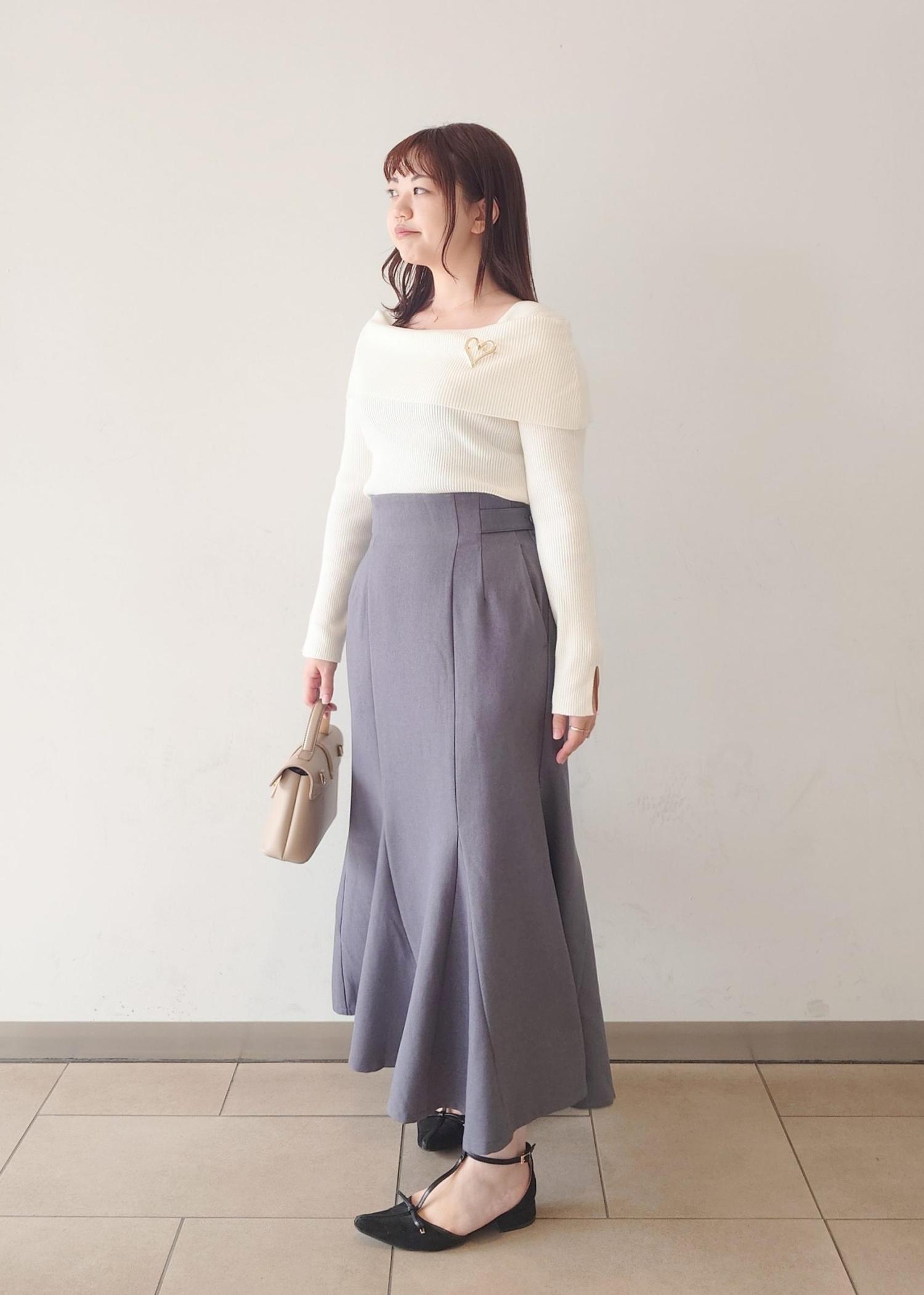 美easyウーリッシュスカートの新色グレーを使ったスタイル。
