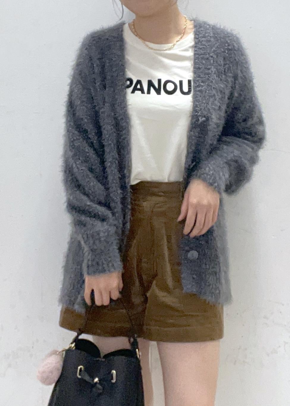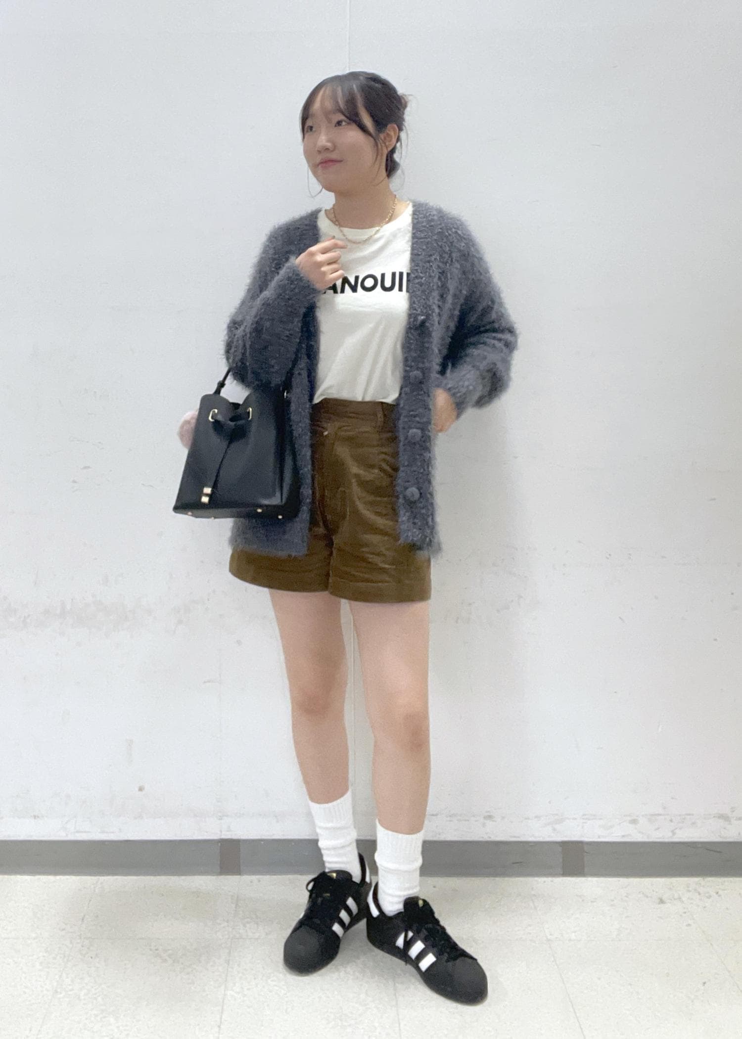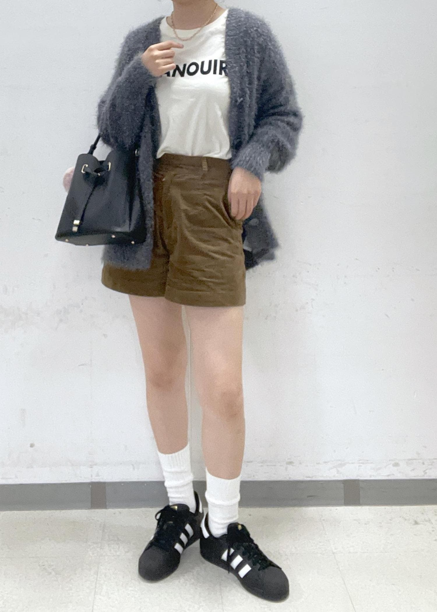 ポコポコのデザインが可愛いカーディガンで大人カジュアルコーデを組んでみました♡
