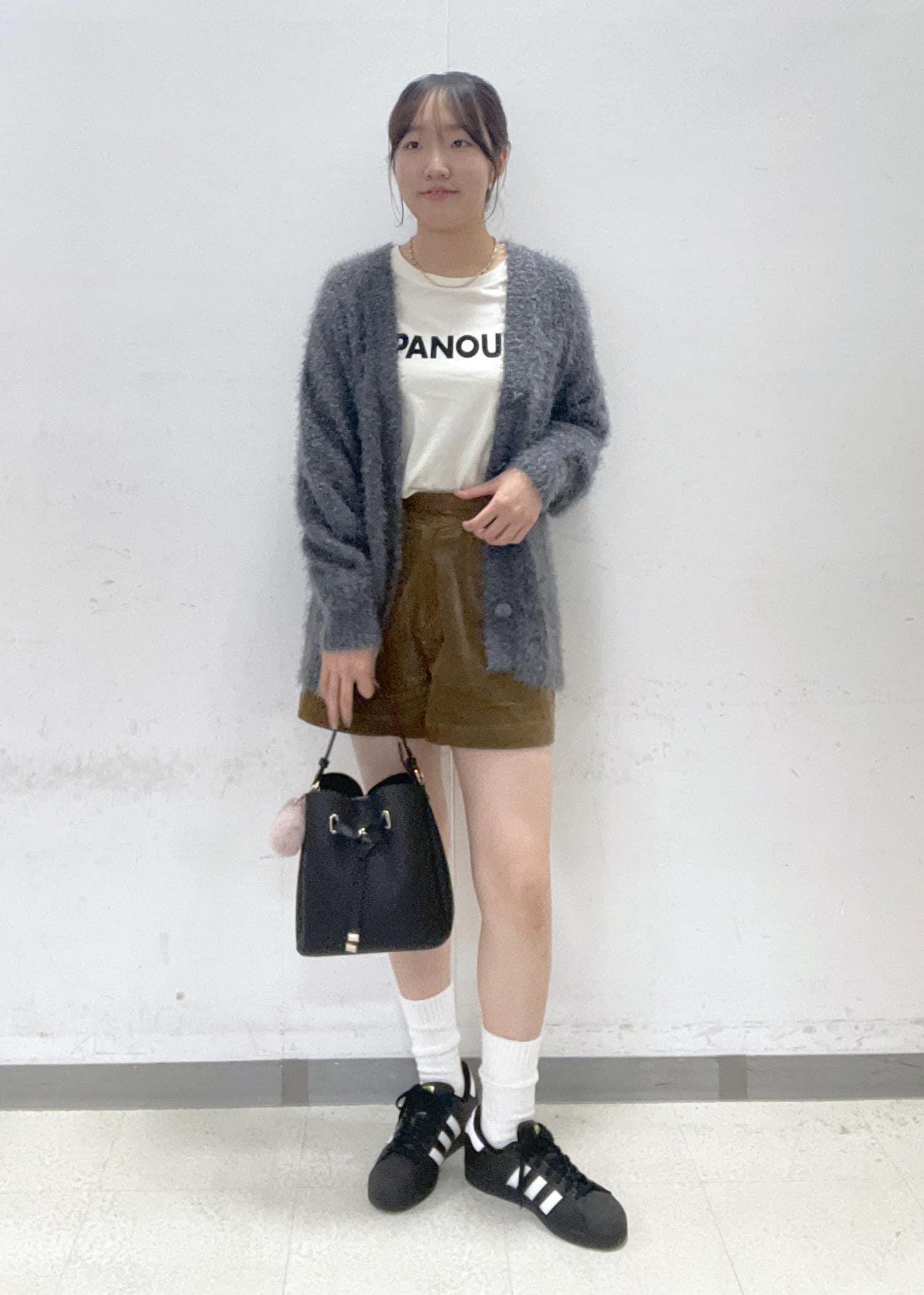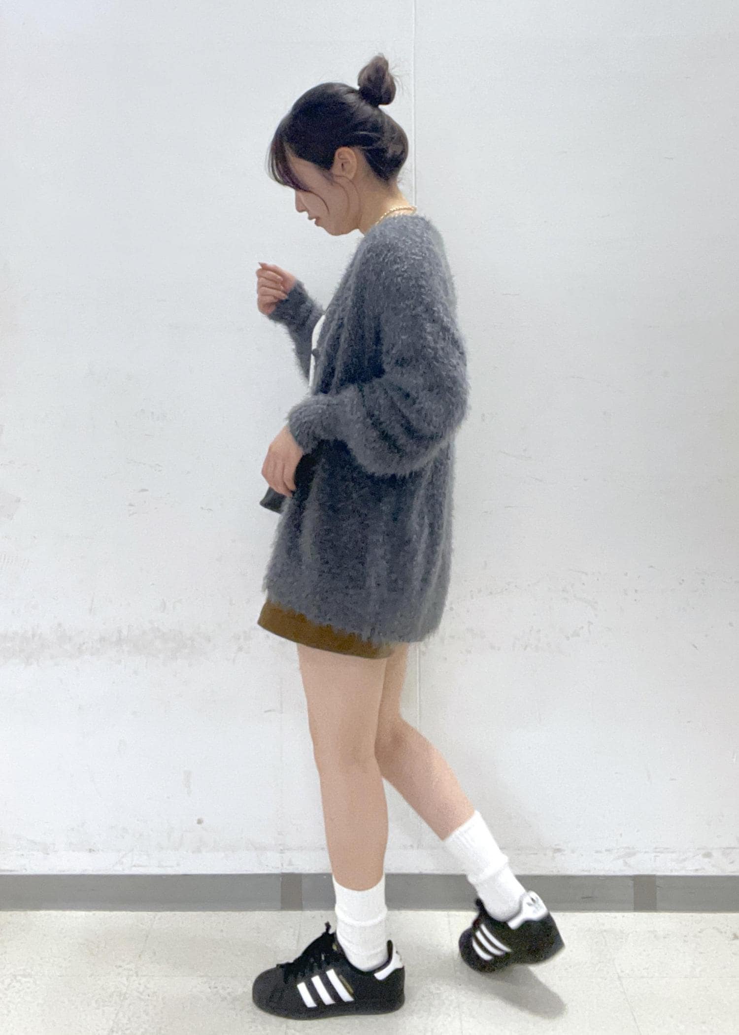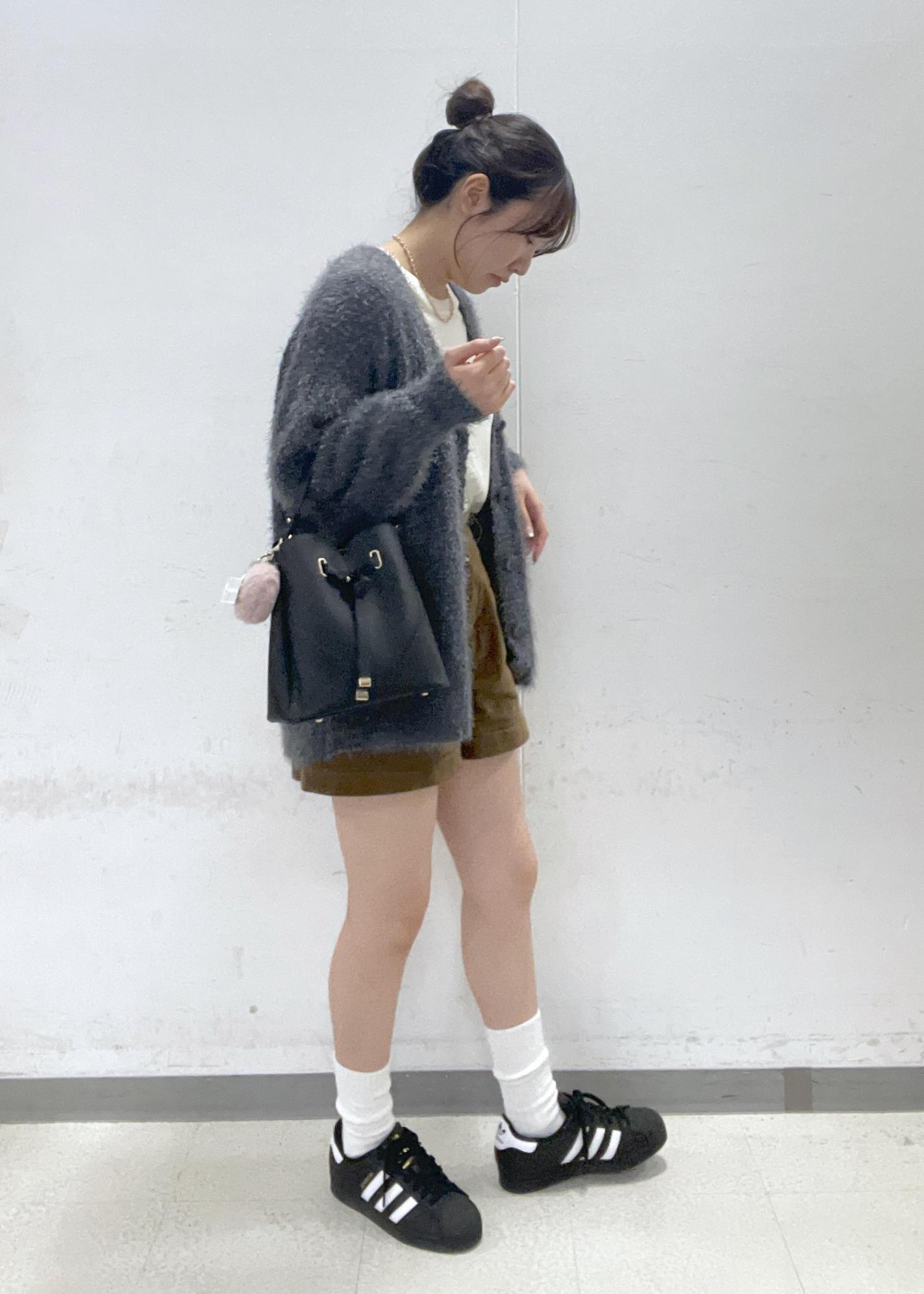 ポコポコのデザインが可愛いカーディガンで大人カジュアルコーデを組んでみました♡