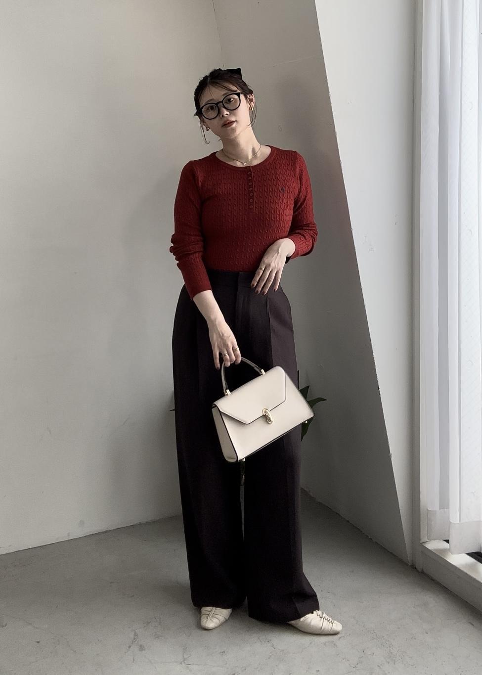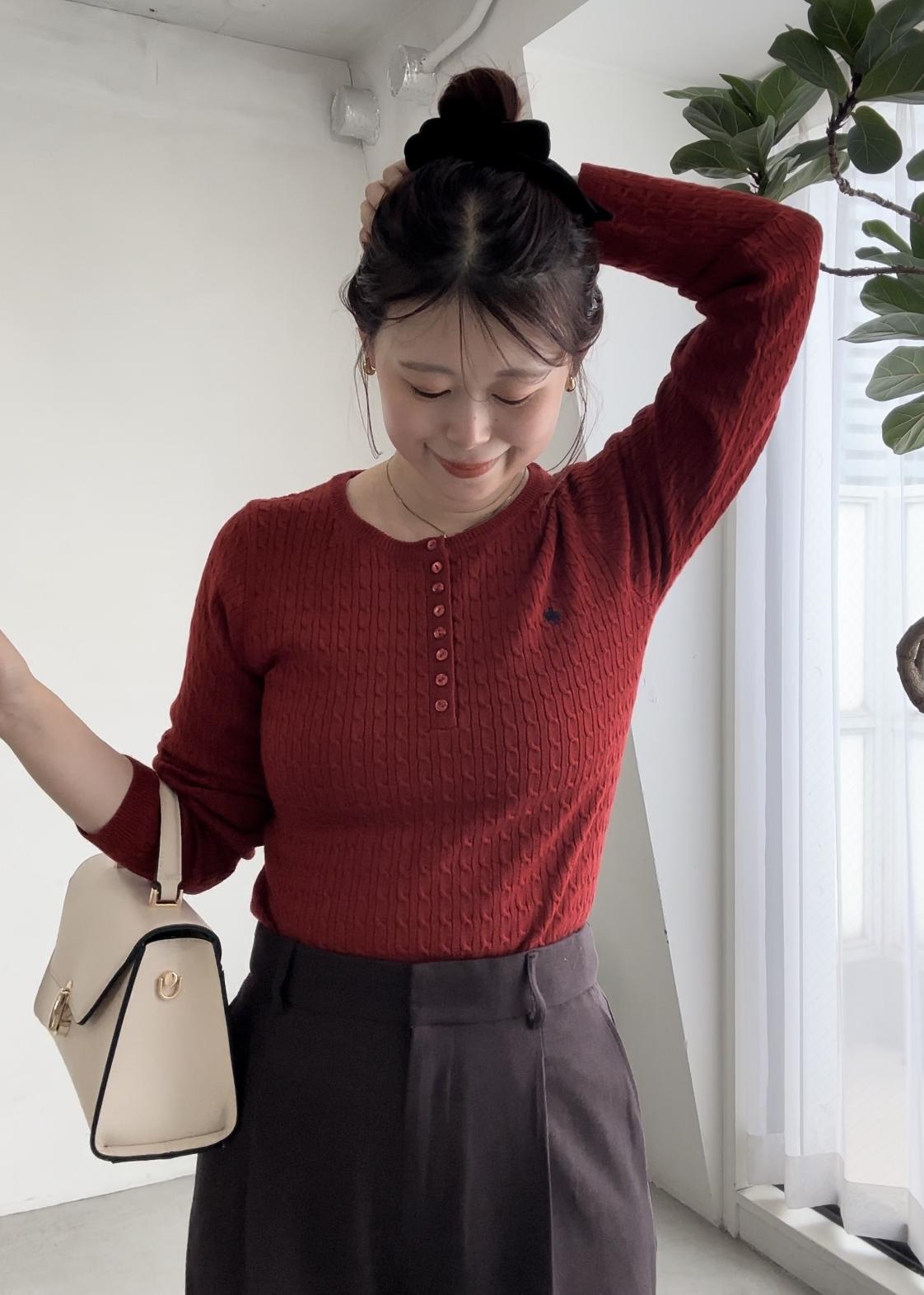 VIS【POLO BCS】VIS別注ヘンリーネックミニケーブルニットトップスレッド系 / F¥6,600レビュー全体のシルエットはフィット感もあり、ジャケットやアウターのインナー使いでも着用できるくらいのサイズ感です。