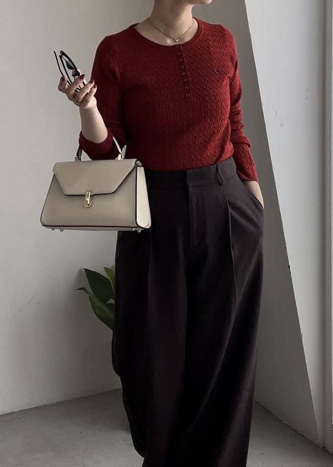 赤ニットに注目!秋こっくりカラーコーデ