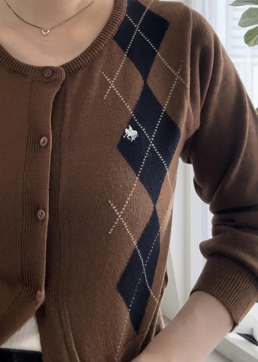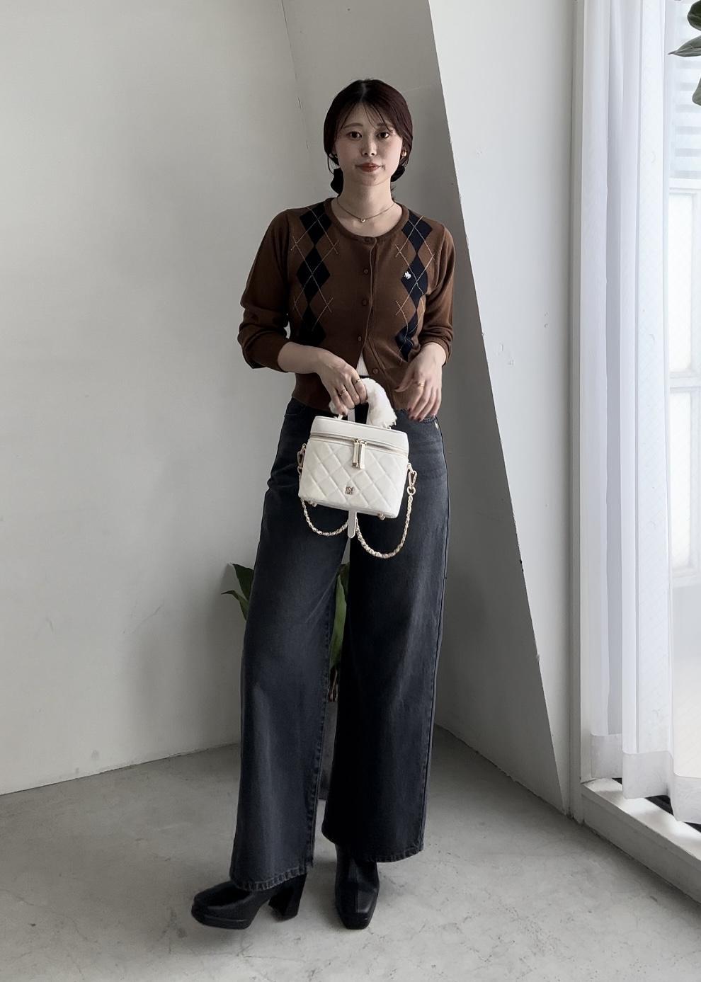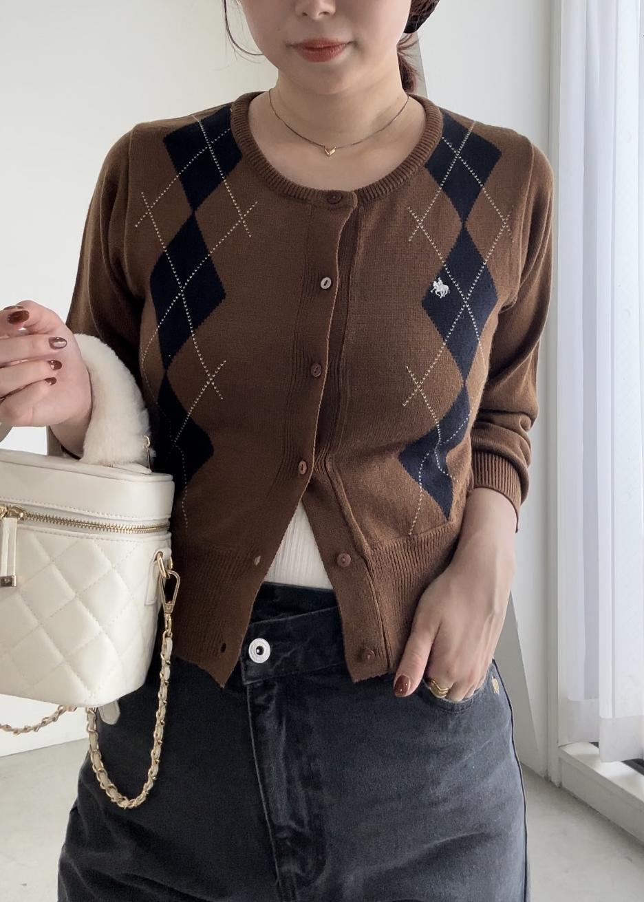 POLOのカーディガンはアーガイル柄のブラウンに、デニムを合わせ、ヒールブーツで大人っぽさもプラスしたカジュアルコーデにしてみました!