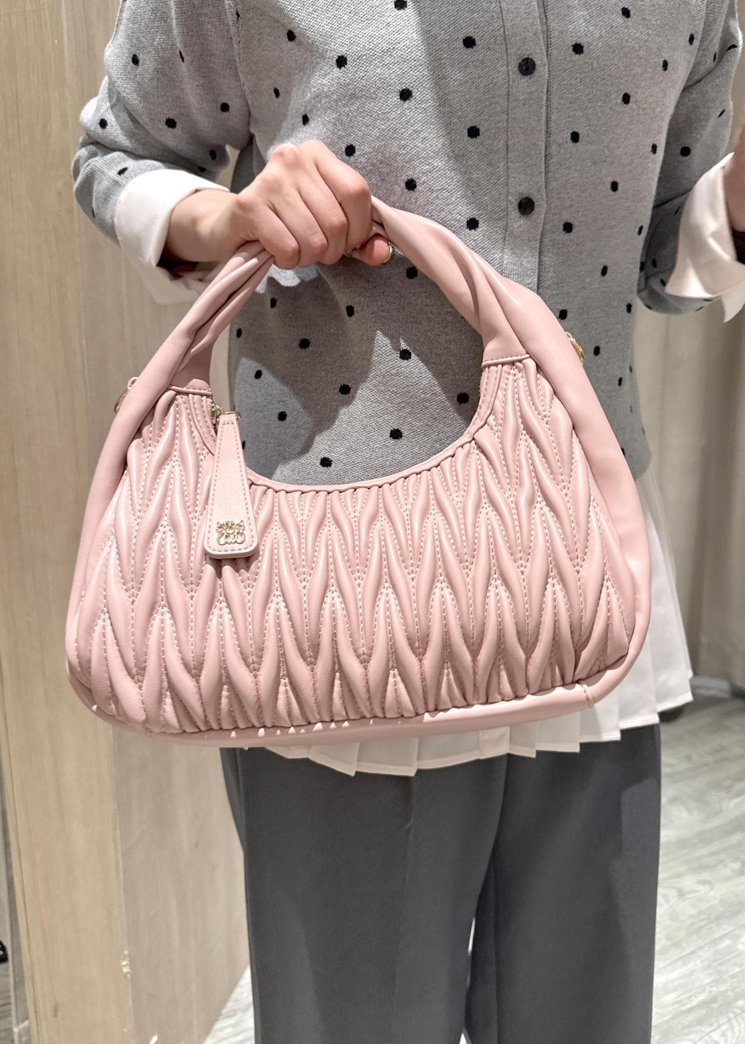 VIS【2WAY】ねじりハンドルキルティングバッグピンク系 / F¥7,909レビュー500mlのペットボトルや長財布も収納できるサイズ感です!キルティング&ロゴ金具で上品で大人な印象にしてくれます!