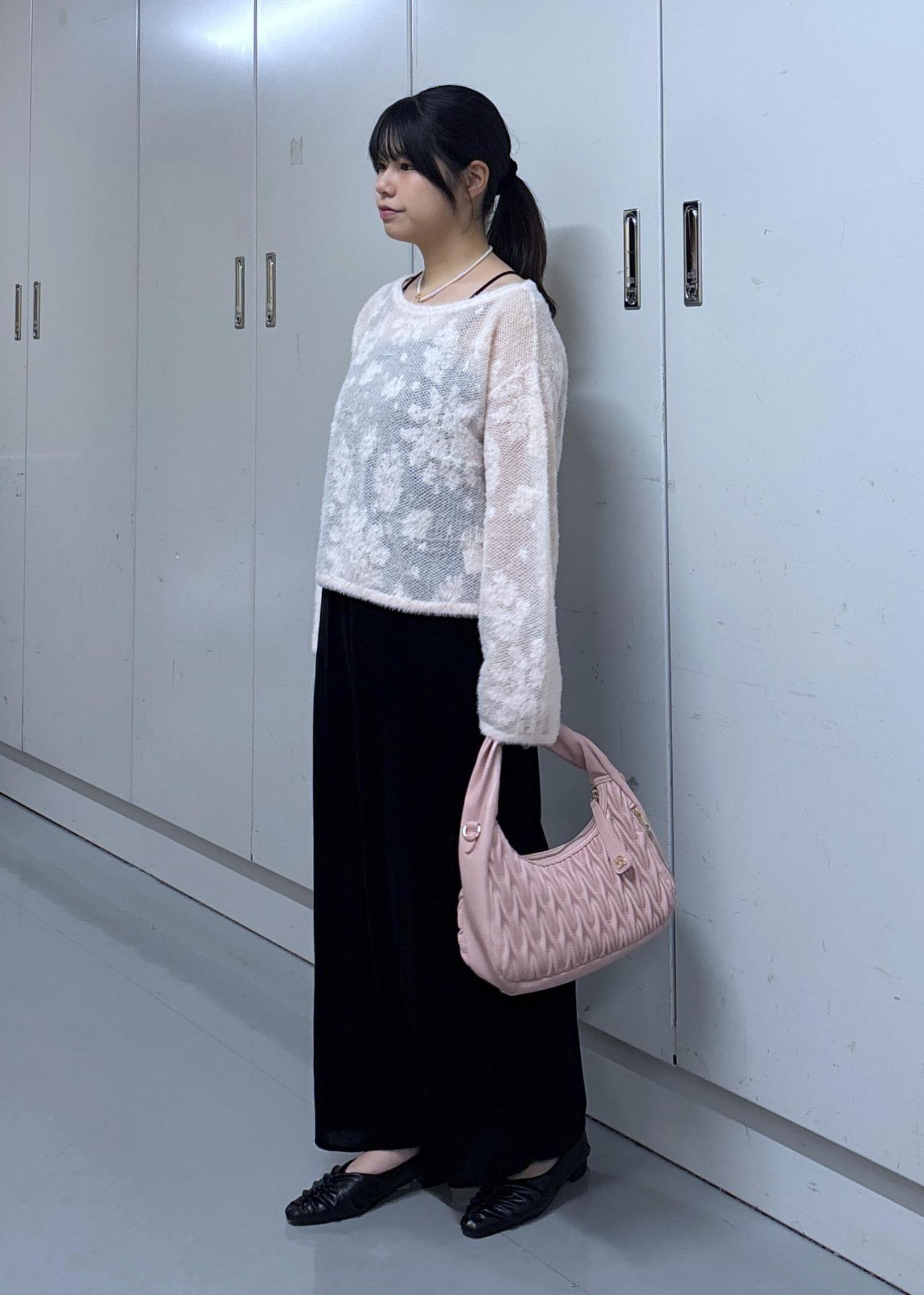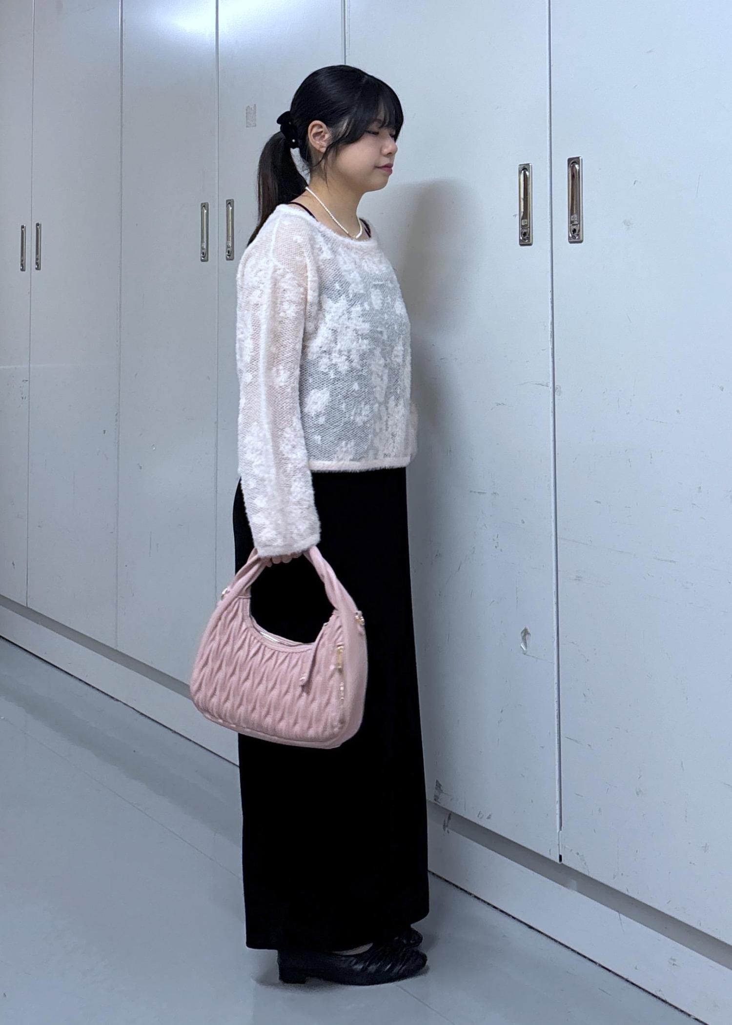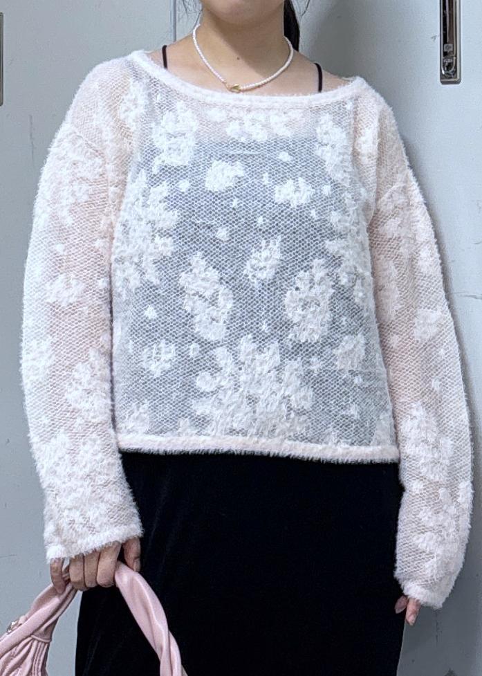 VISフラワーモチーフフェザーシアーニットピンク / F¥3,842レビュー153cmで着丈は、腰上あたりです。