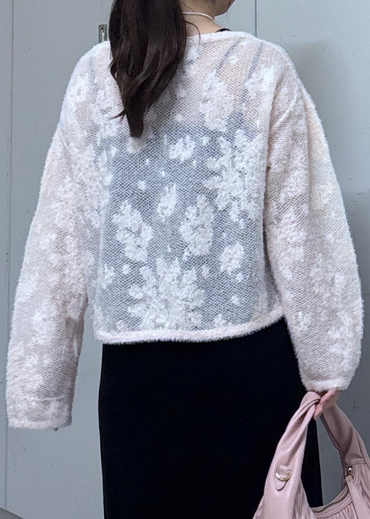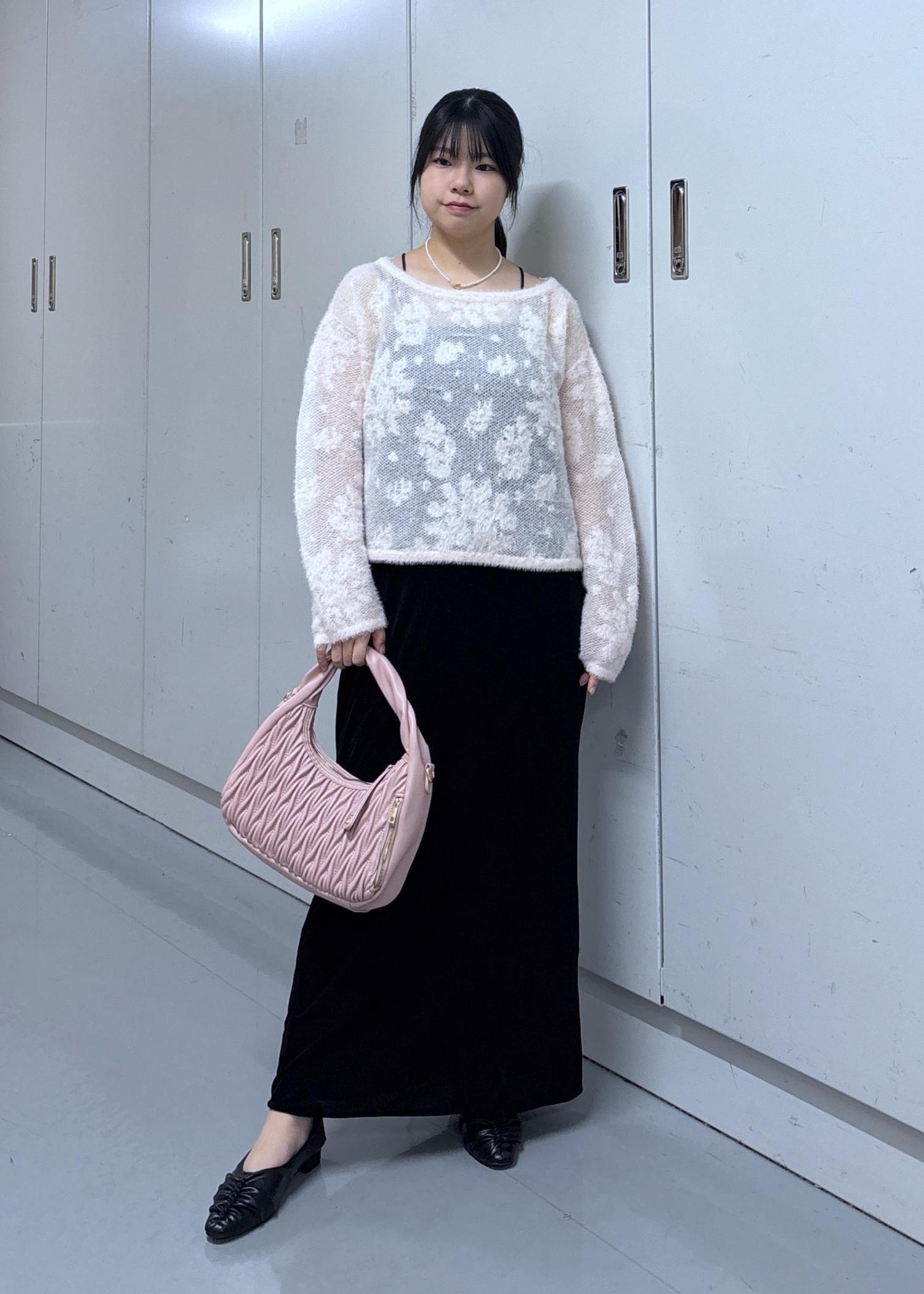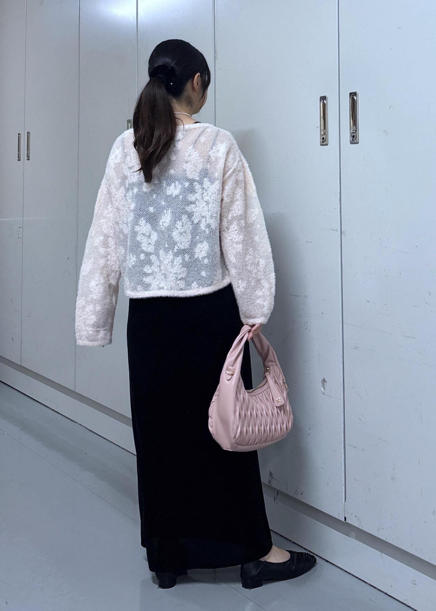 VISフラワーモチーフフェザーシアーニットピンク / F¥3,842レビュー153cmで着丈は、腰上あたりです。