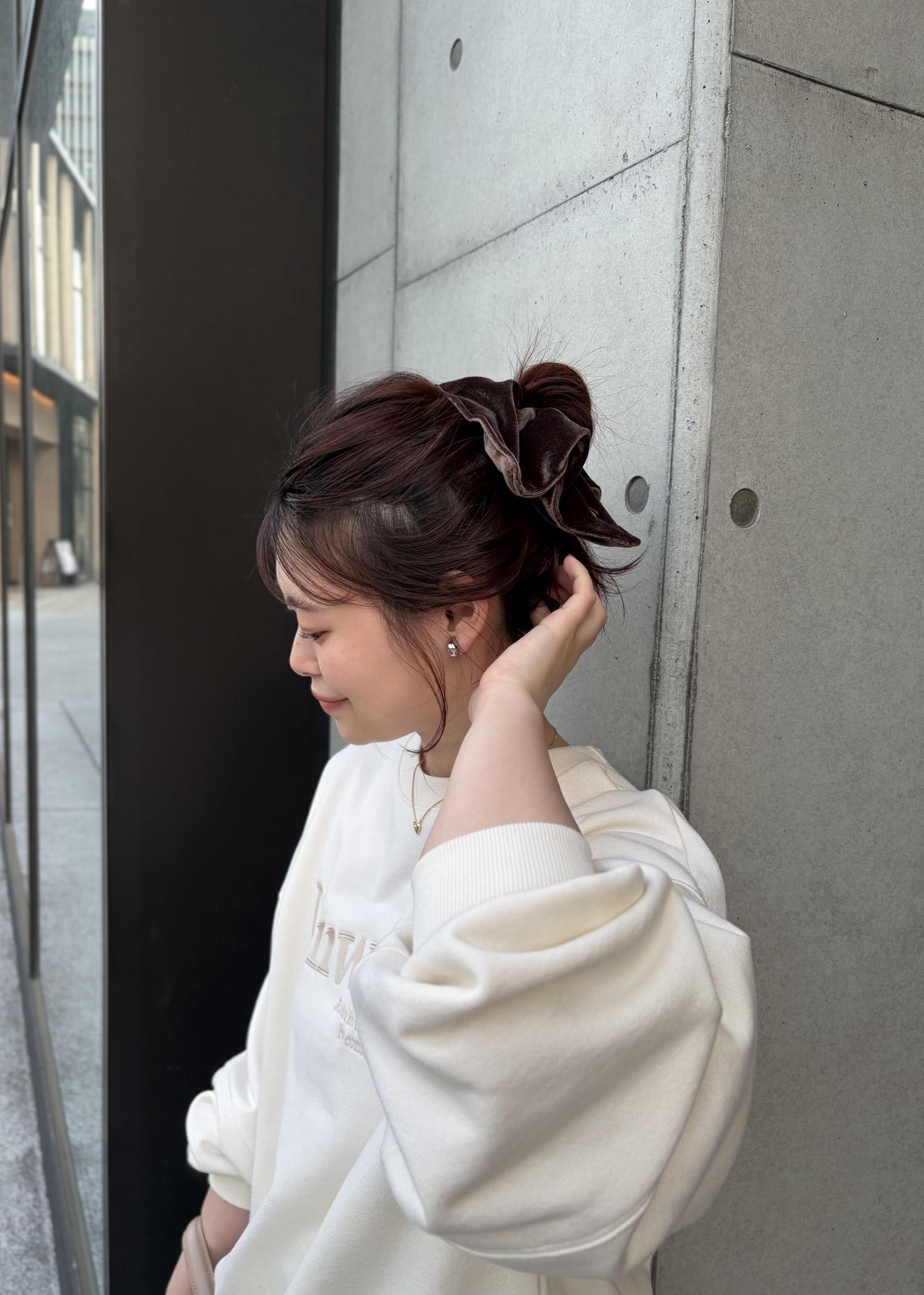 つやっぽくベロア素材なので腕につけてるだけの使用方法でもかわいいです◎