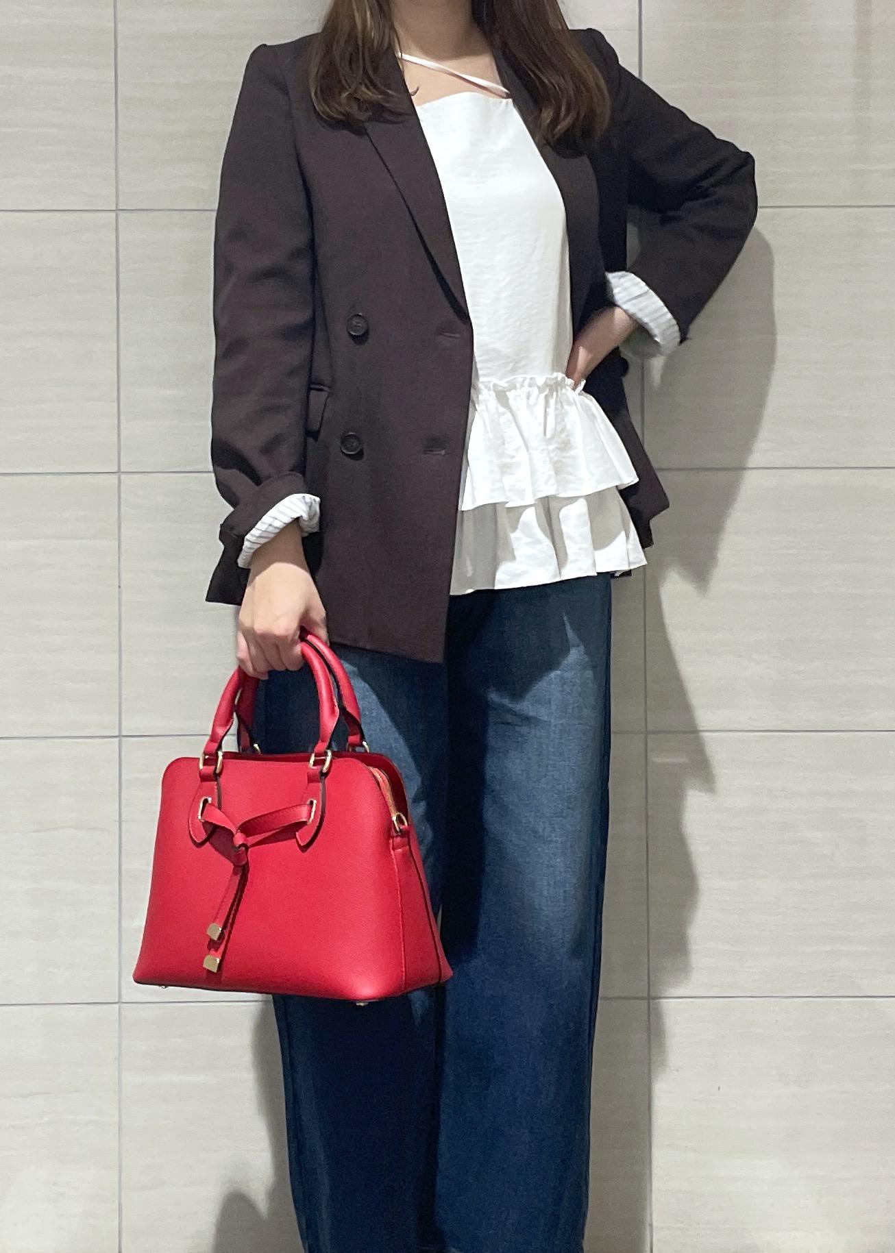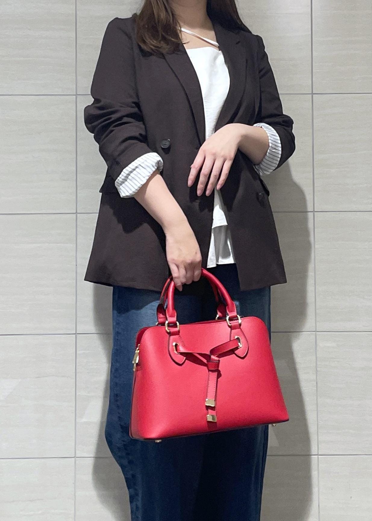 VISフロントタイ ブガッティ型ボストンバッグ/2WAYレッド / F¥7,909レビューフロントのリボンががかわいく高見えするバッグ♡