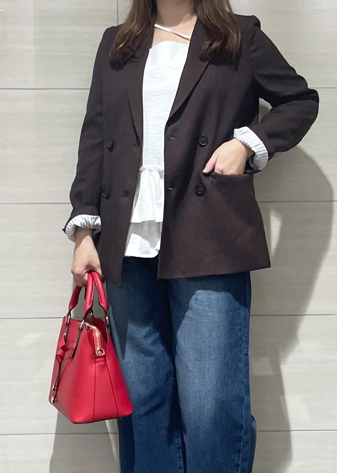 VIS【美easy】ウーリッシュダブルブレストテーラードジャケット【セットアップ対応/洗える】ダークブラウン / M¥8,899レビュー163cm Mサイズ着用でヒップがほとんど隠れる丈感です。