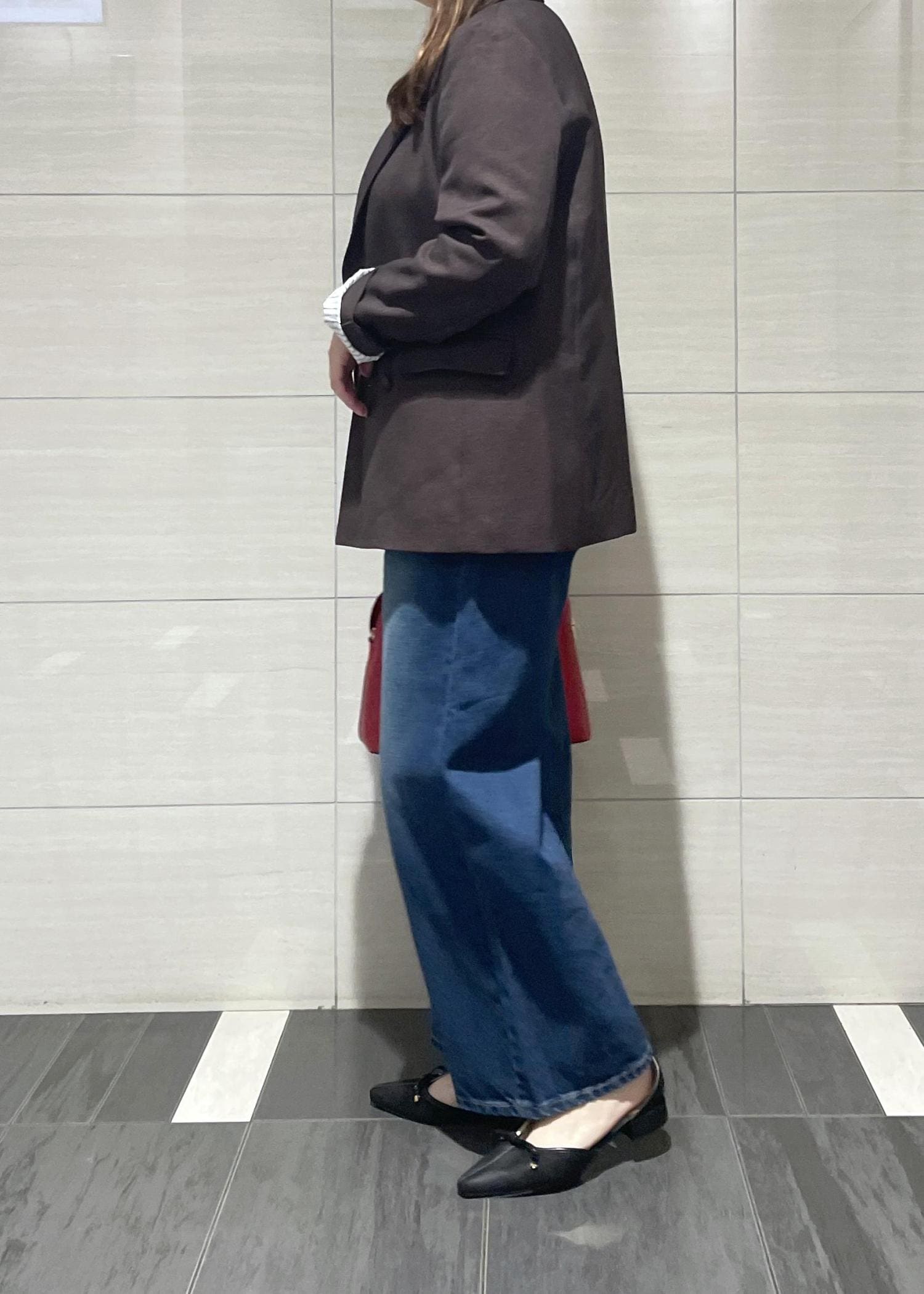 幅広ですが太すぎないシルエットで足のラインをカバーしながら綺麗に見せてくれます。 -
