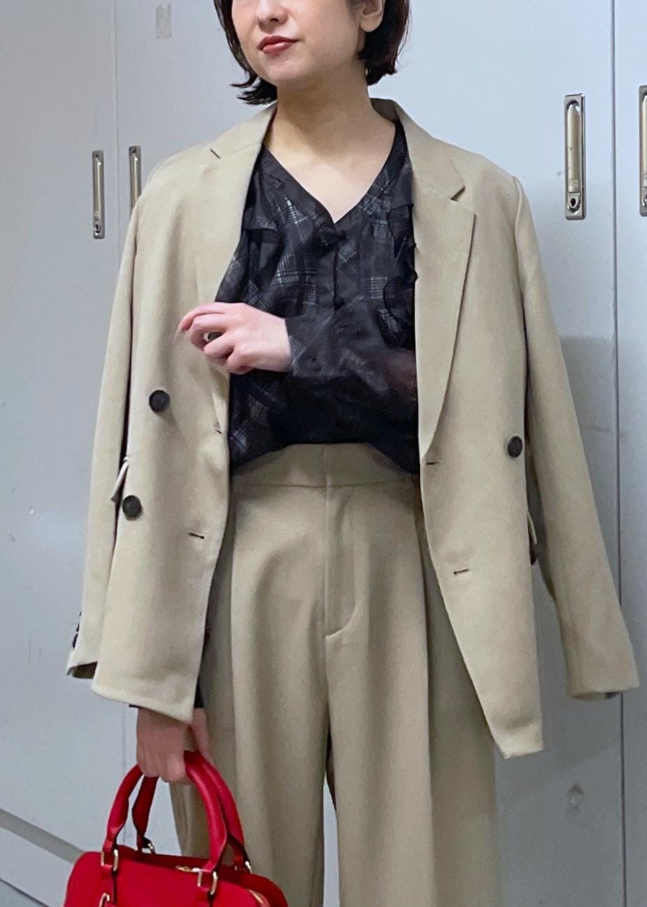 【美easy】ウーリッシュダブルブレストテーラードジャケット【セットアップ対応/洗える】