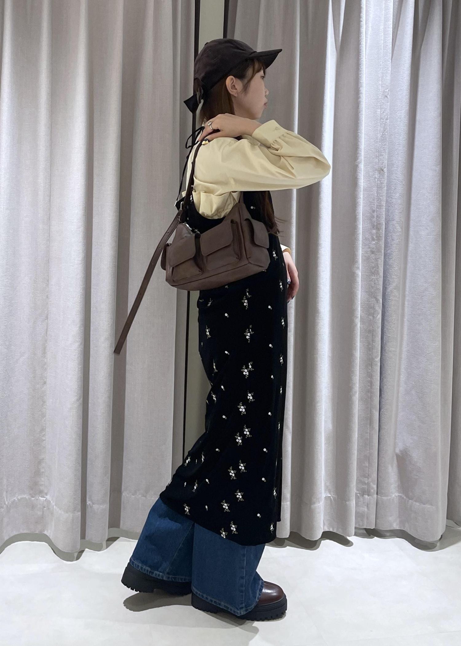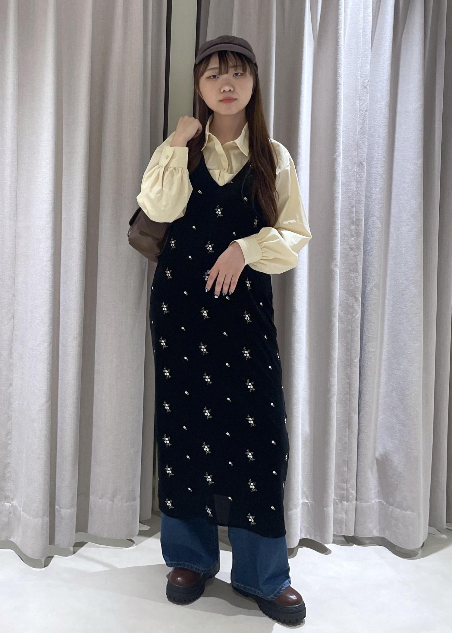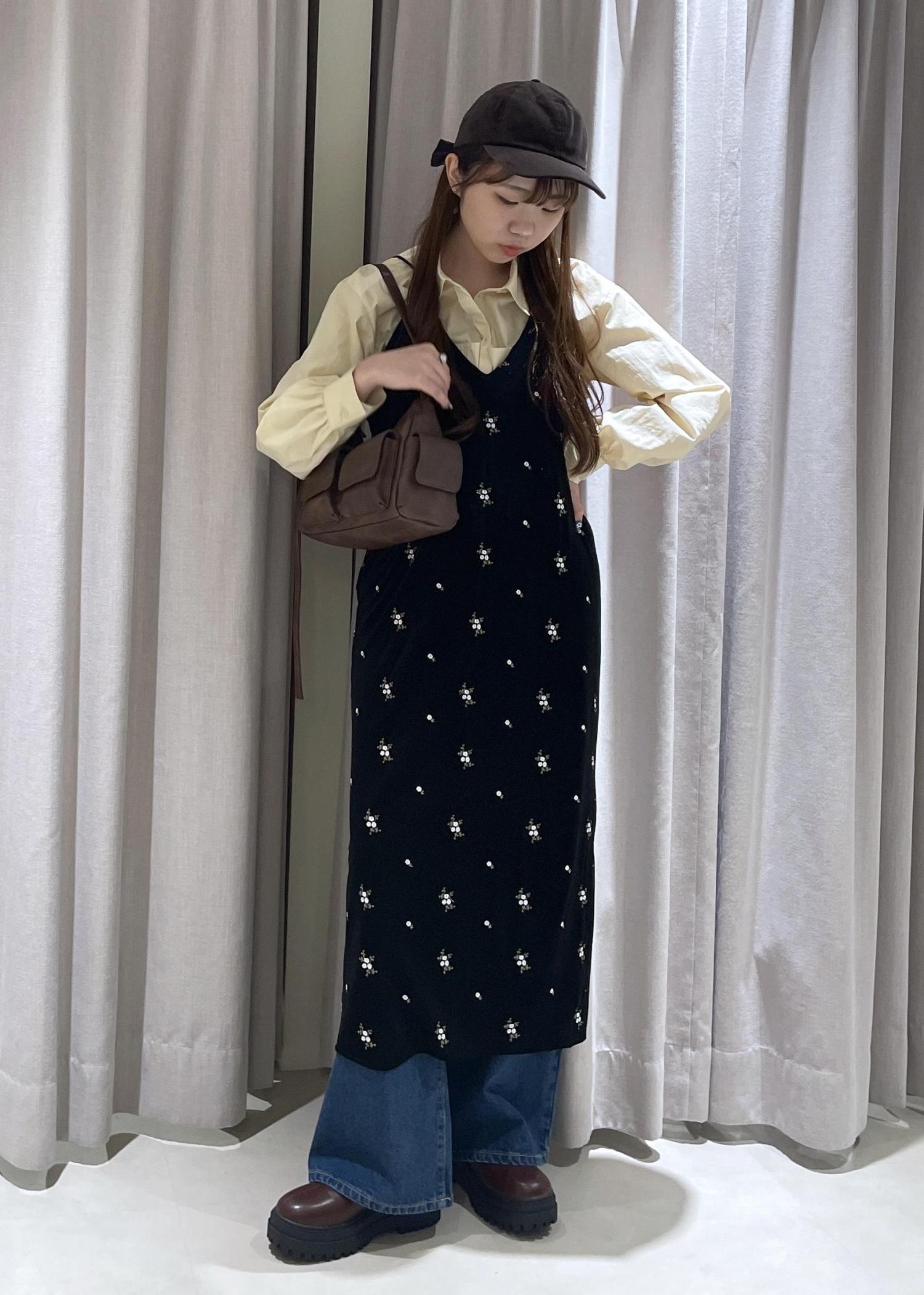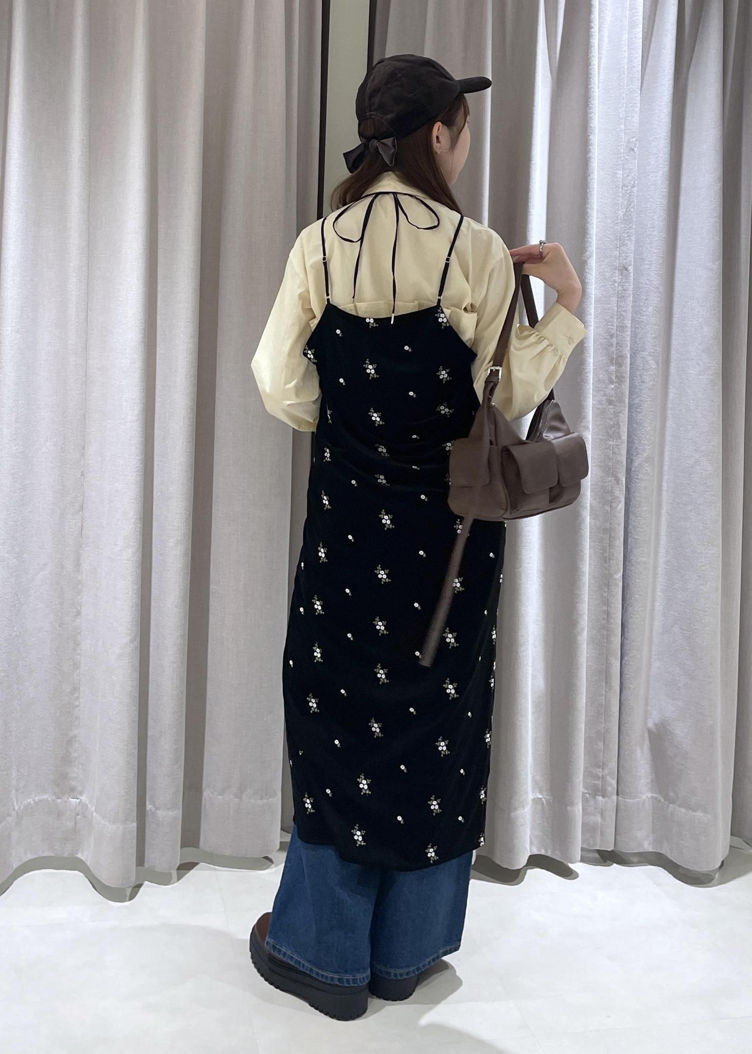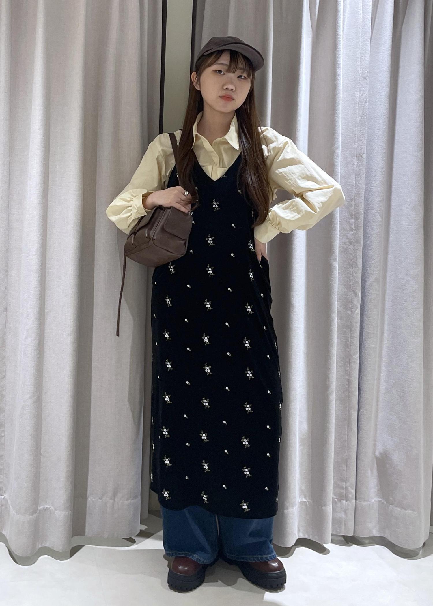 VIS刺繍アソートベロアキャミワンピース/2WAYブラック系 / F¥8,899レビューベロア素材のキャミソールワンピです
