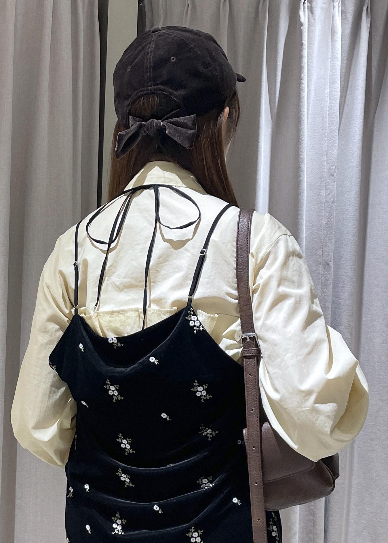後ろのリボンは可愛いだけでなく、周囲のサイズ調整も可能なのがありがたいポイントです◎