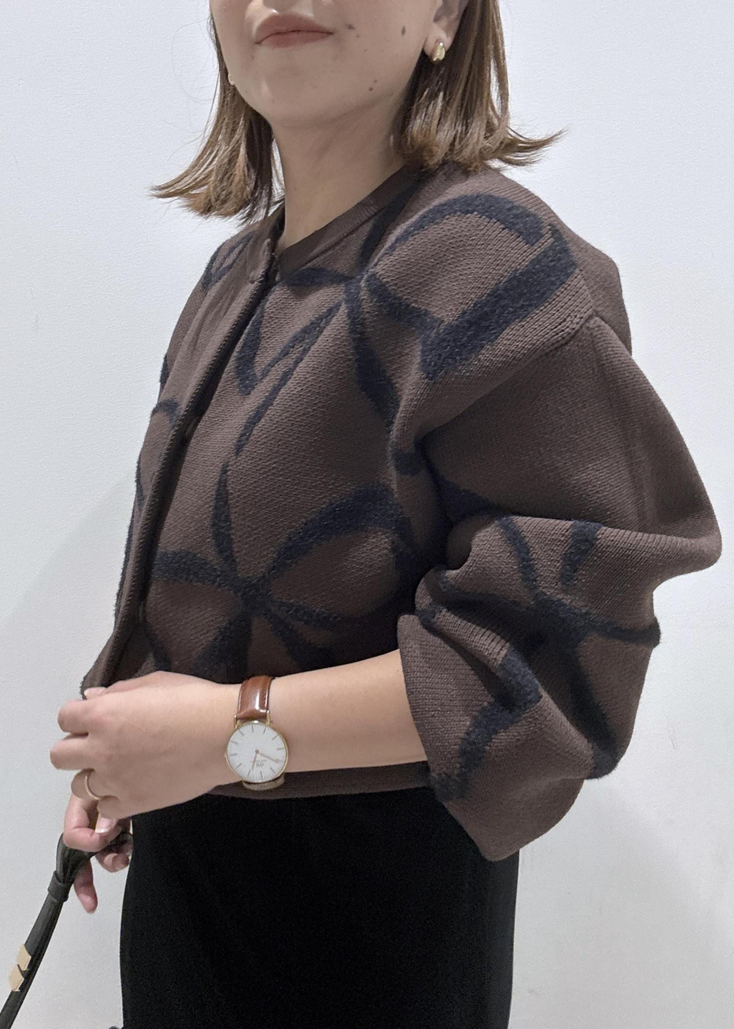 VISリボンモチーフジャガードカーディガン/イージーケアダークブラウン / F¥6,919レビューオーバーサイズシルエットのカーディガンで、