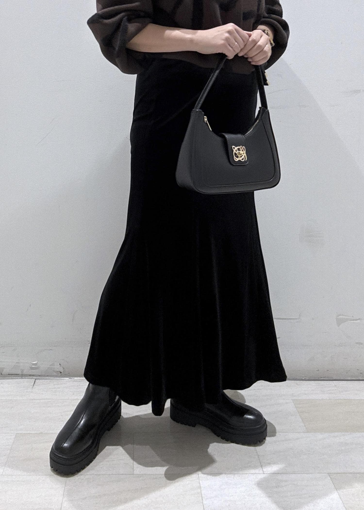 VISベロアナロースカートブラック / S¥6,589レビュー今年らしいベロアのナローシルエットスカートはキレイめにもカジュアルにも合わせやすい一枚です。