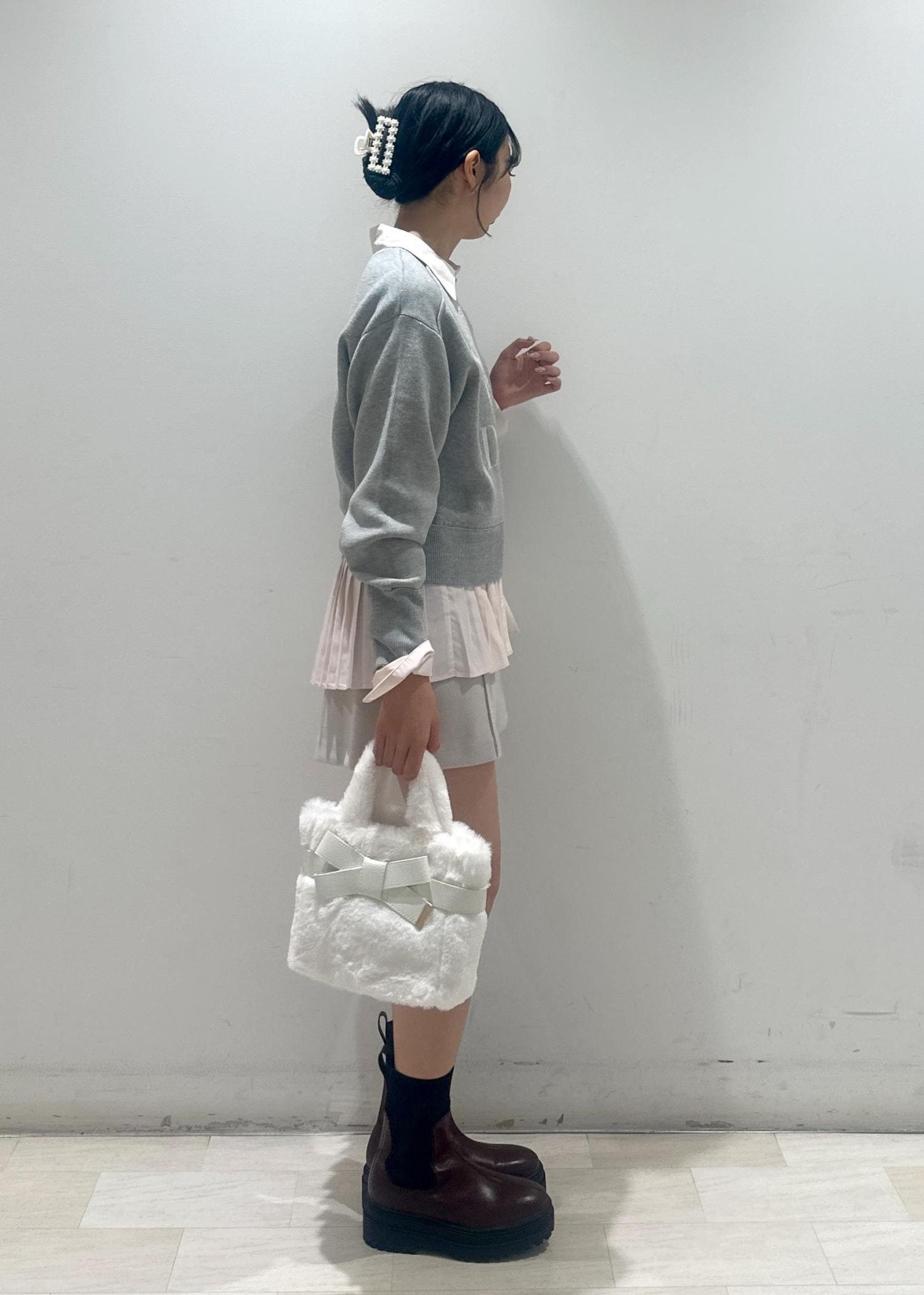 この時期はニットやカーディガンとのレイヤードスタイルのポイントになります。